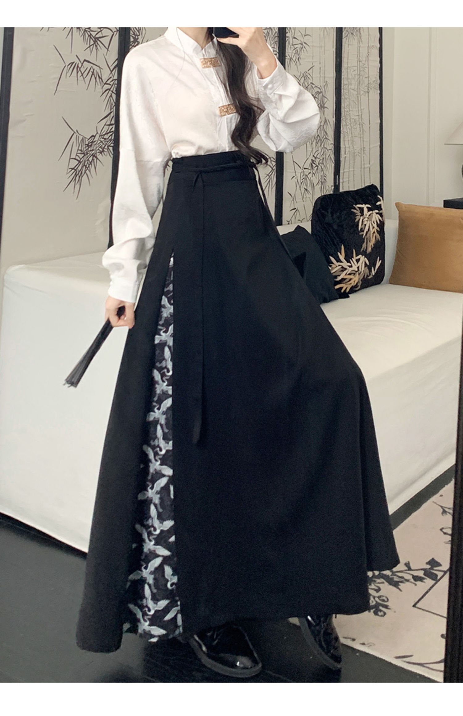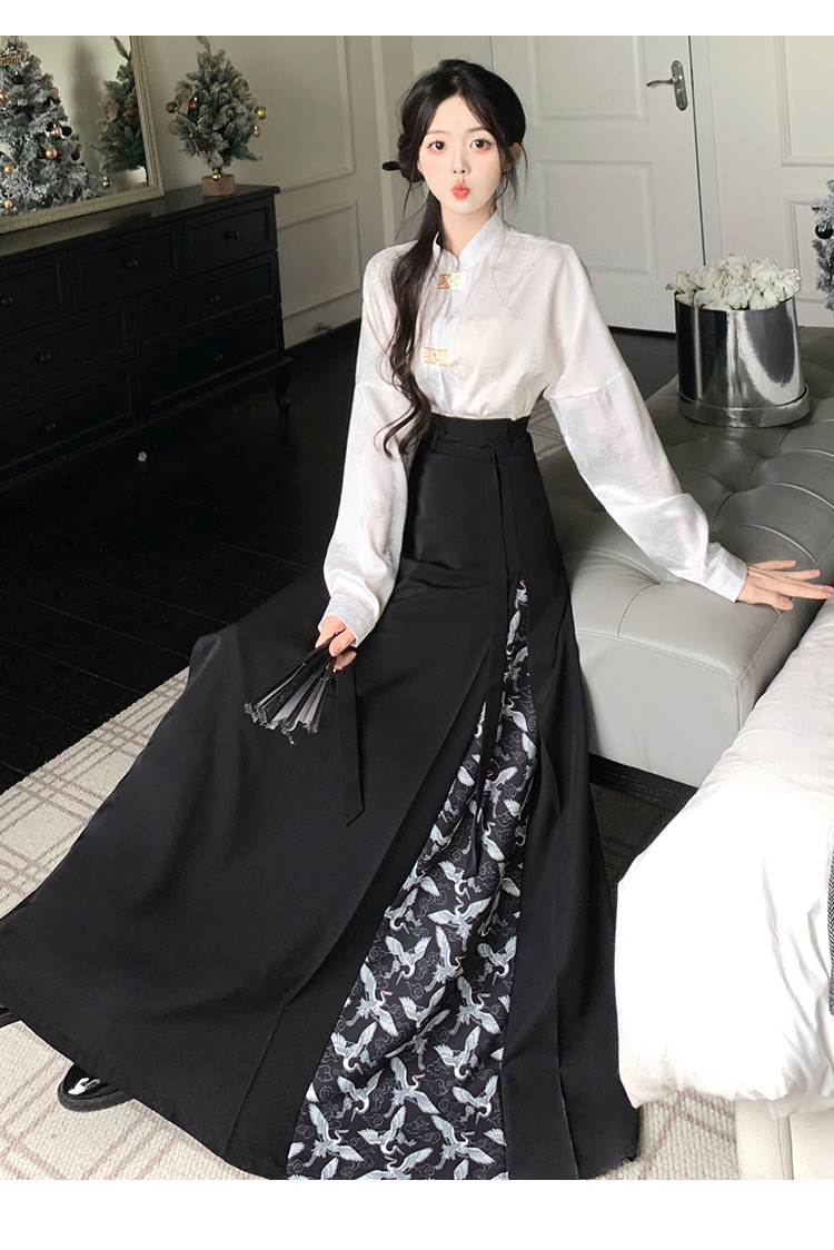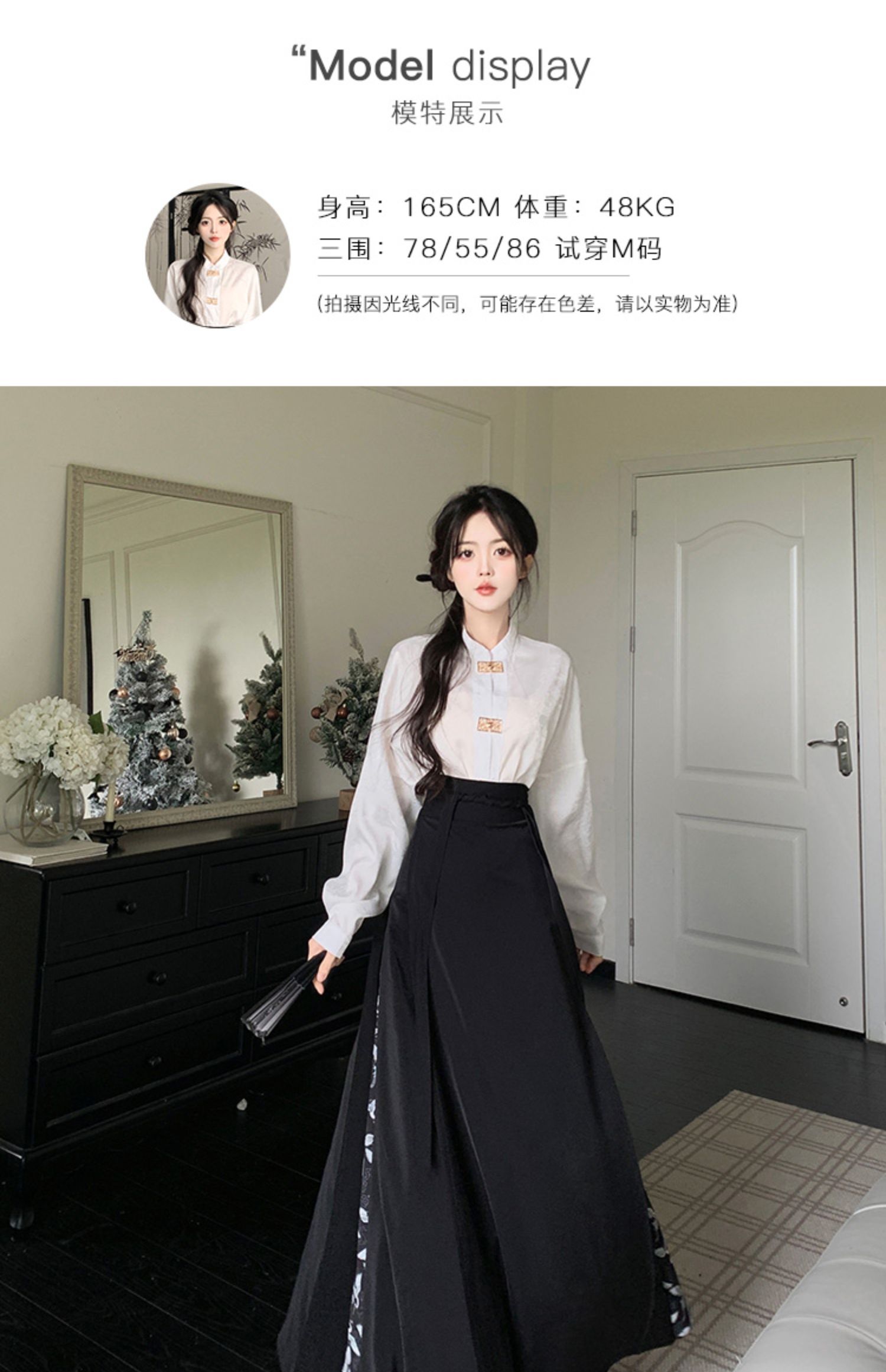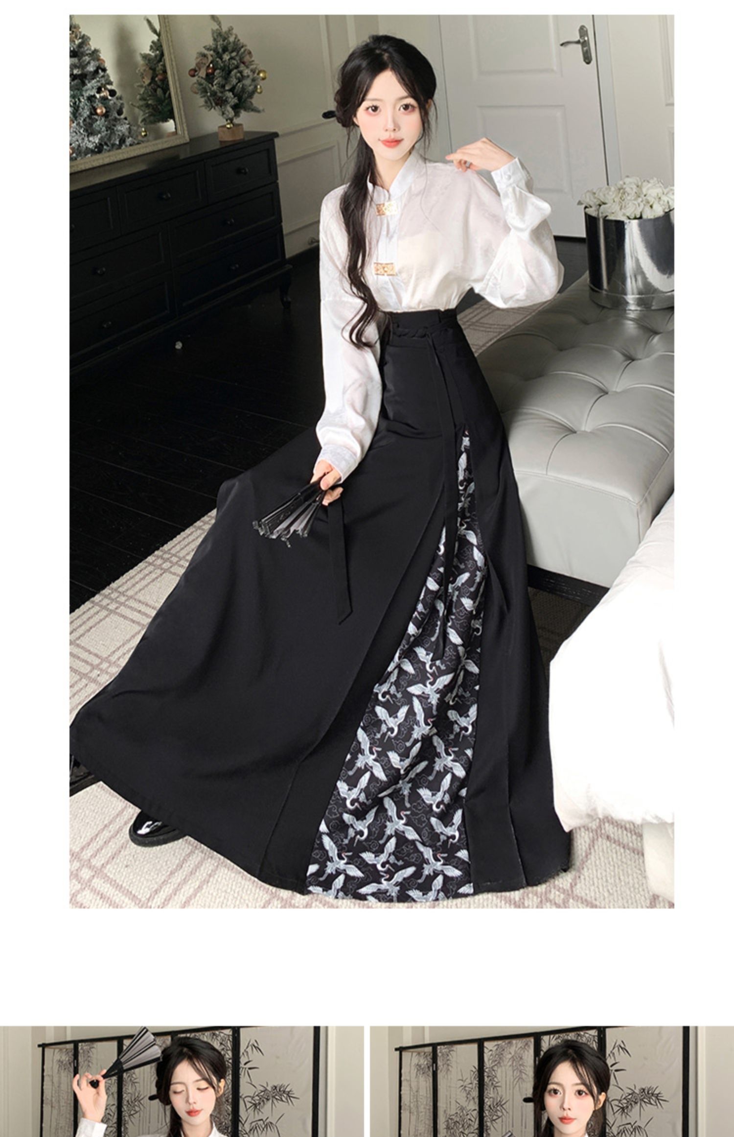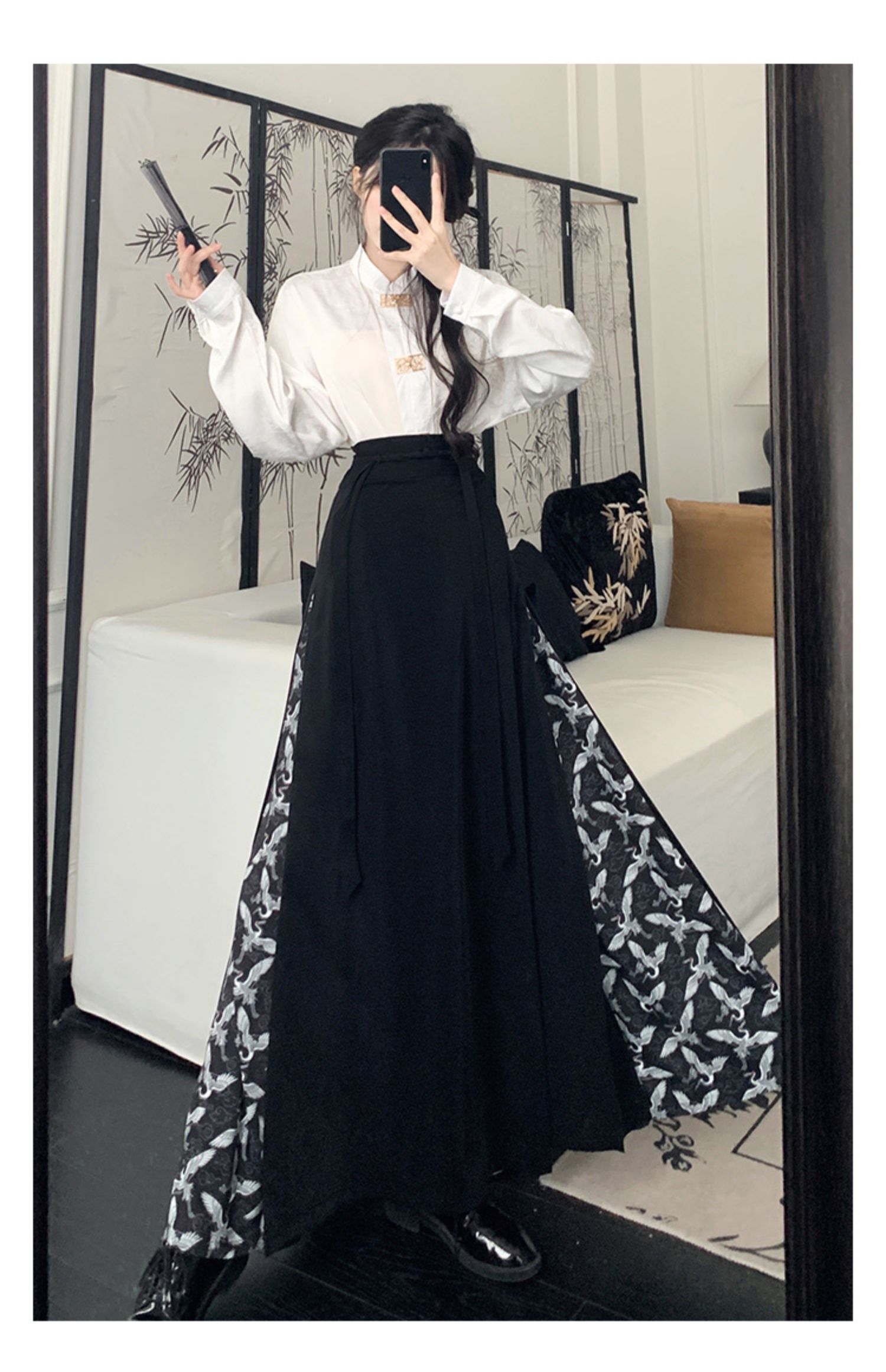 秋季大碼新中式女裝套裝裙國風漢服襯衫上衣高腰a字馬面裙兩件套