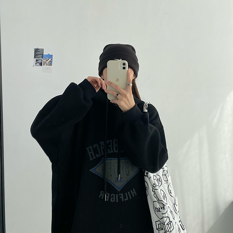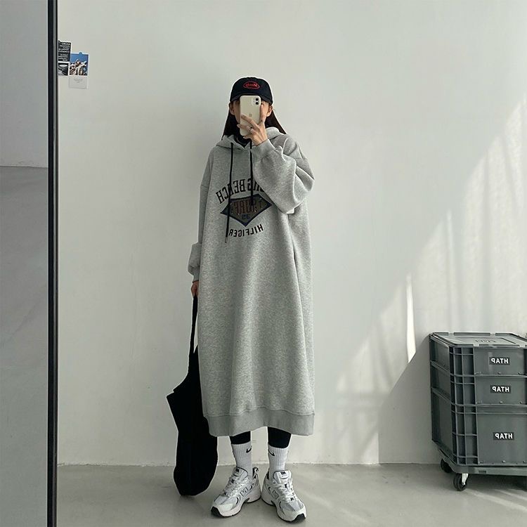特大碼300斤寬松藏肉顯瘦長款衛衣裙秋冬加絨加厚保暖連帽連衣裙