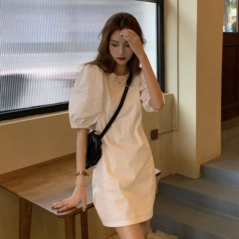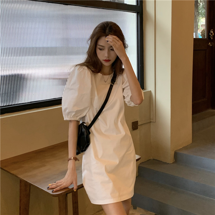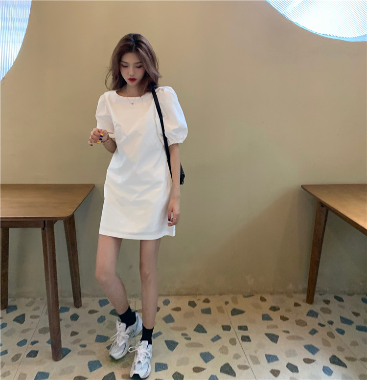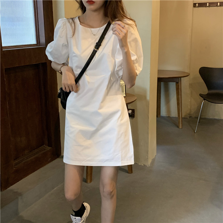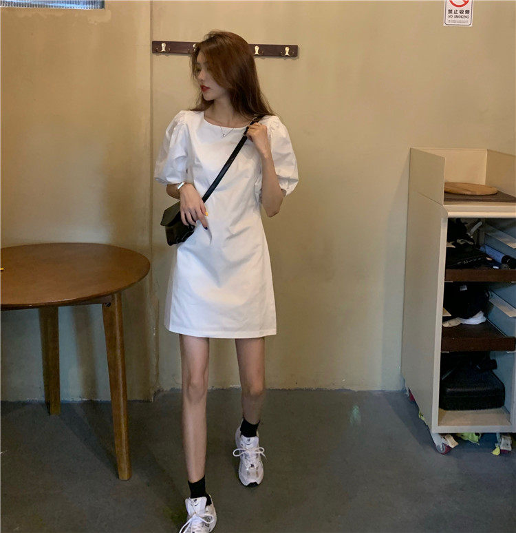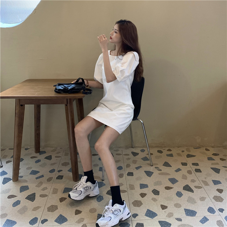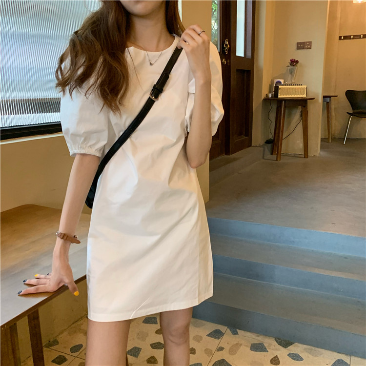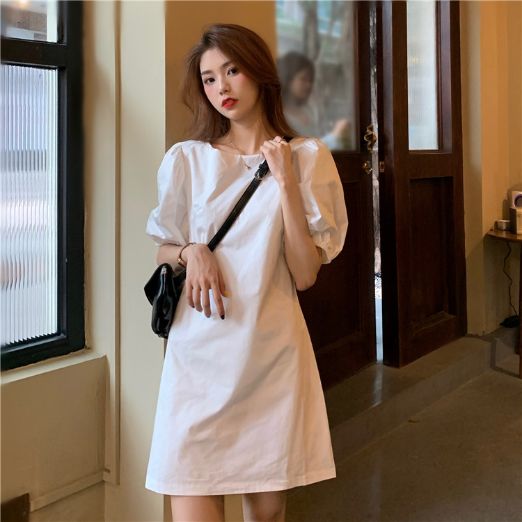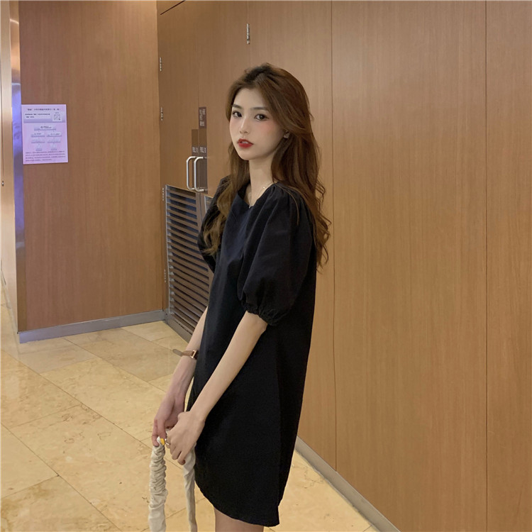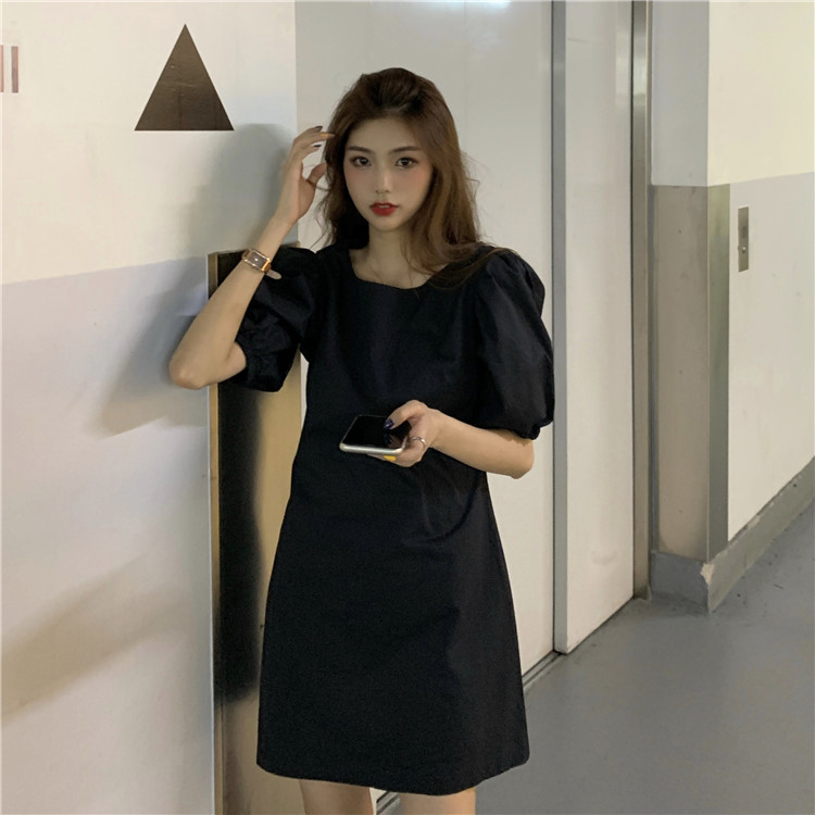 夏季2025新款大碼女裝胖mm寬松遮肚顯瘦方領泡泡袖超仙氣質連衣裙