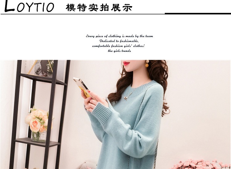 黑色過膝毛衣裙女中長款秋冬款加厚打底蕾絲拼接假兩件針織連衣裙