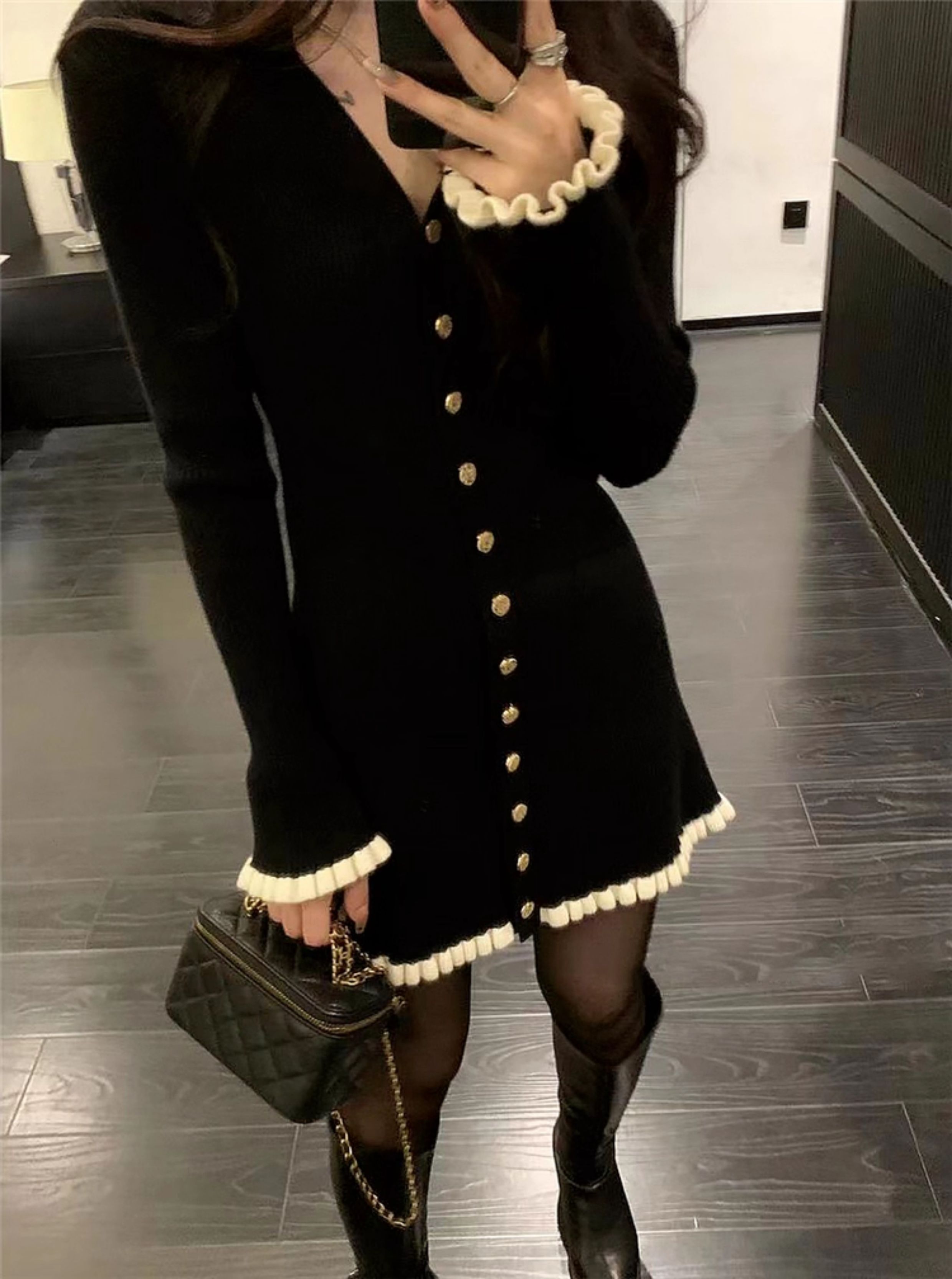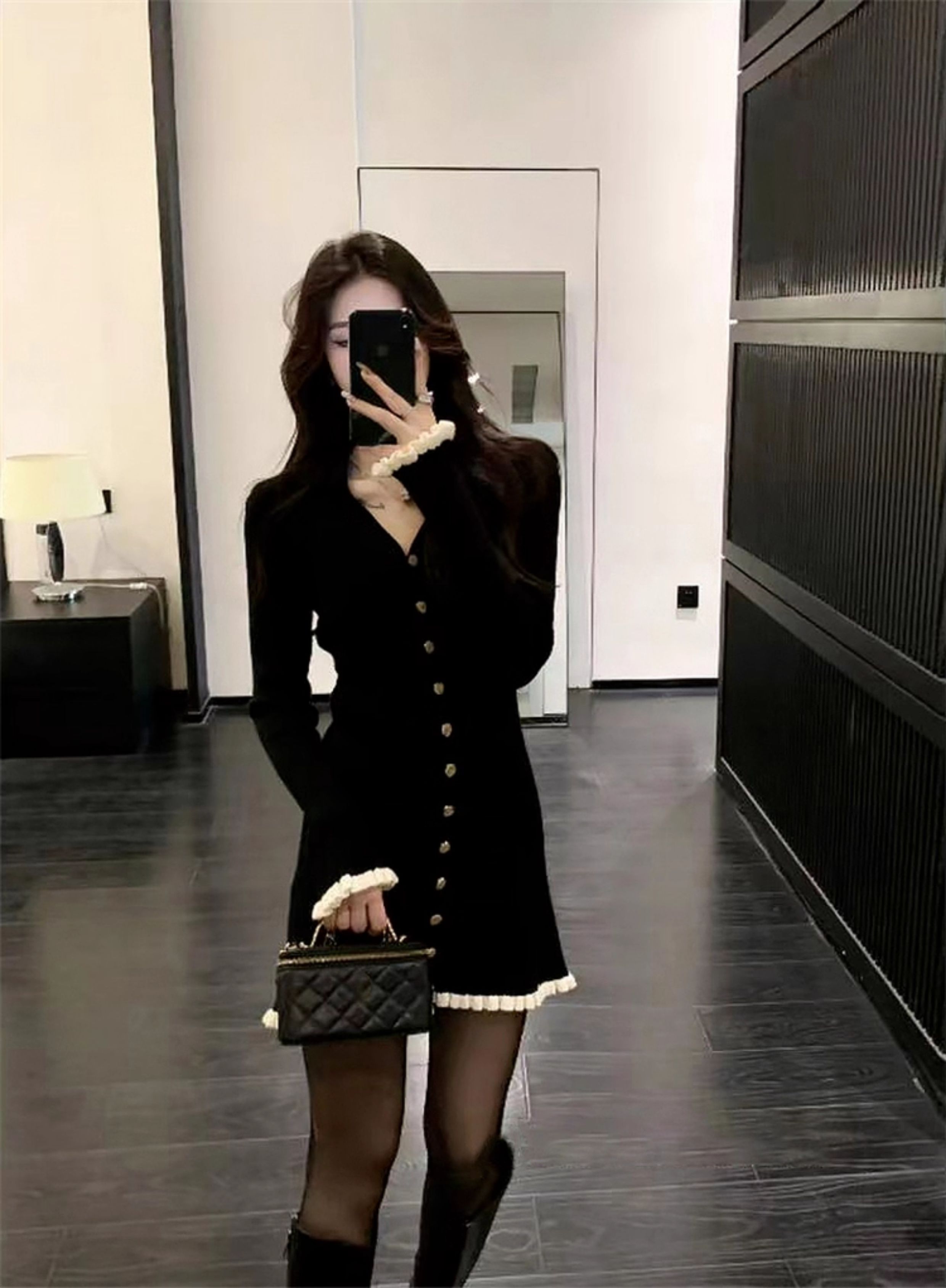 小個子香風黑色連衣裙子女秋冬季2025新款法式氣質絕美穿搭高級感