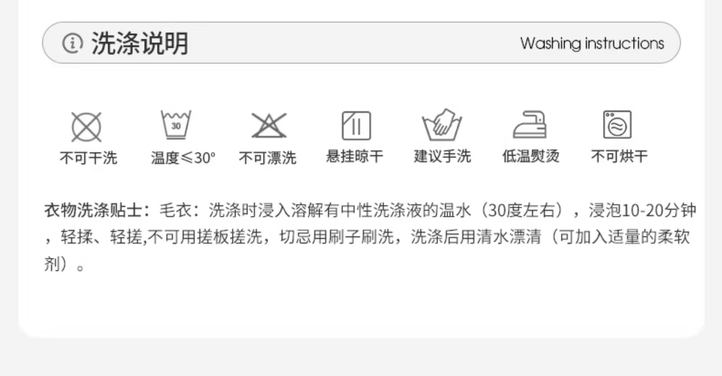 面料 粘膠纖維(粘纖)50% 聚醯胺纖維(錦綸)30% 聚酯纖維20%