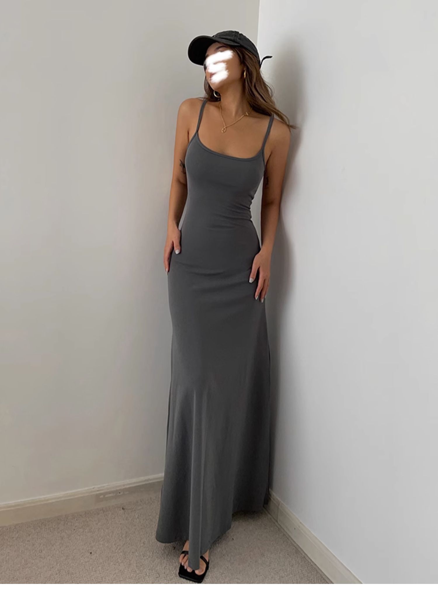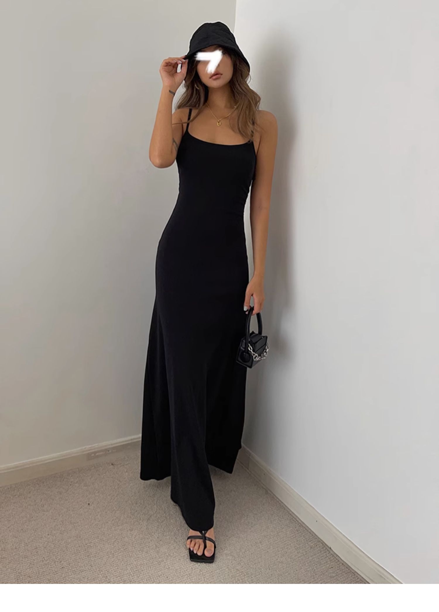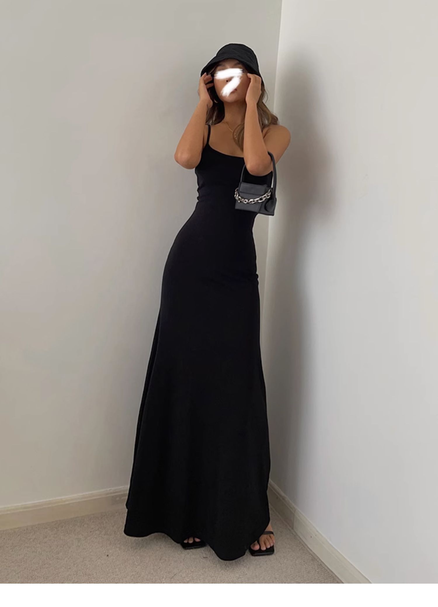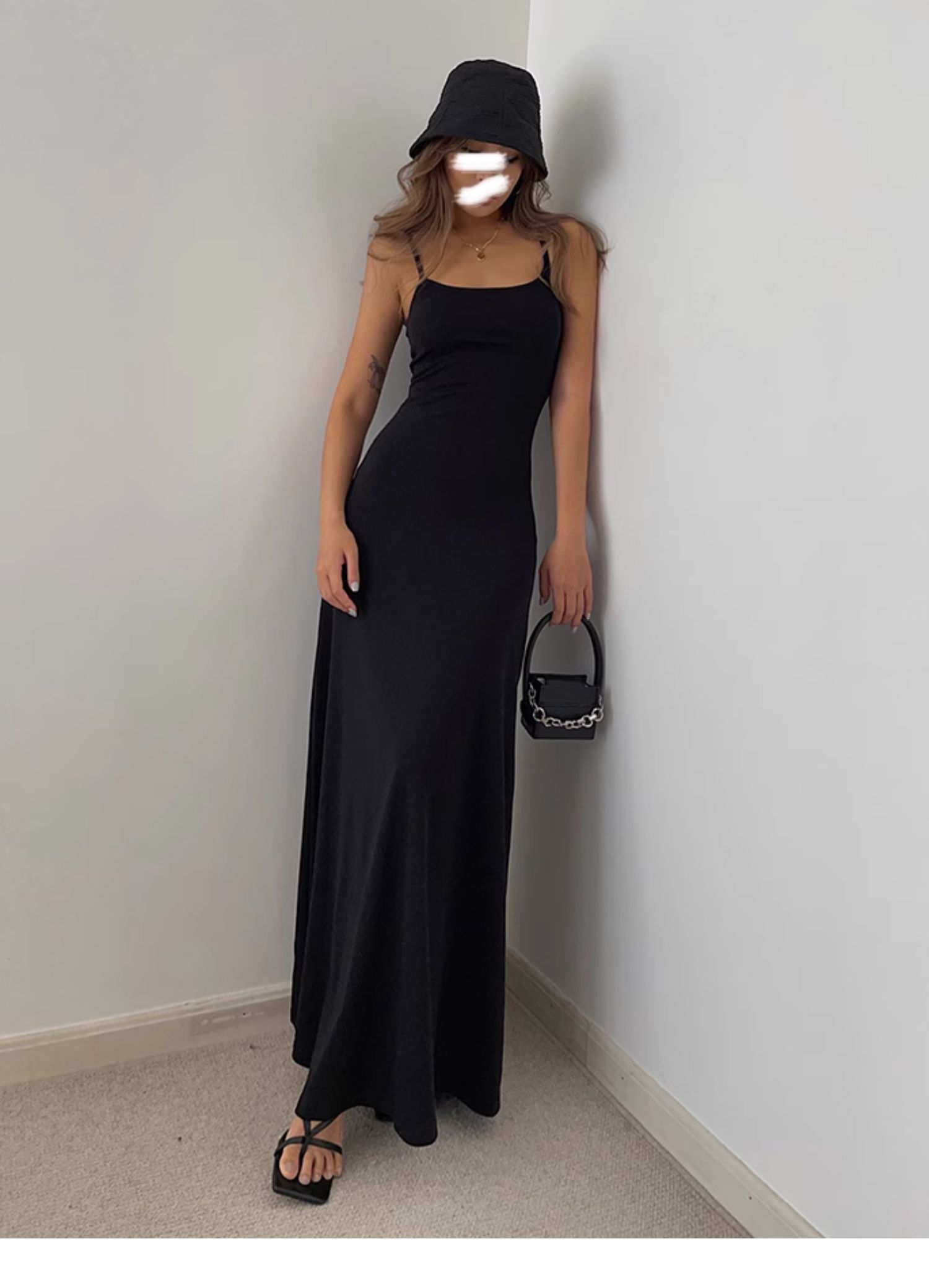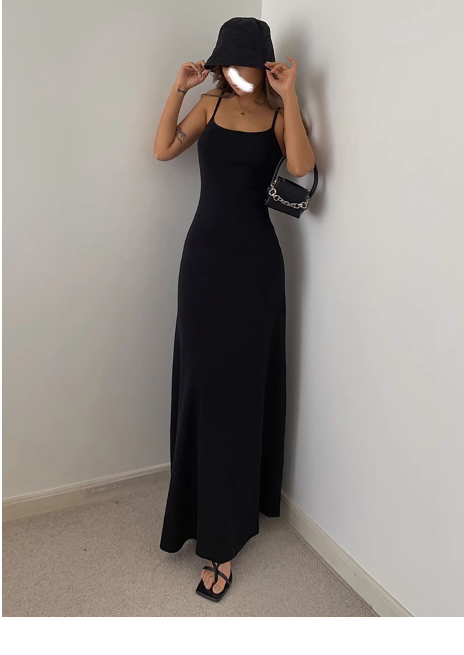 中長款打底裙背心純色歐美黑辣妹收腰a字大裙擺吊帶長裙連衣裙