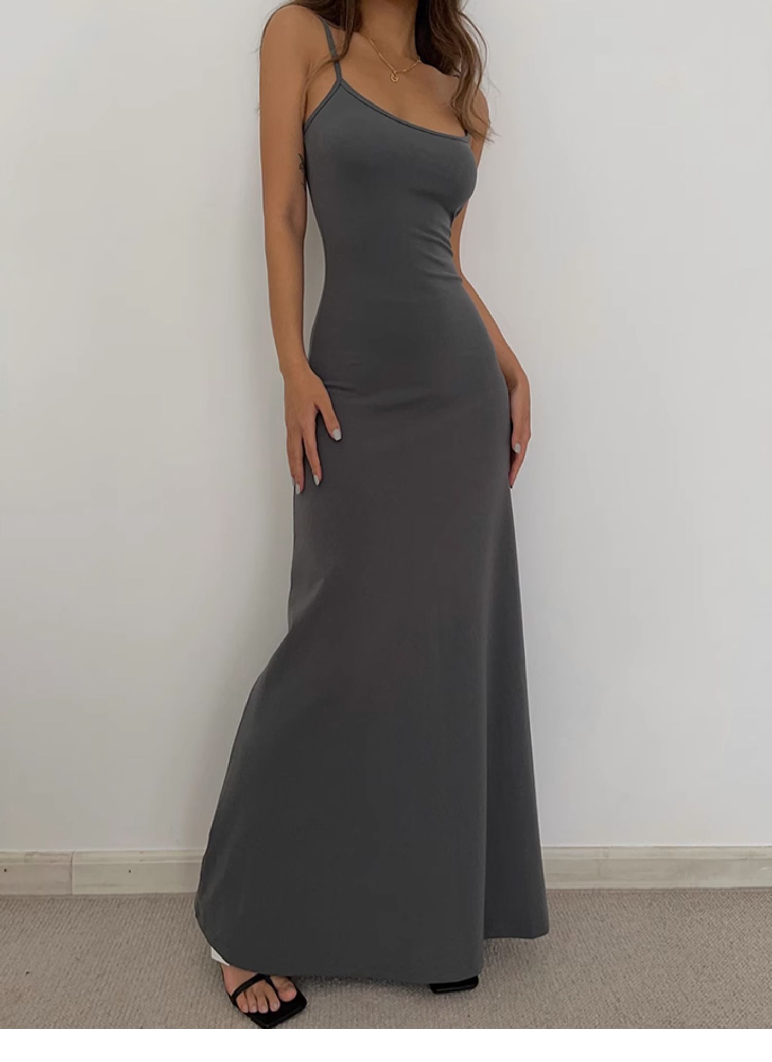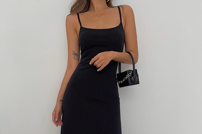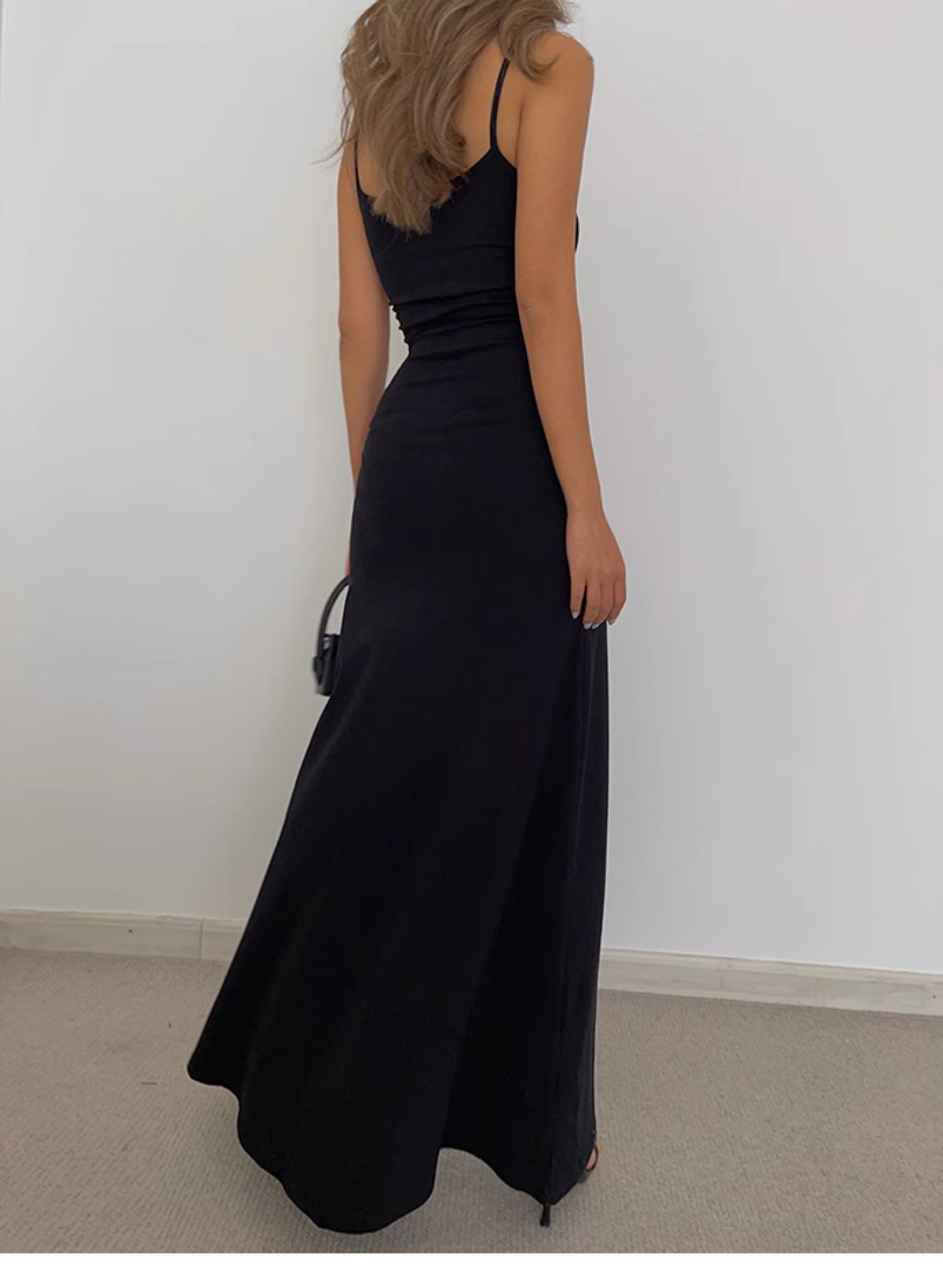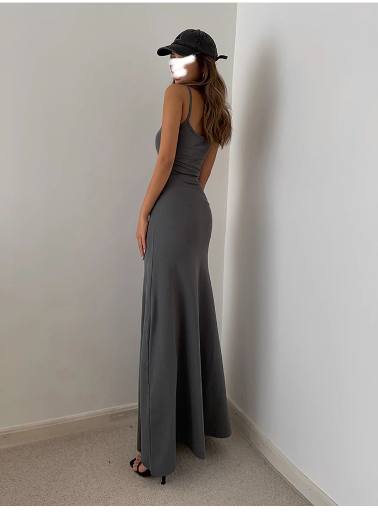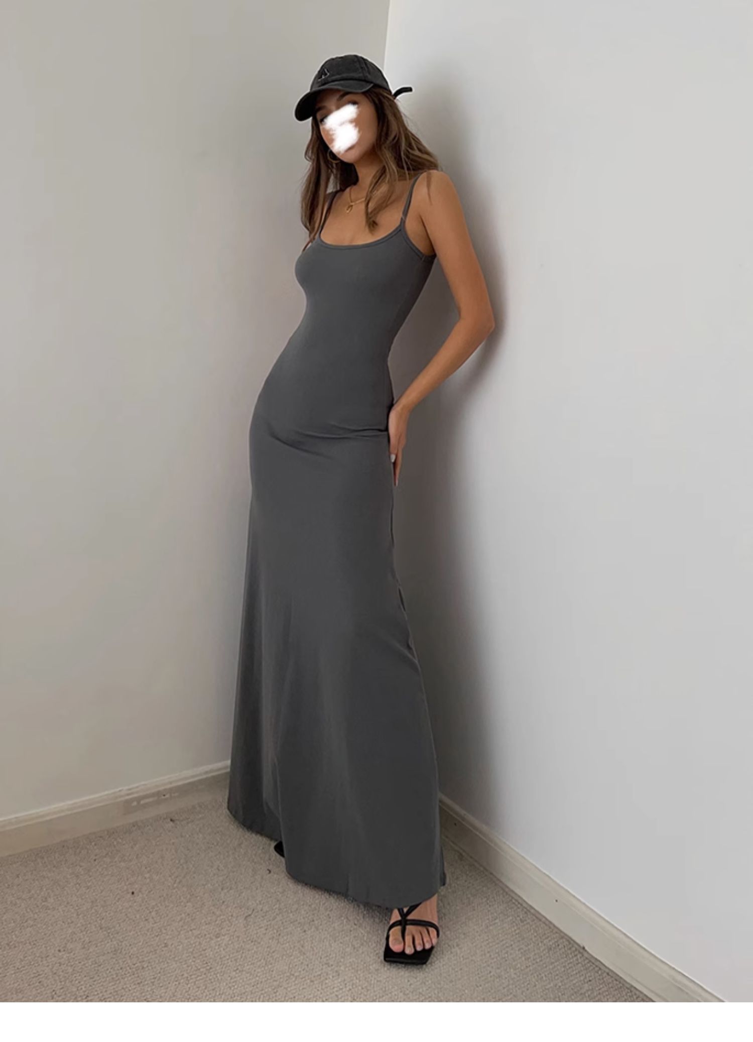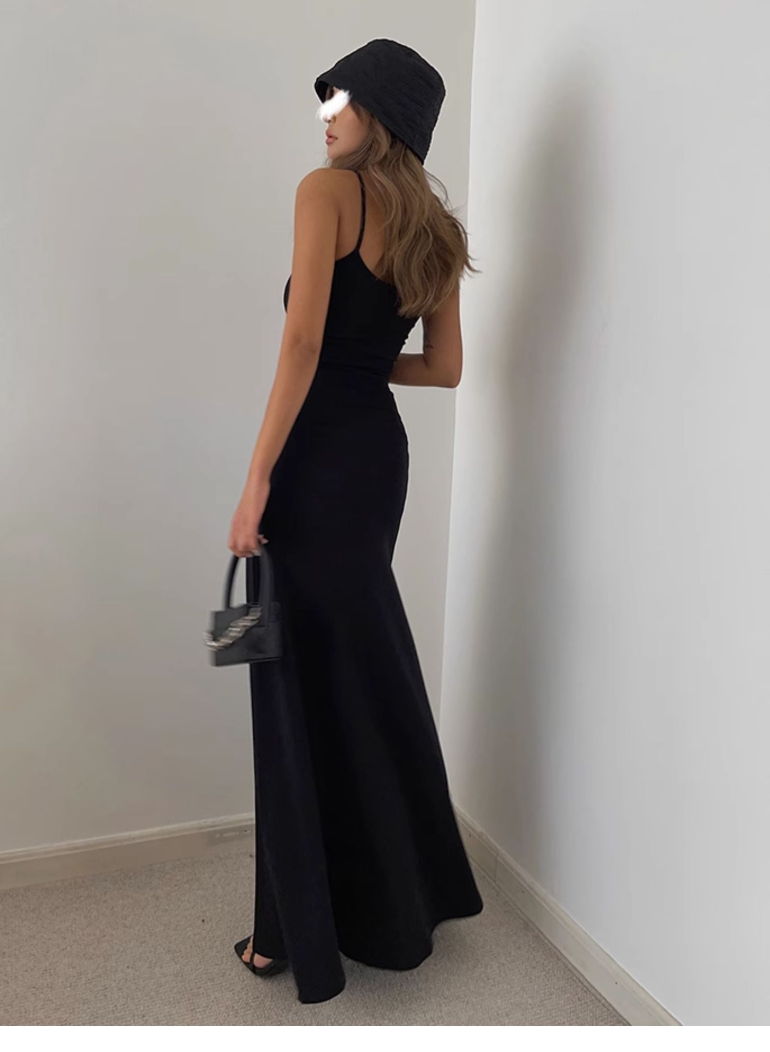 中長款打底裙背心純色歐美黑辣妹收腰a字大裙擺吊帶長裙連衣裙