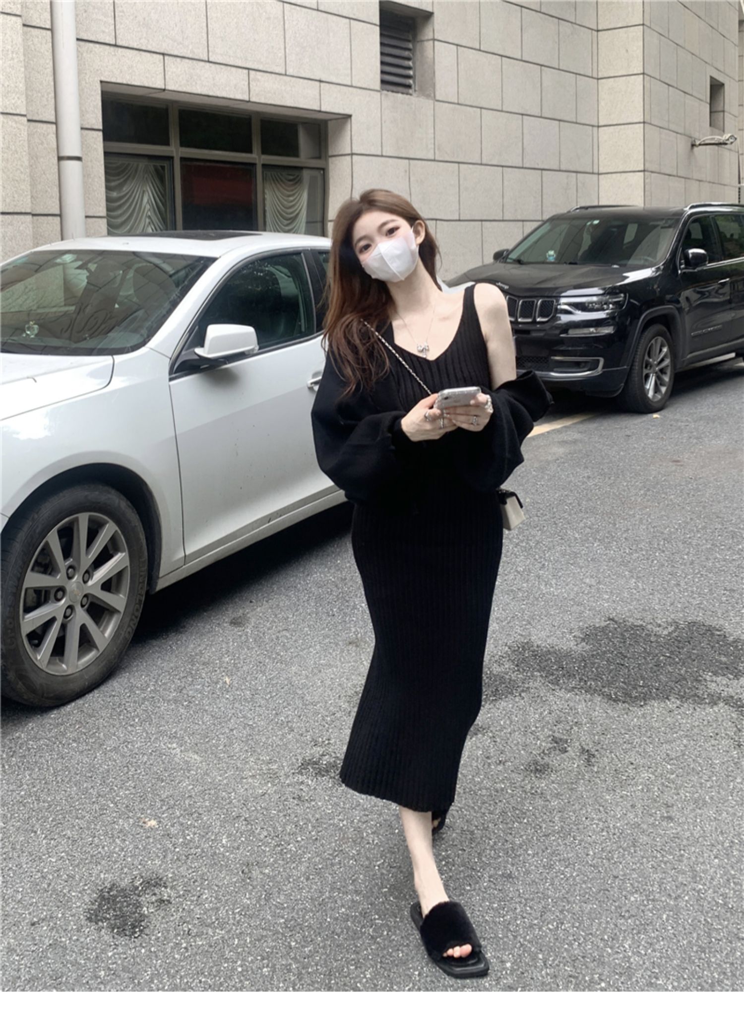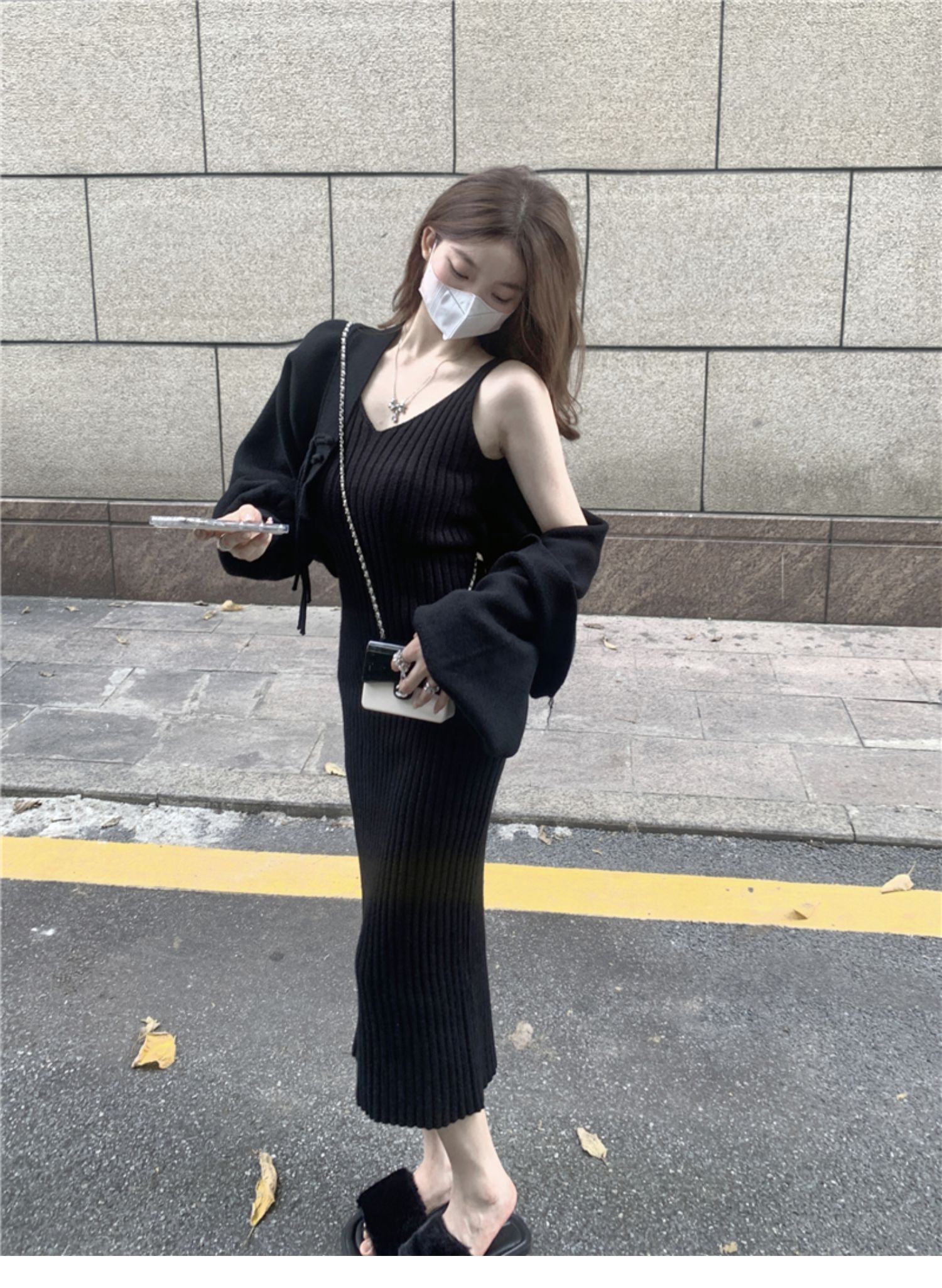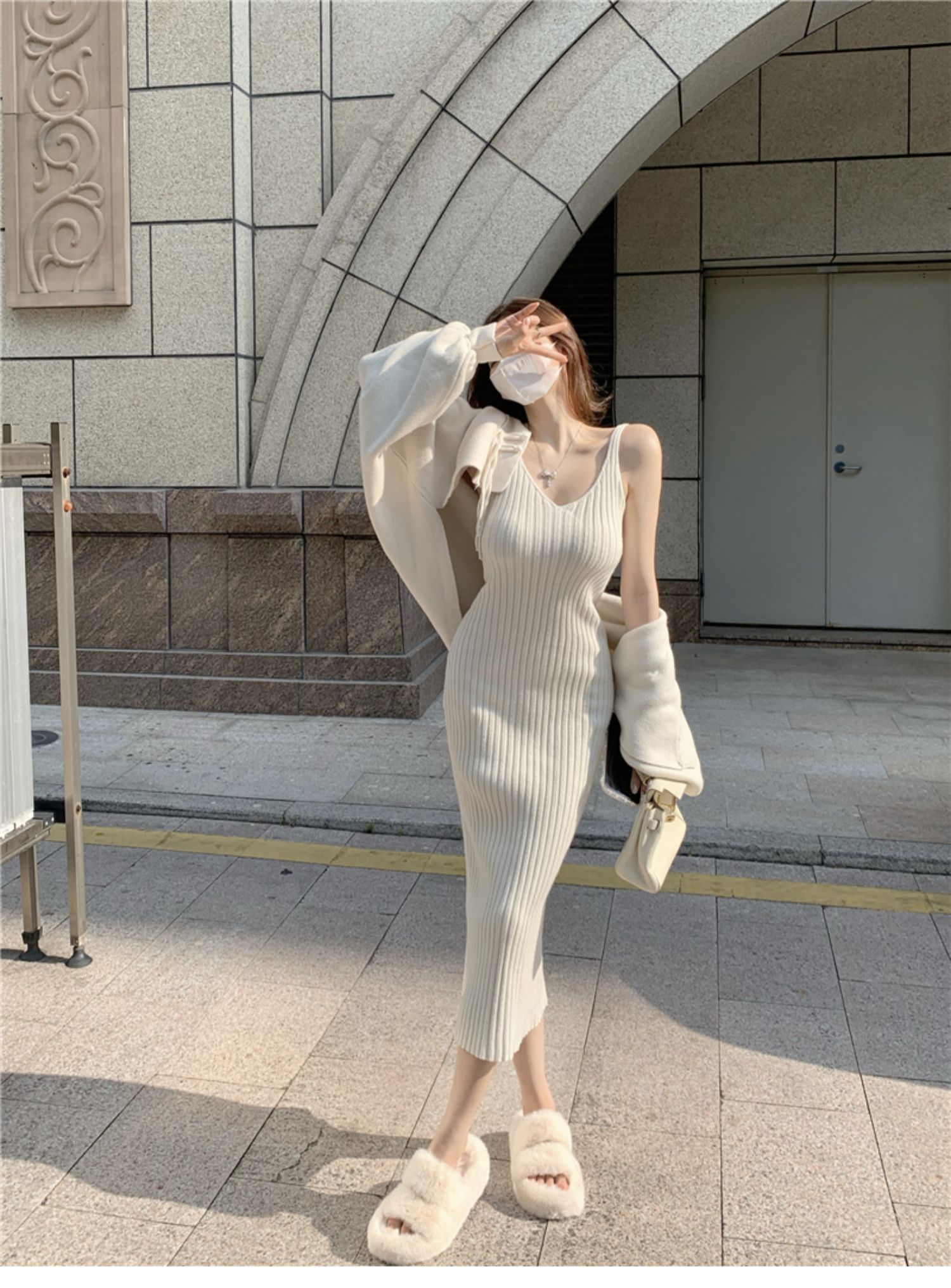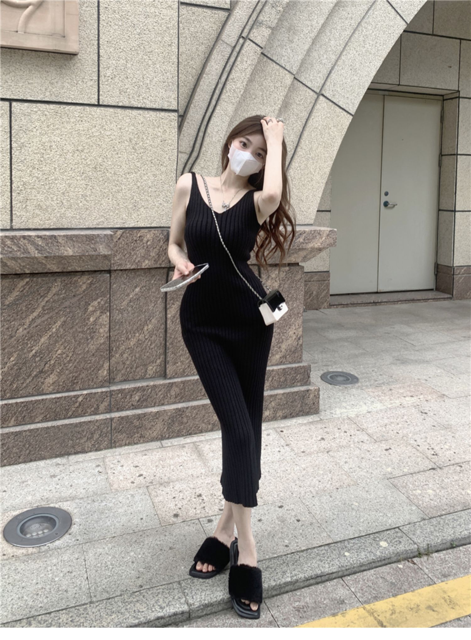氣質吊帶毛衣連衣裙女早秋修身打底長款包臀裙內搭孕婦針織背心裙