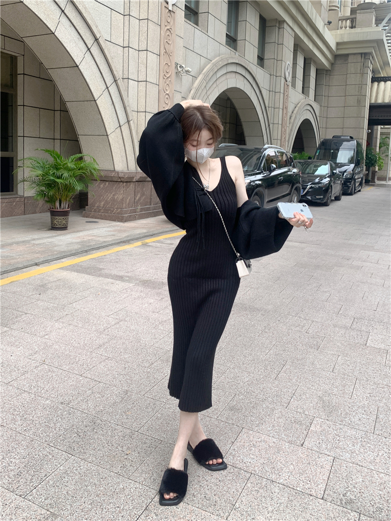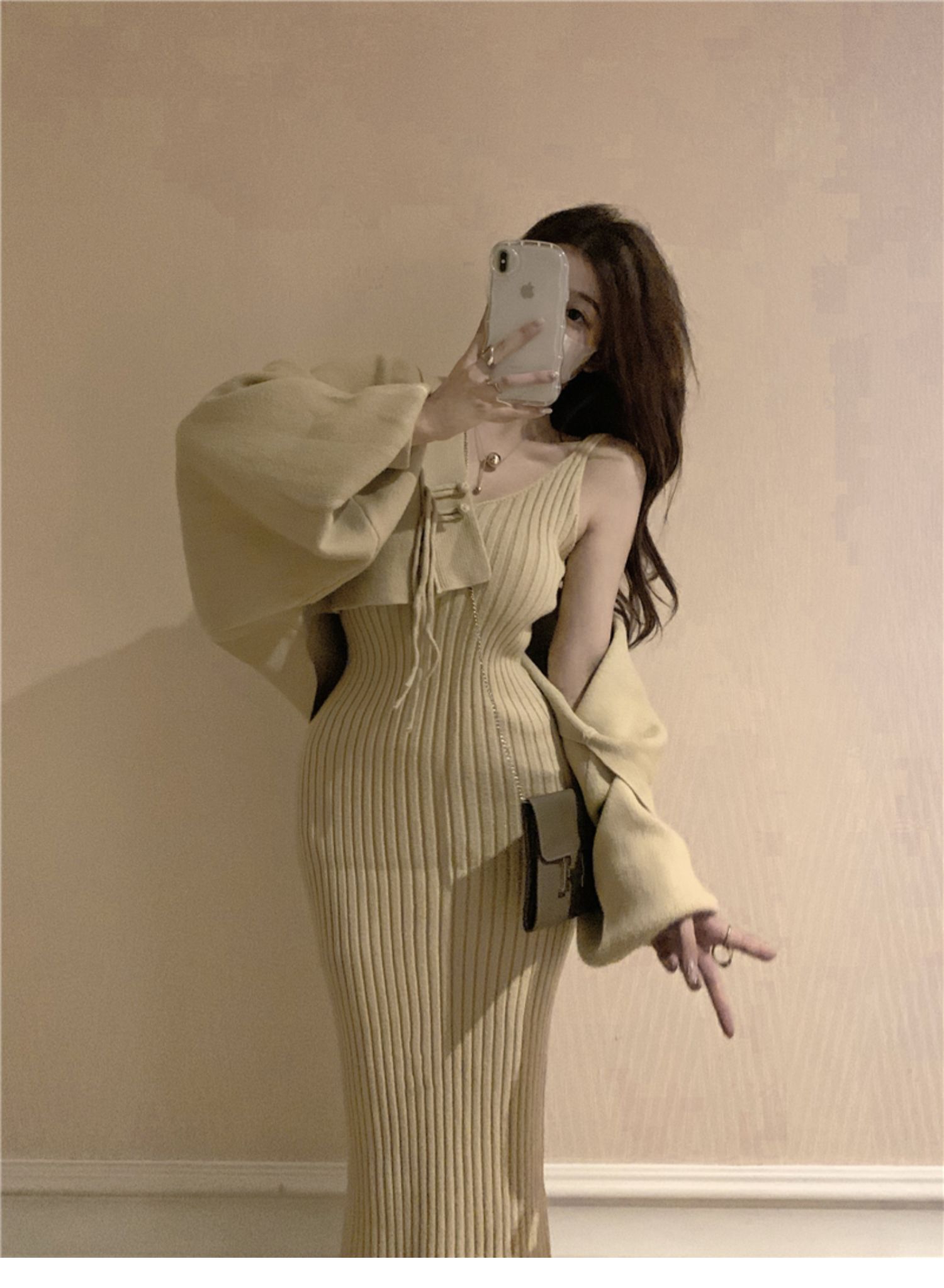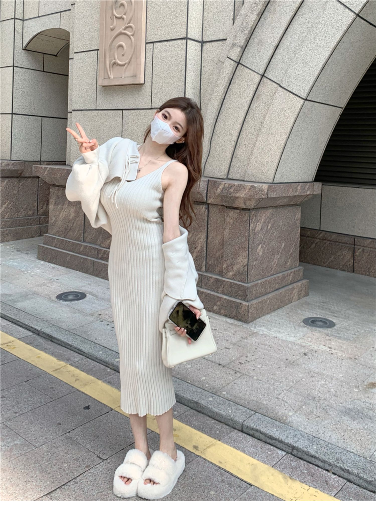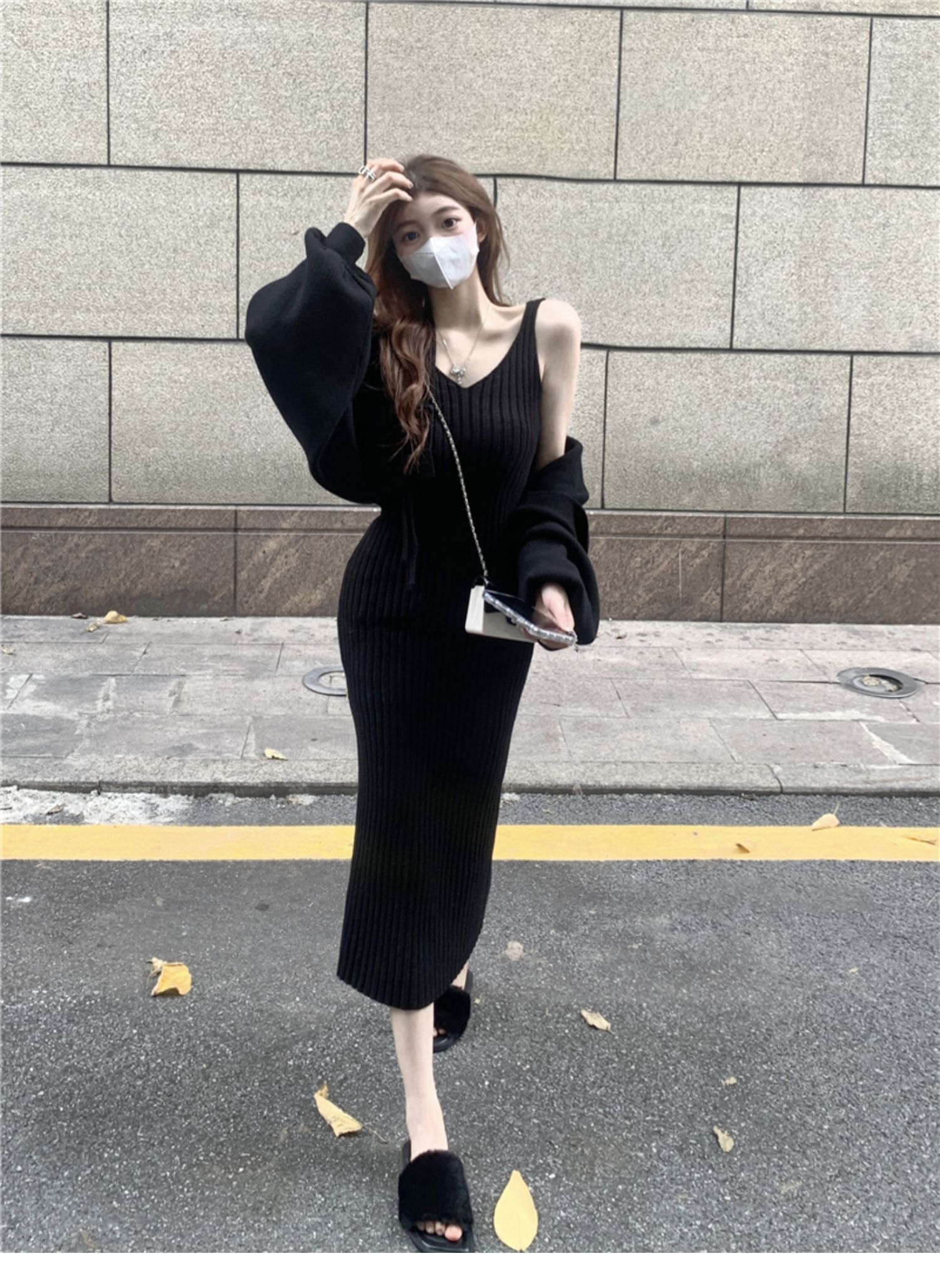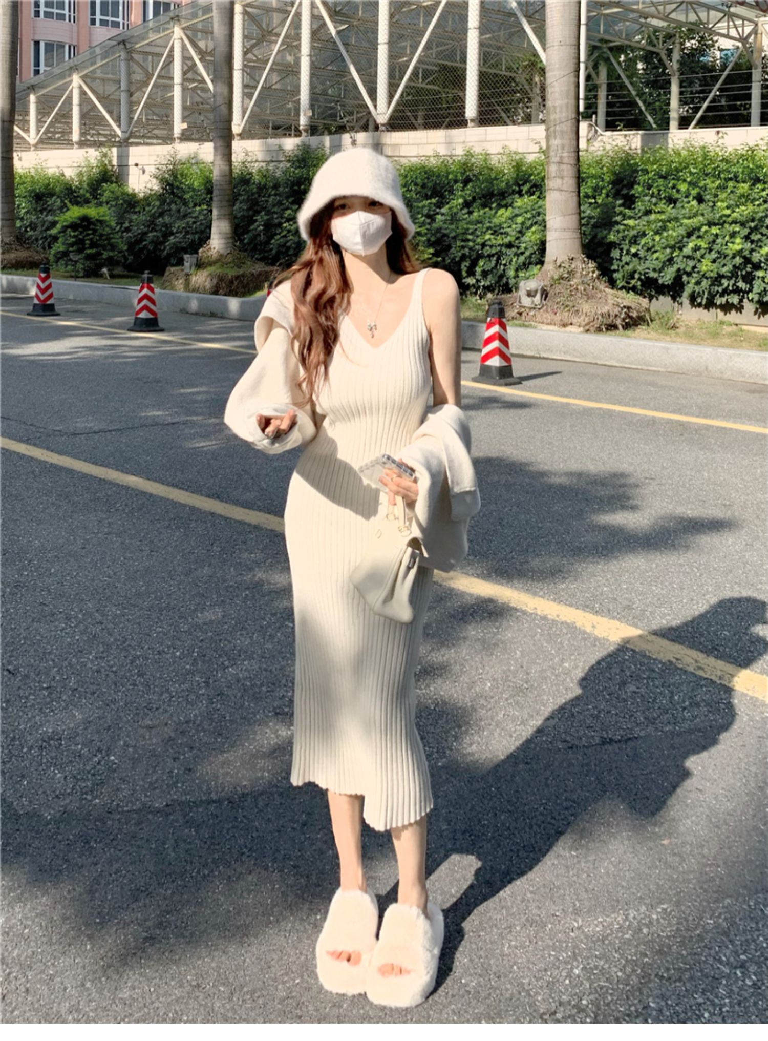 氣質吊帶毛衣連衣裙女早秋修身打底長款包臀裙內搭孕婦針織背心裙