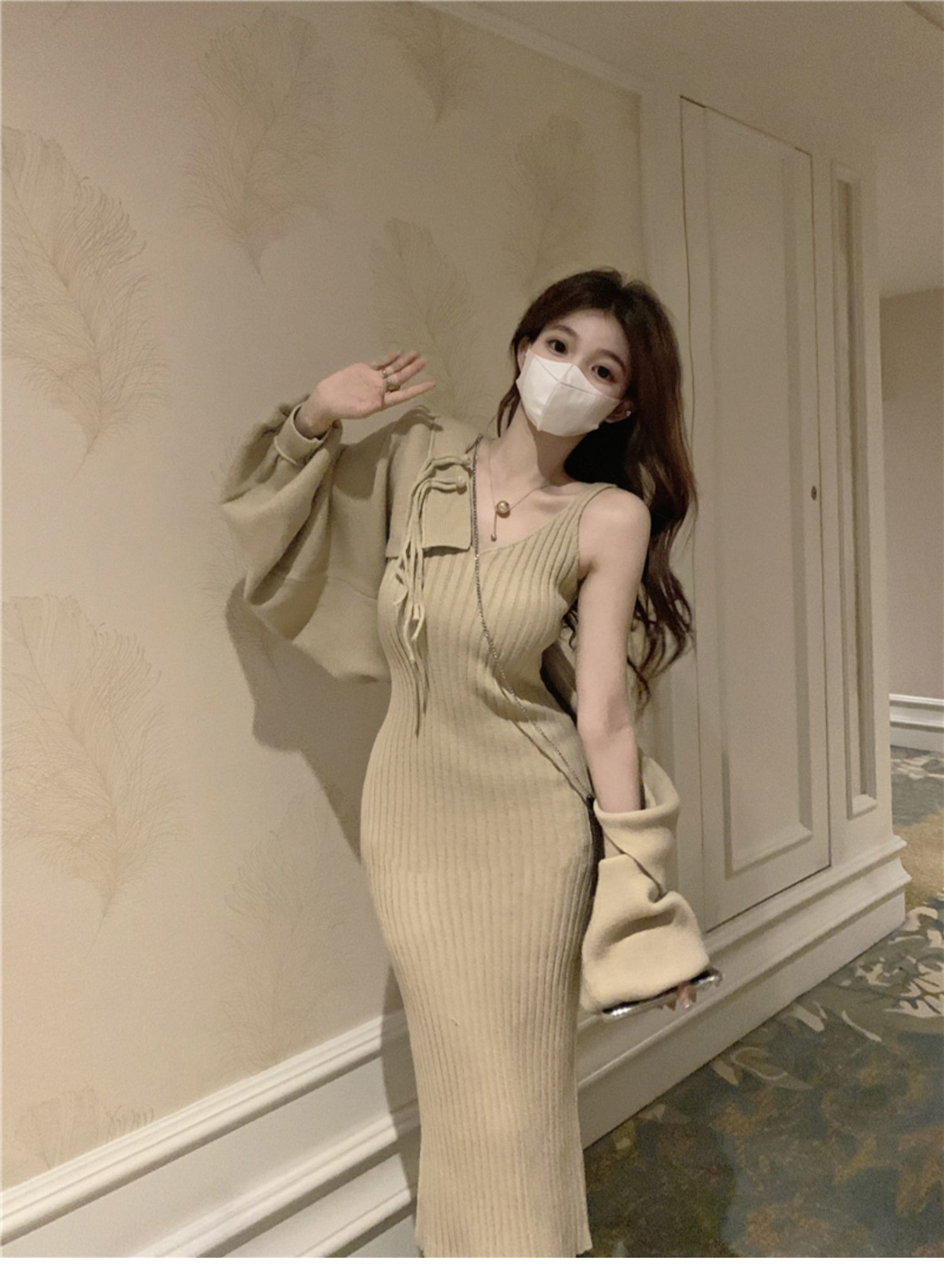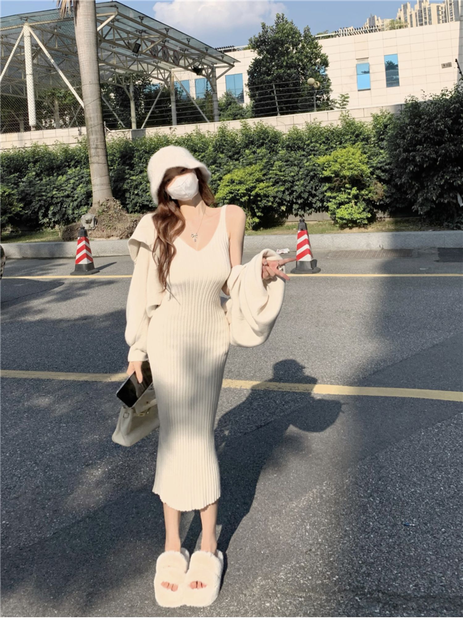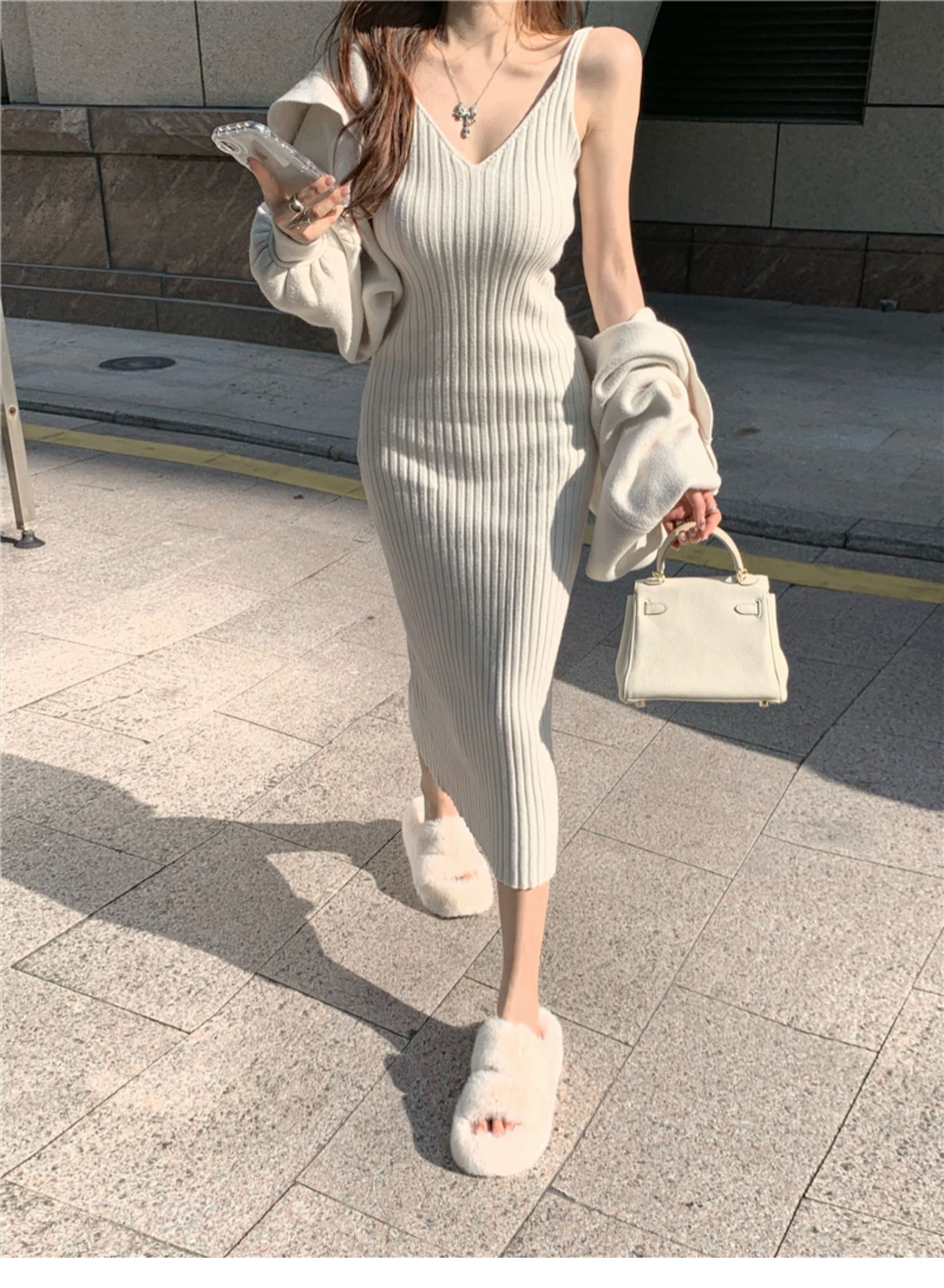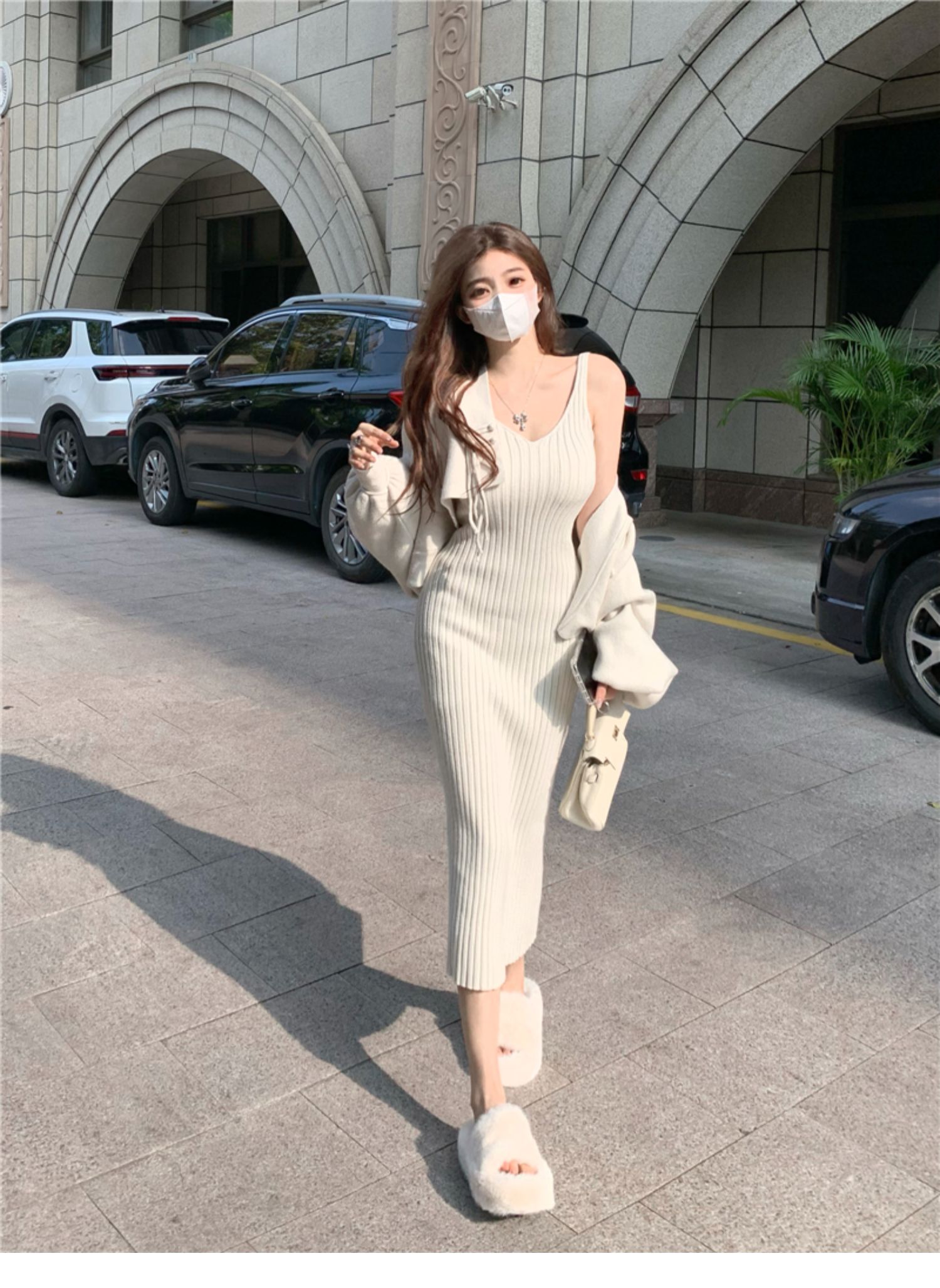 氣質吊帶毛衣連衣裙女早秋修身打底長款包臀裙內搭孕婦針織背心裙