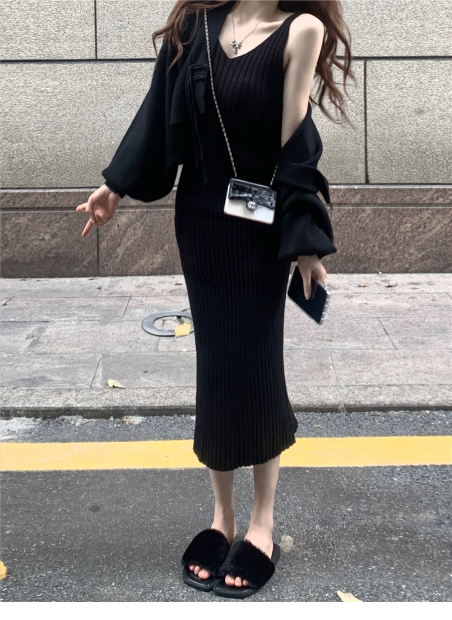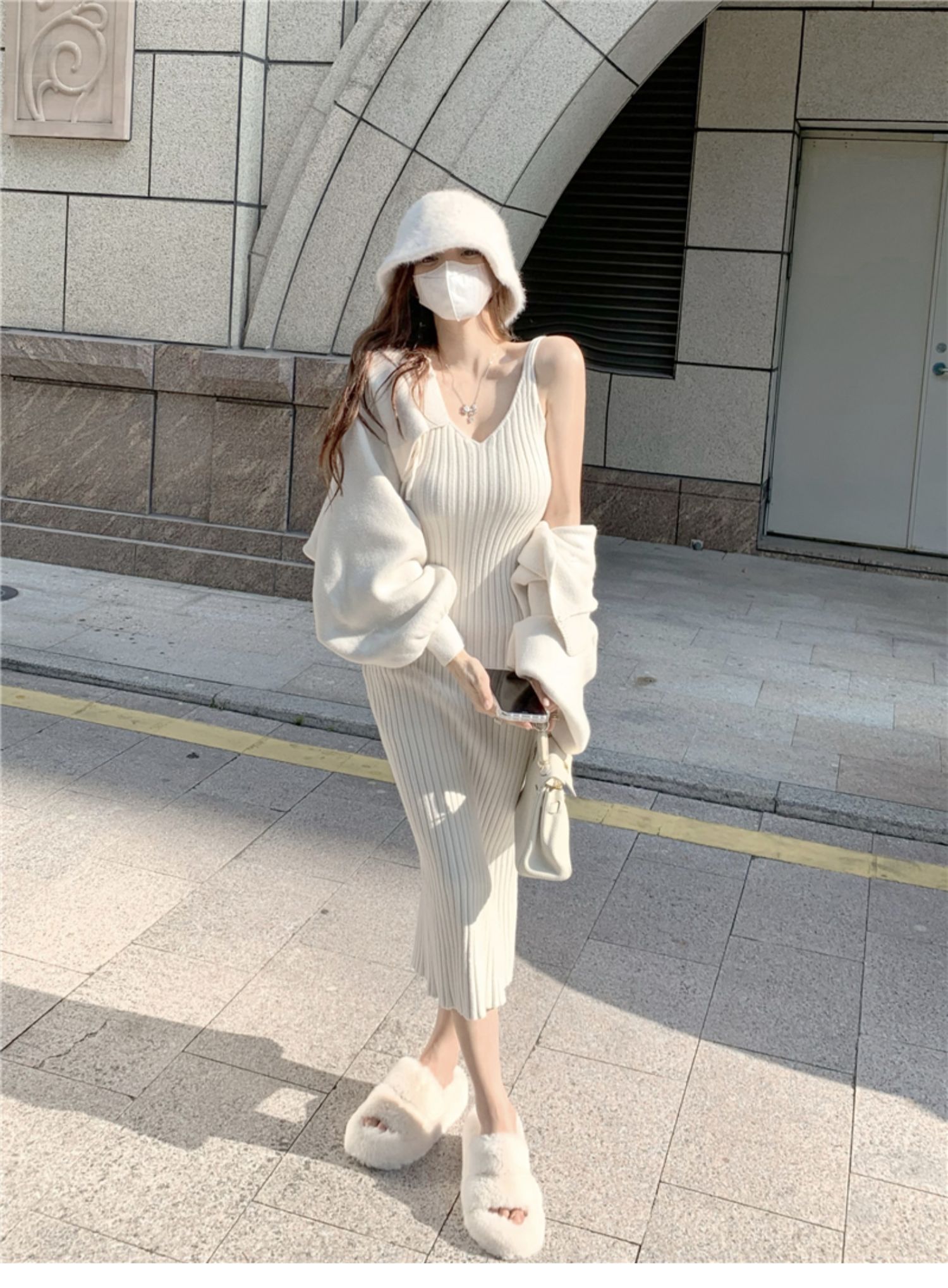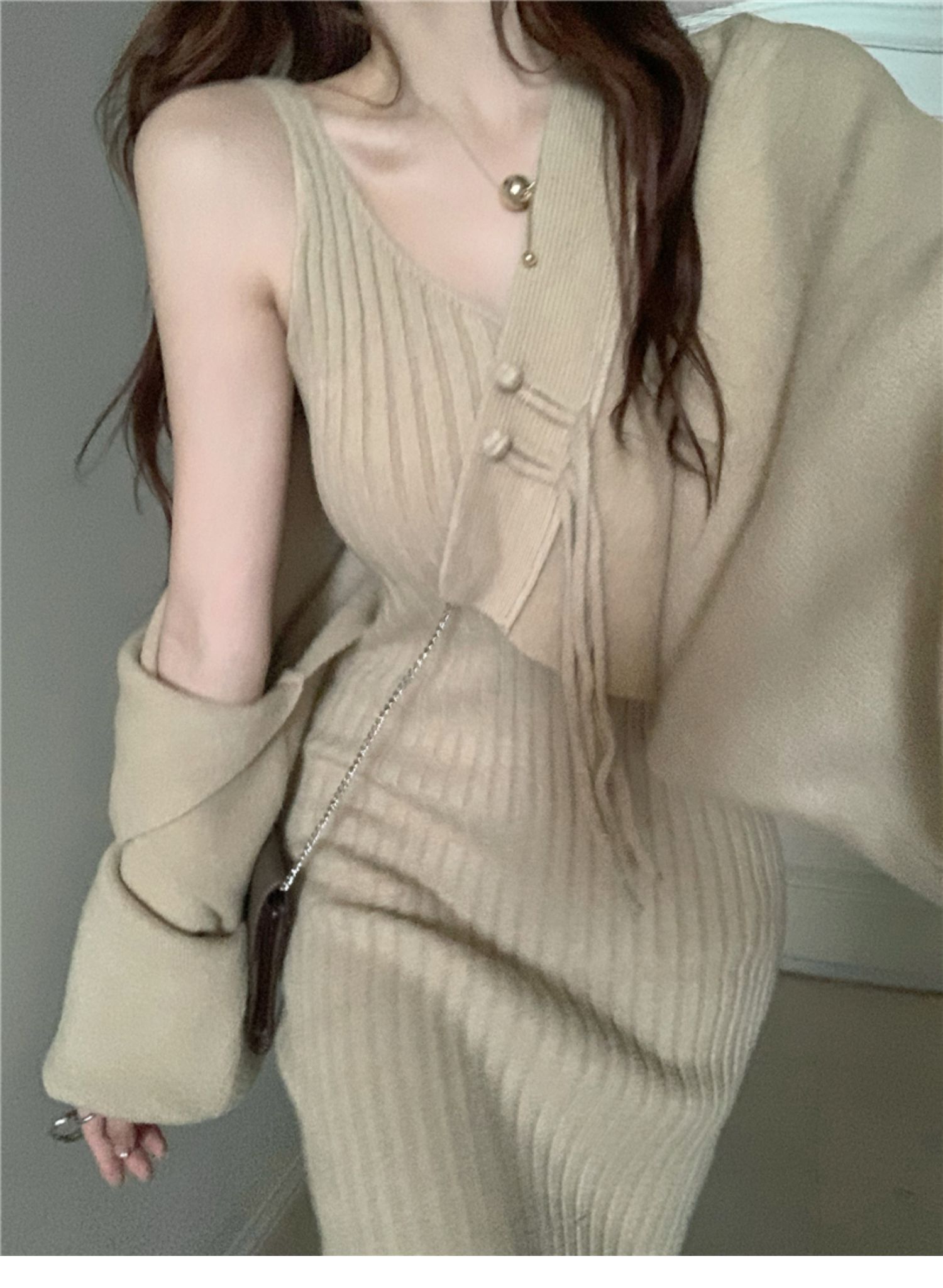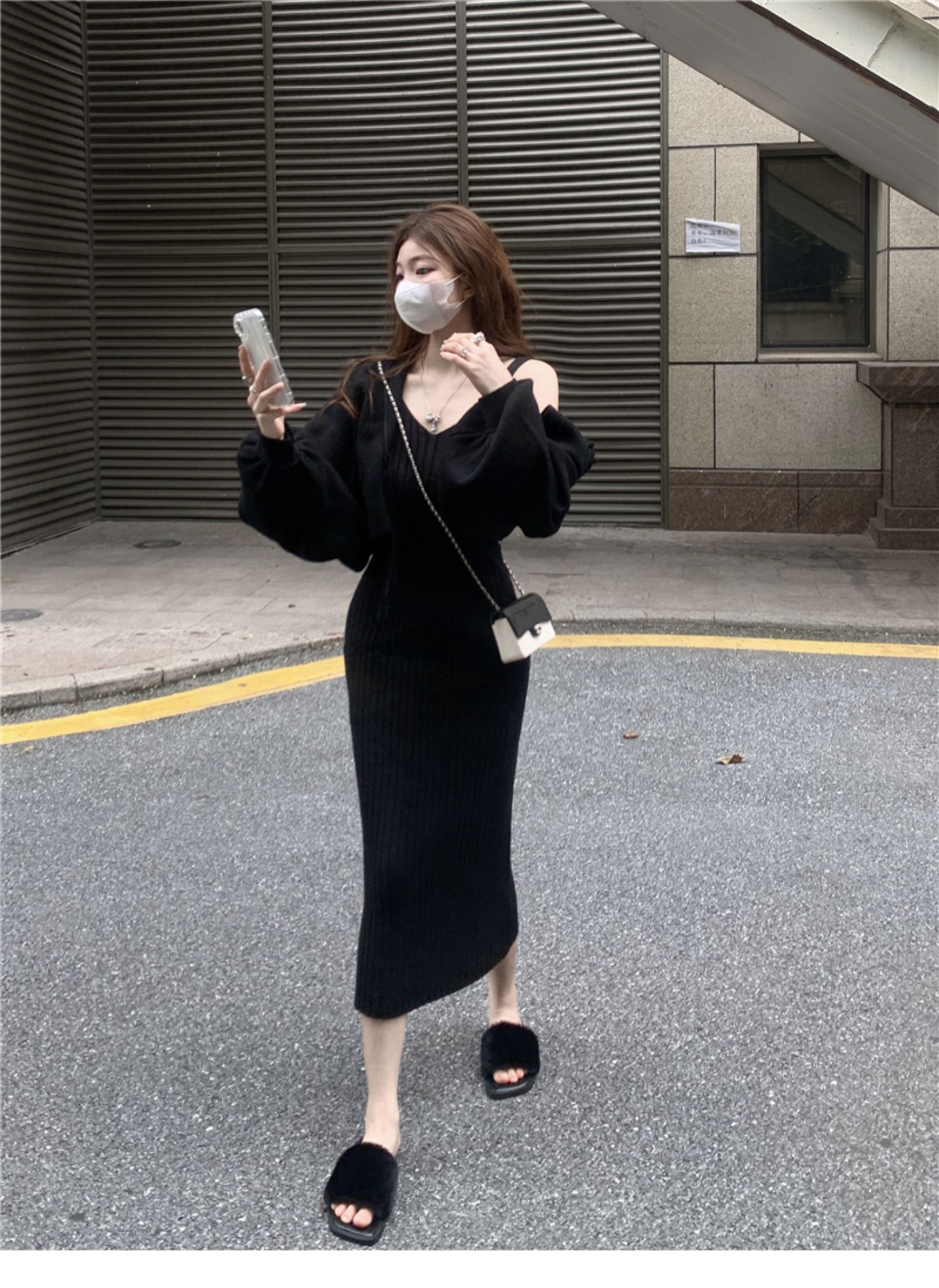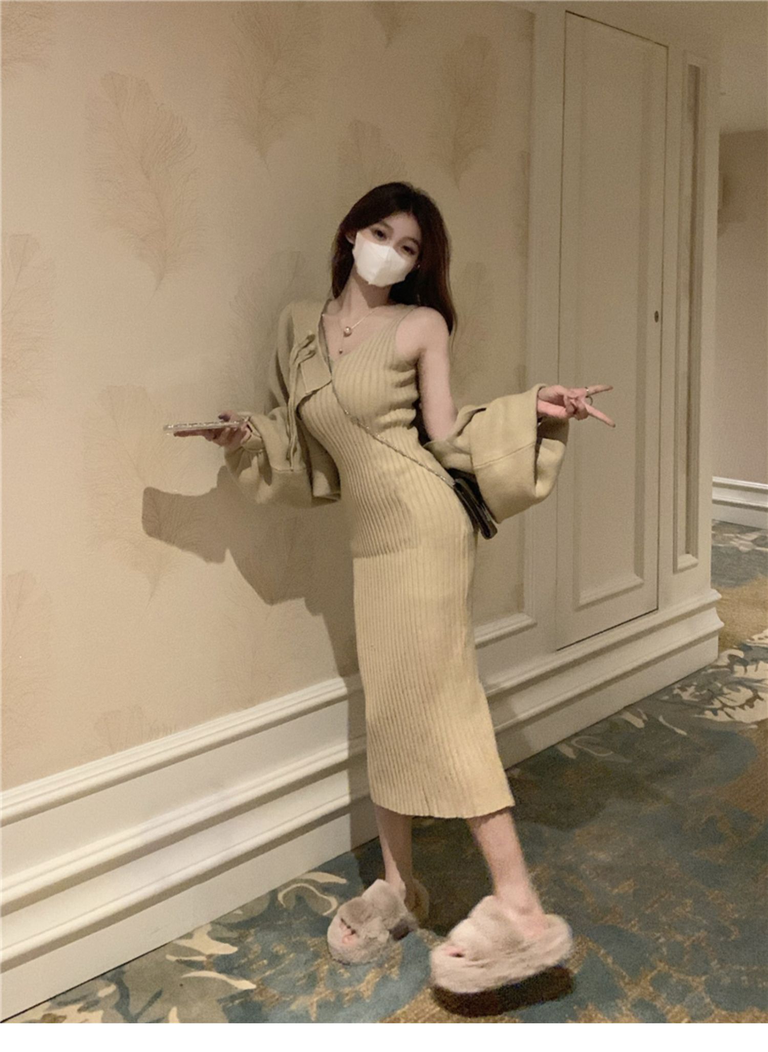 氣質吊帶毛衣連衣裙女早秋修身打底長款包臀裙內搭孕婦針織背心裙
