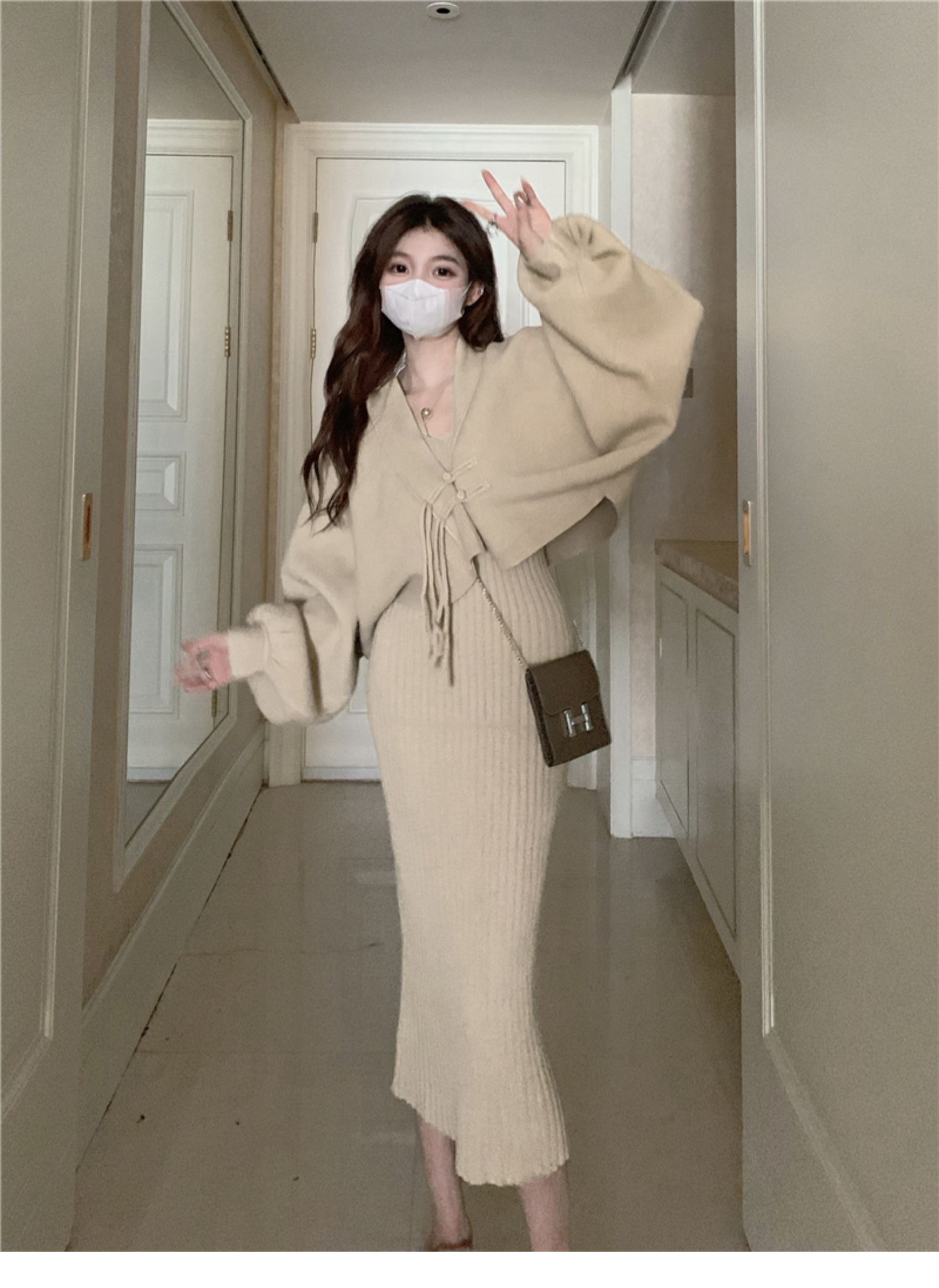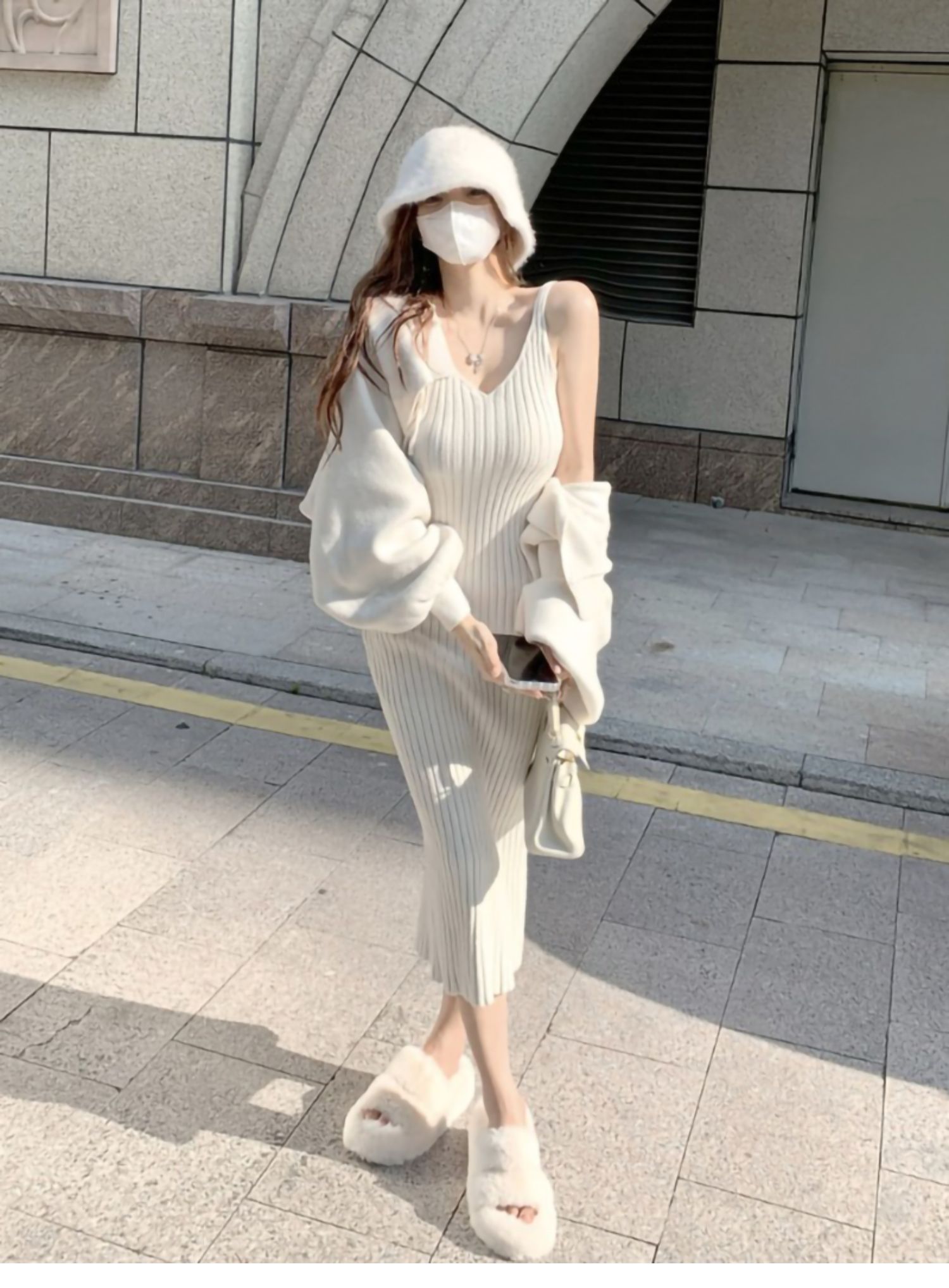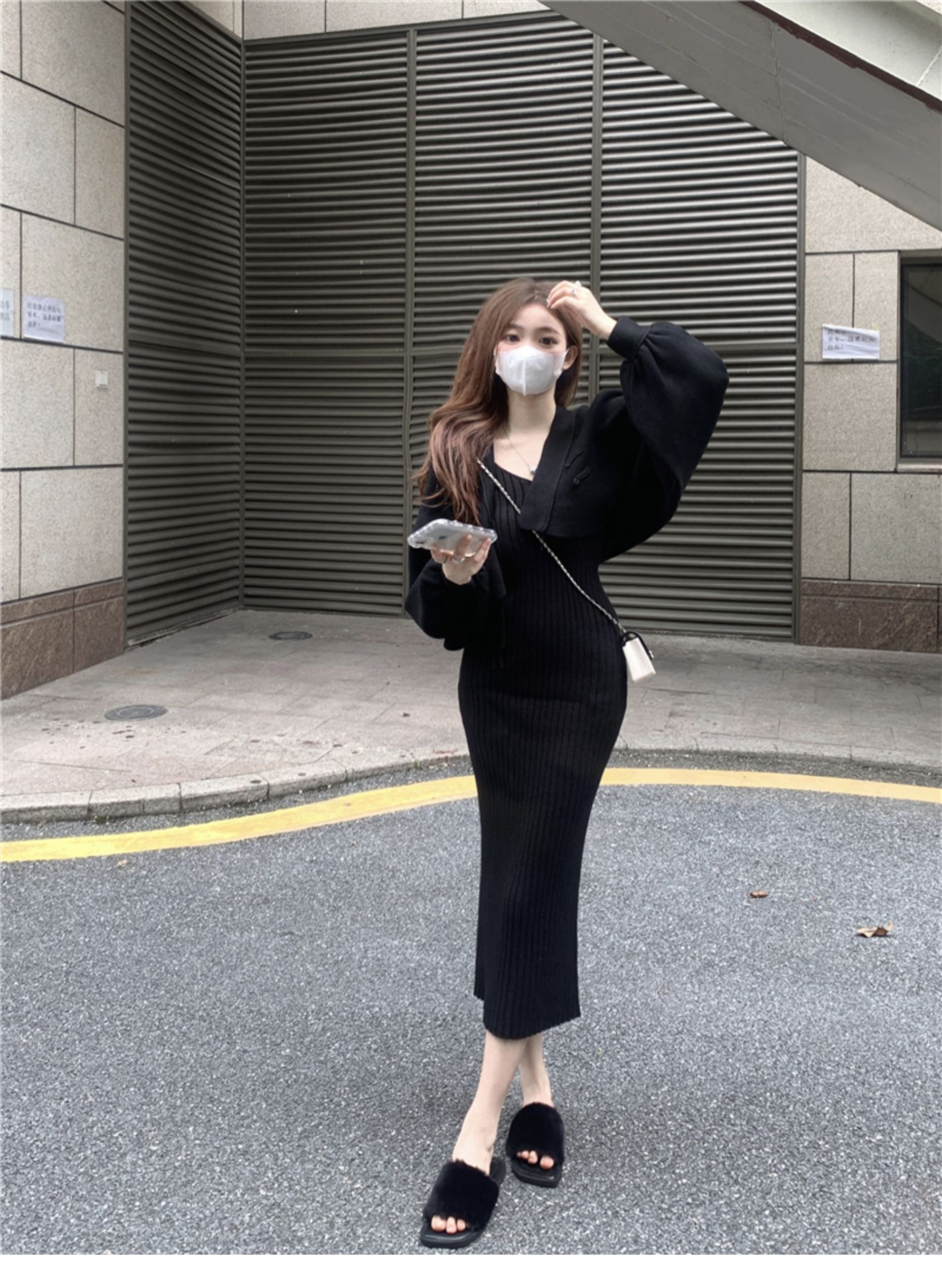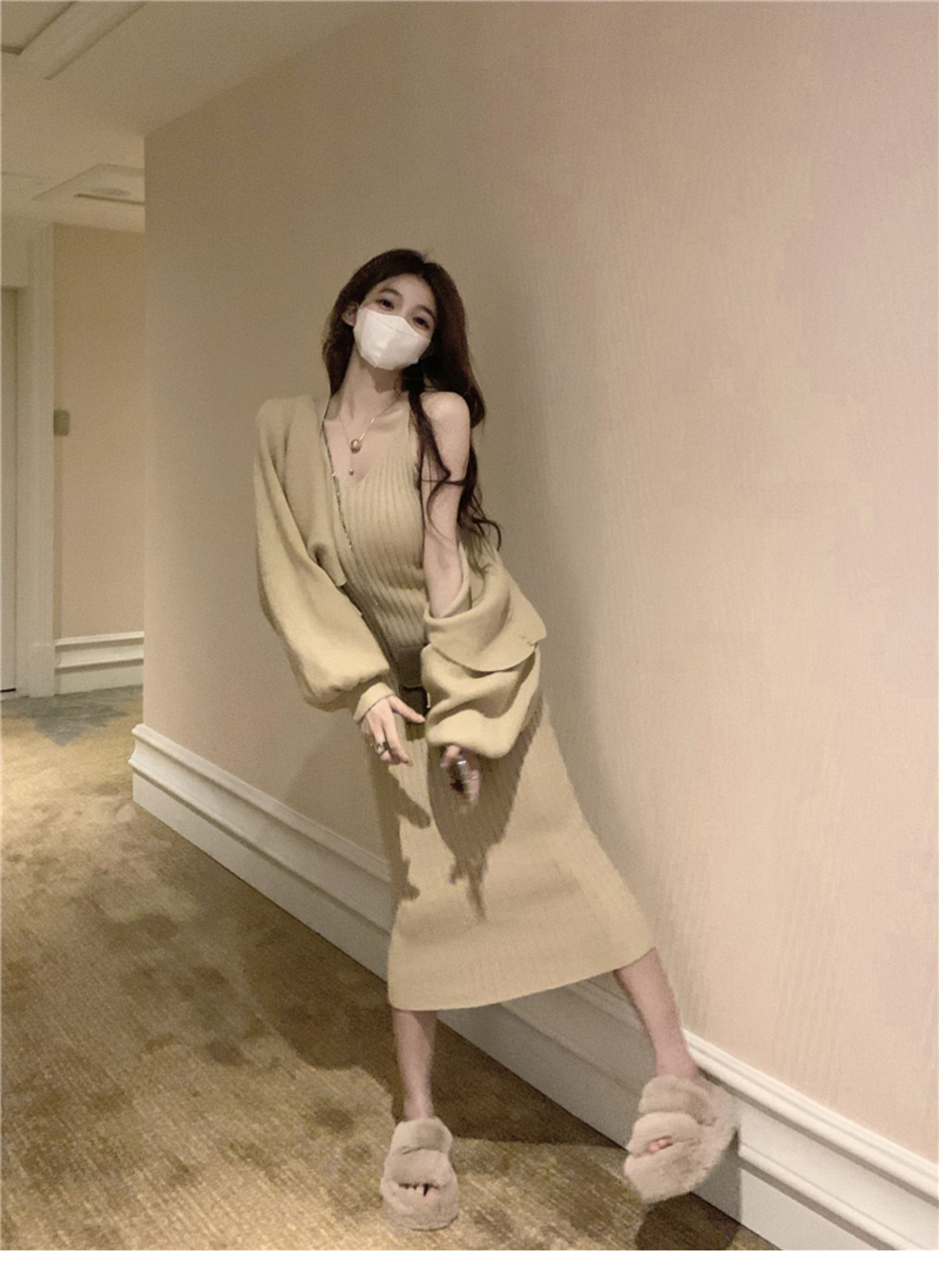 氣質吊帶毛衣連衣裙女早秋修身打底長款包臀裙內搭孕婦針織背心裙