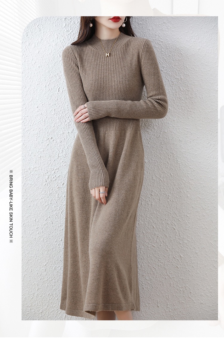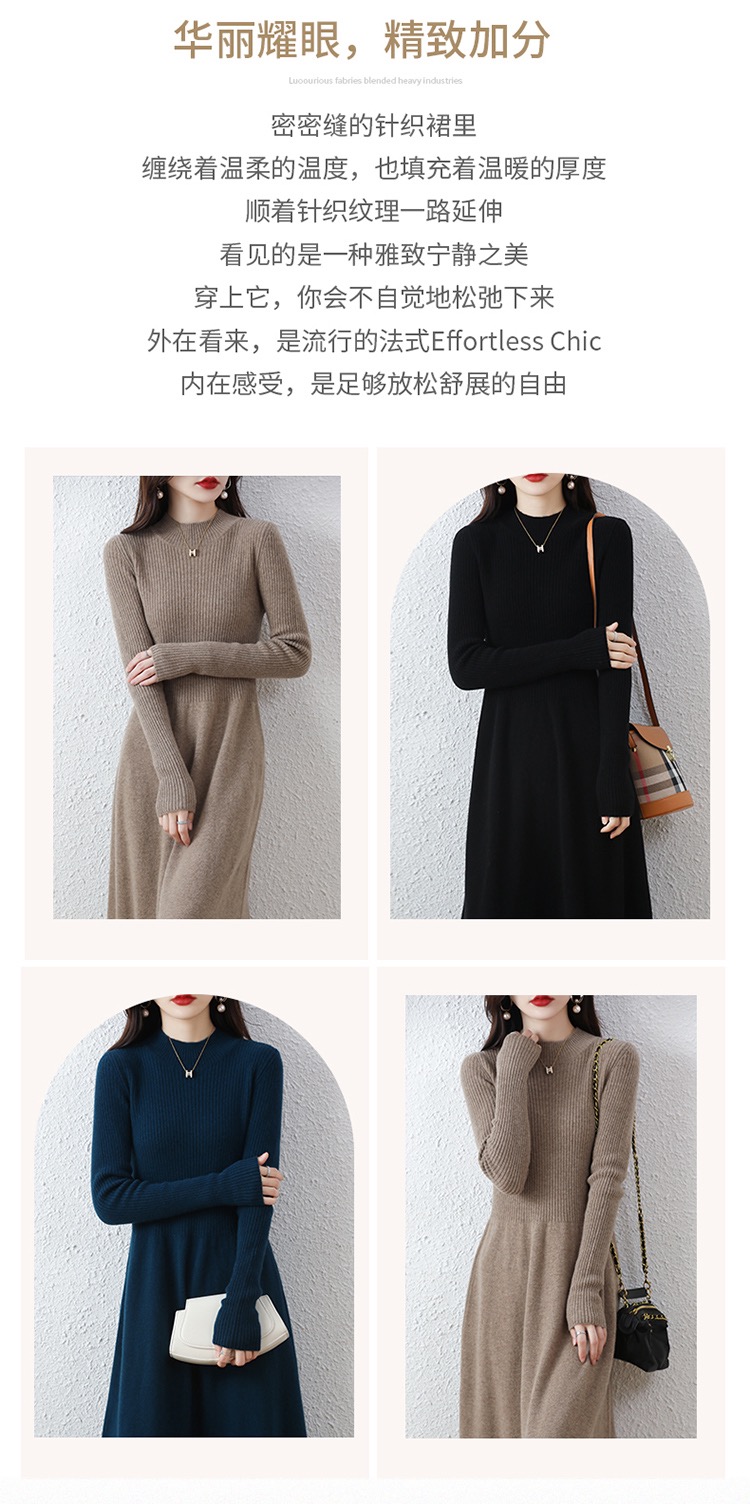 2023秋冬新款A字連衣裙女中長款半高領毛衣過膝顯瘦針織羊絨長裙