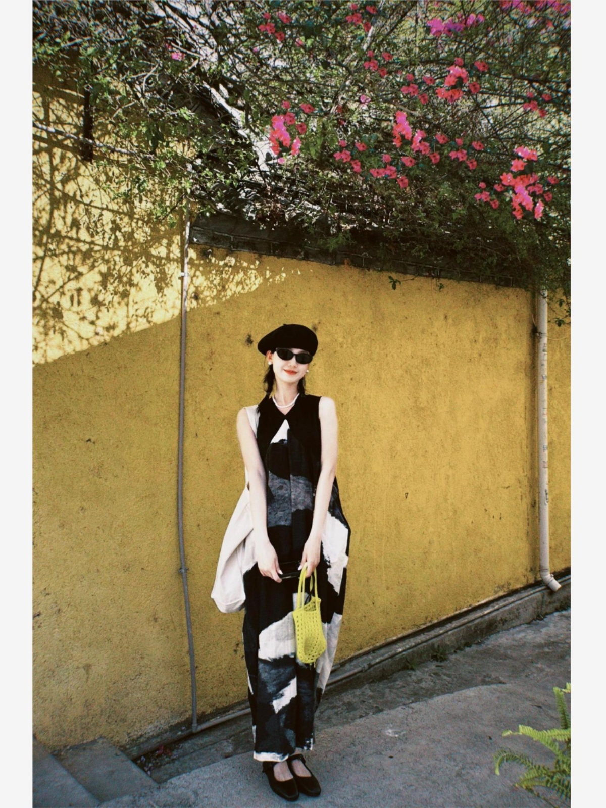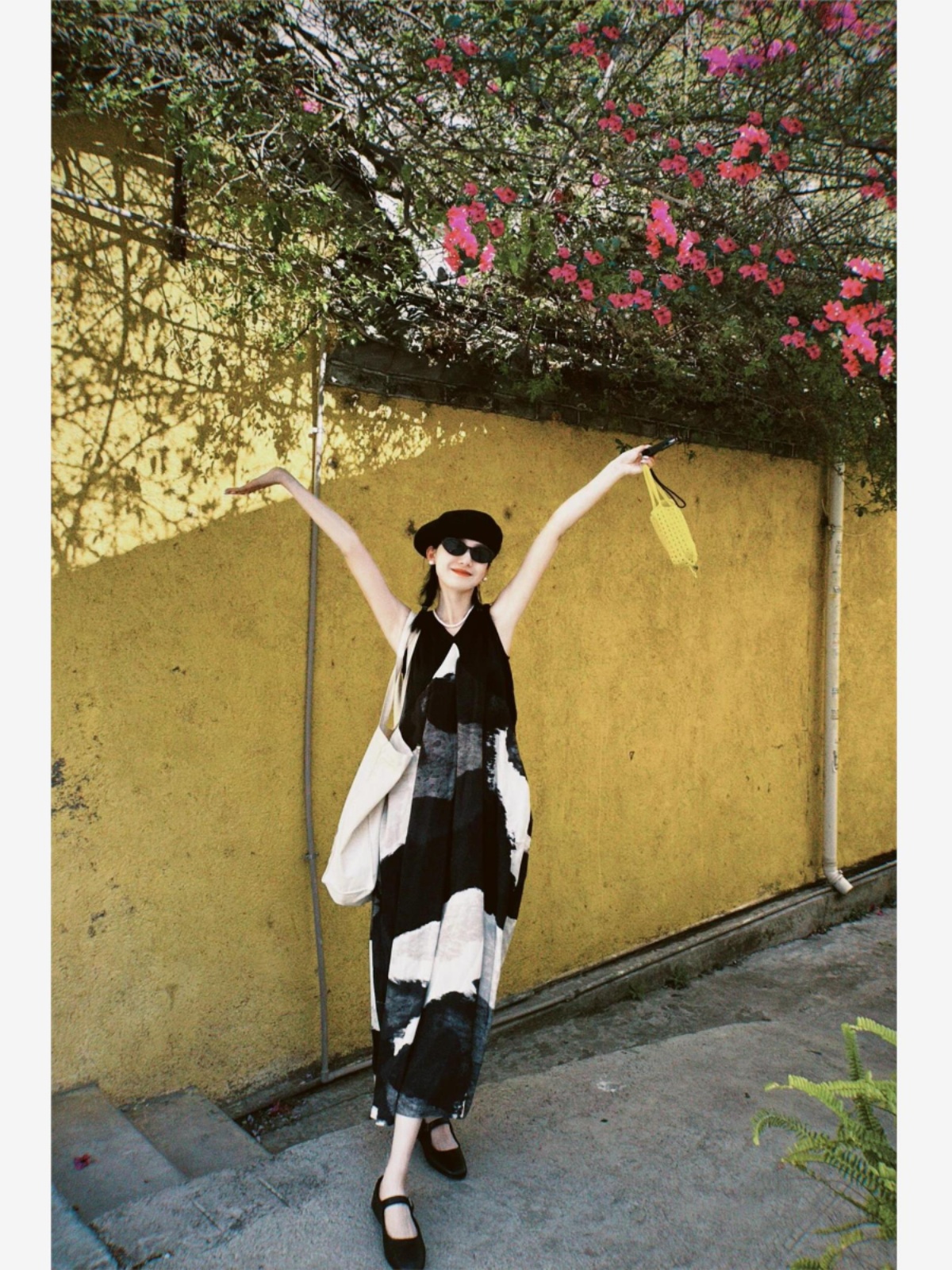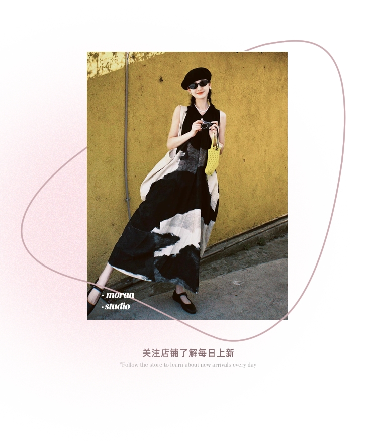 新中式水墨畫印花背心連衣裙女夏季松弛感設計小衆休閒寬松長裙子