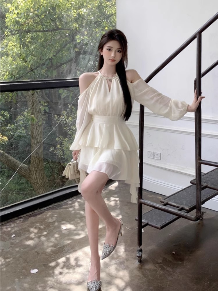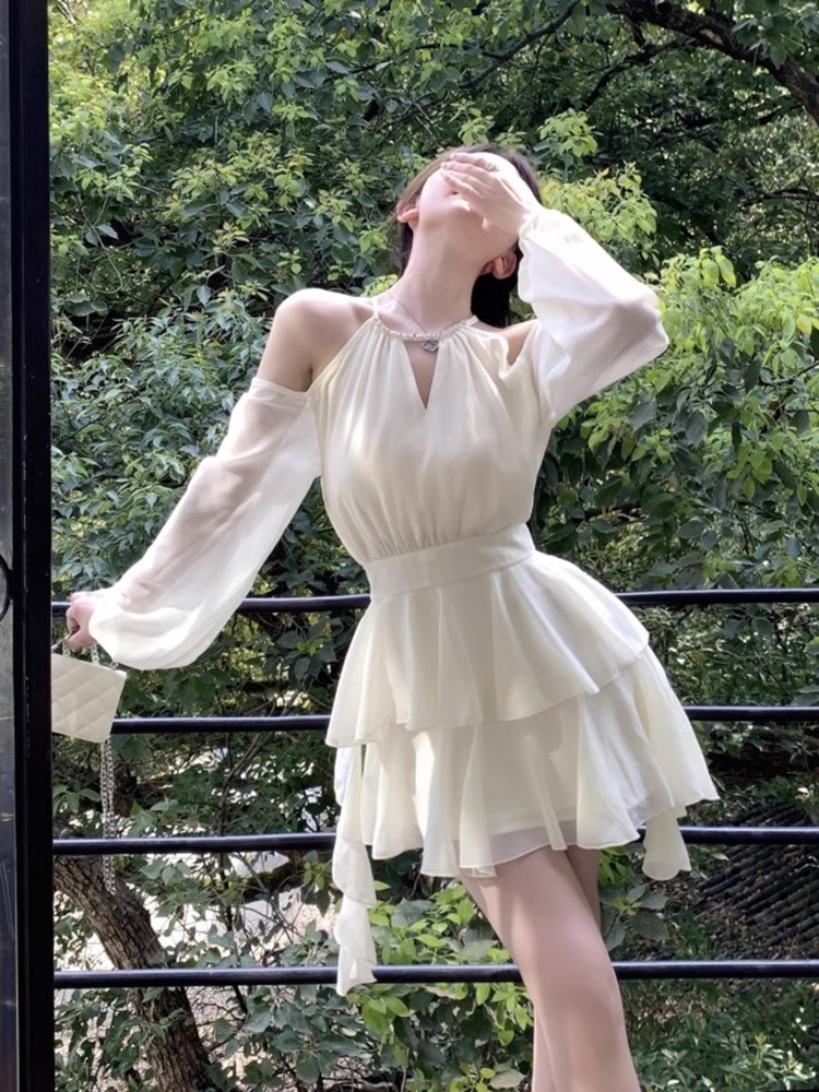 秋冬大碼胖mm法式長袖連衣裙仙女收腰甜美雪紡短裙荷葉邊蛋糕裙子