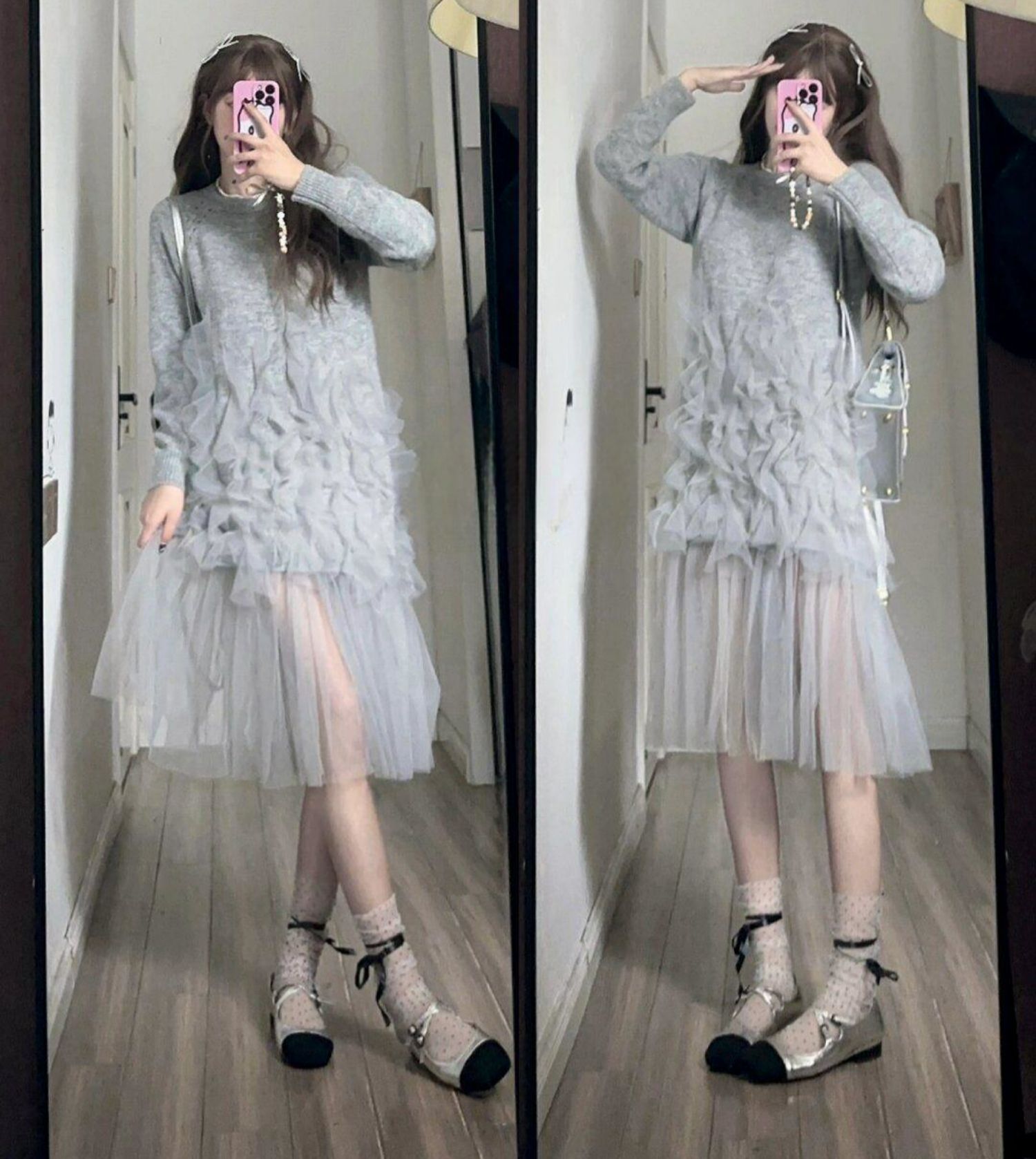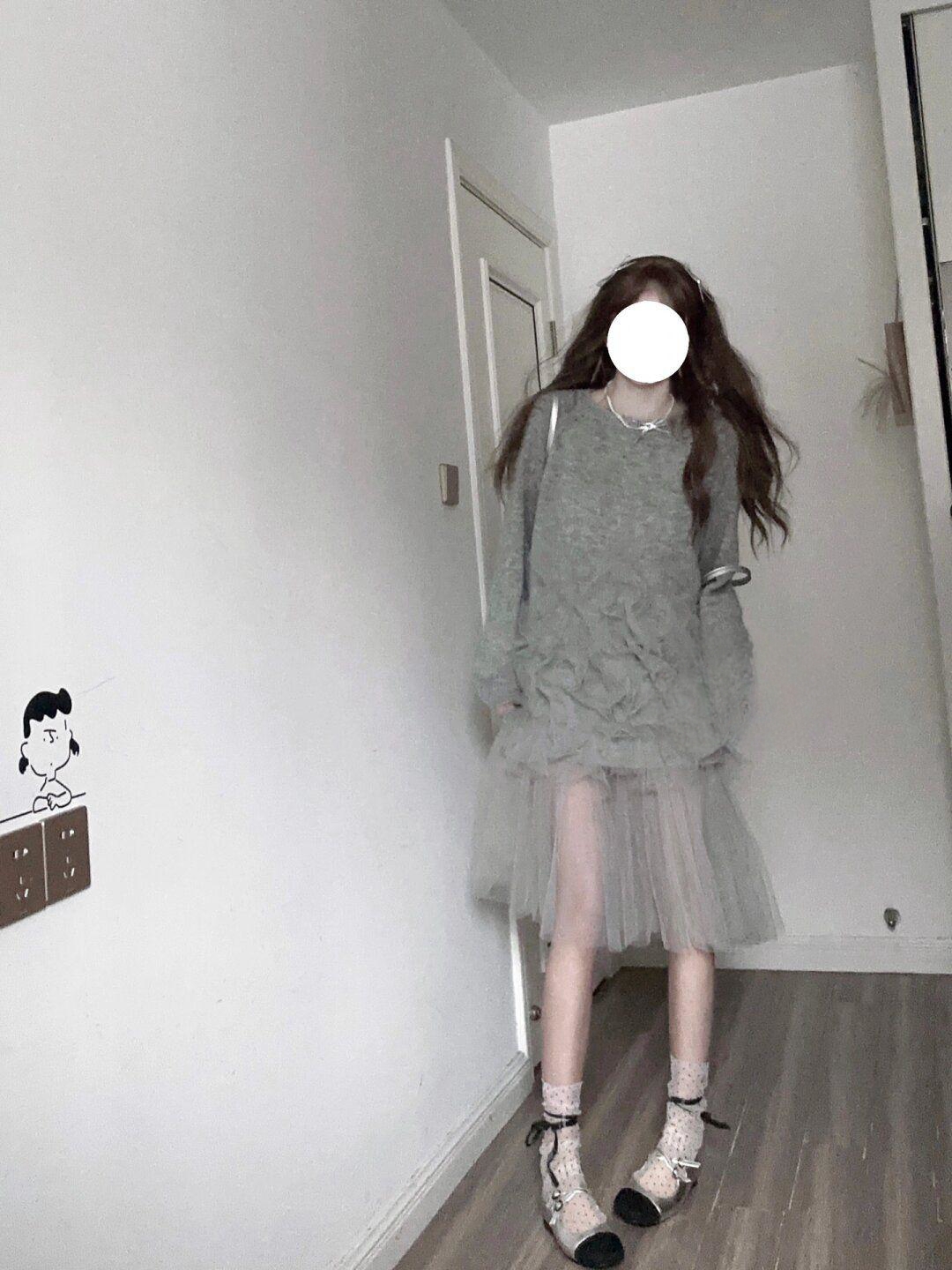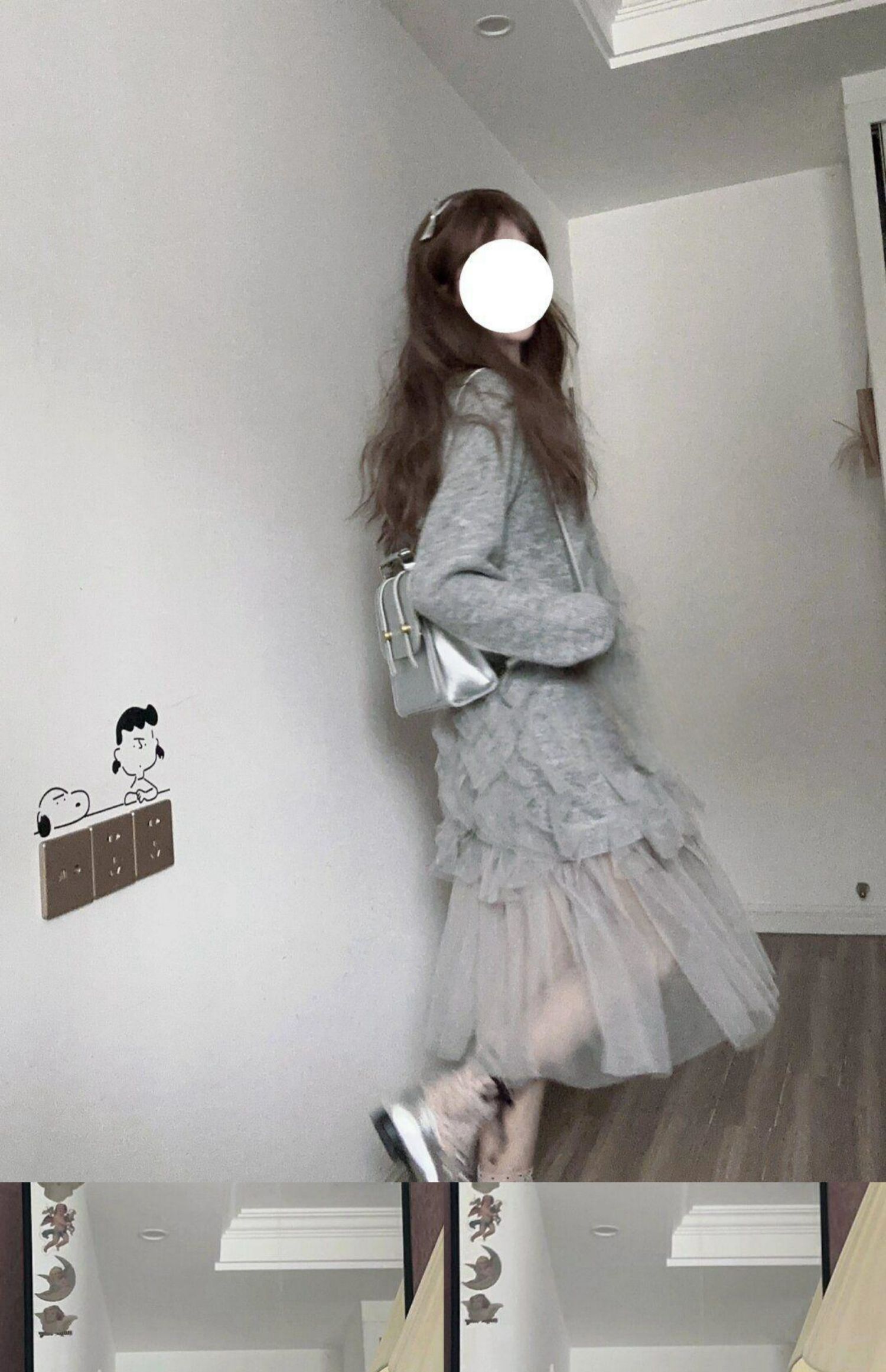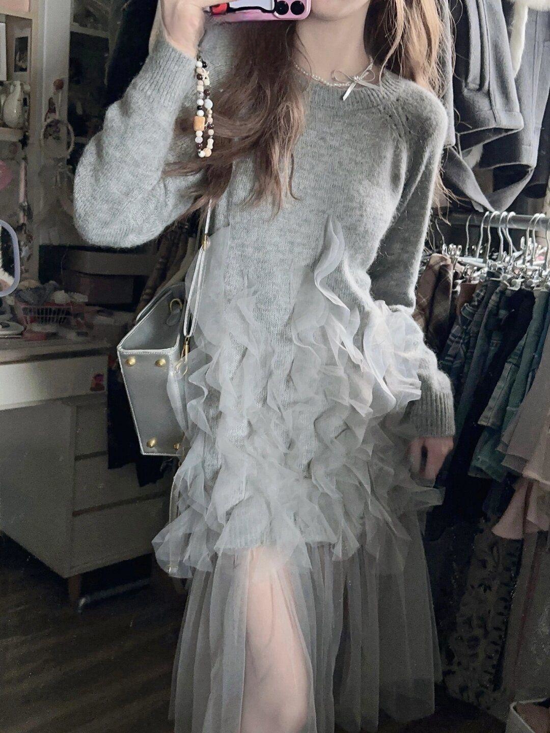 法式氣質高級感超仙女網紗針織連衣裙女秋季設計感小衆溫柔風長裙