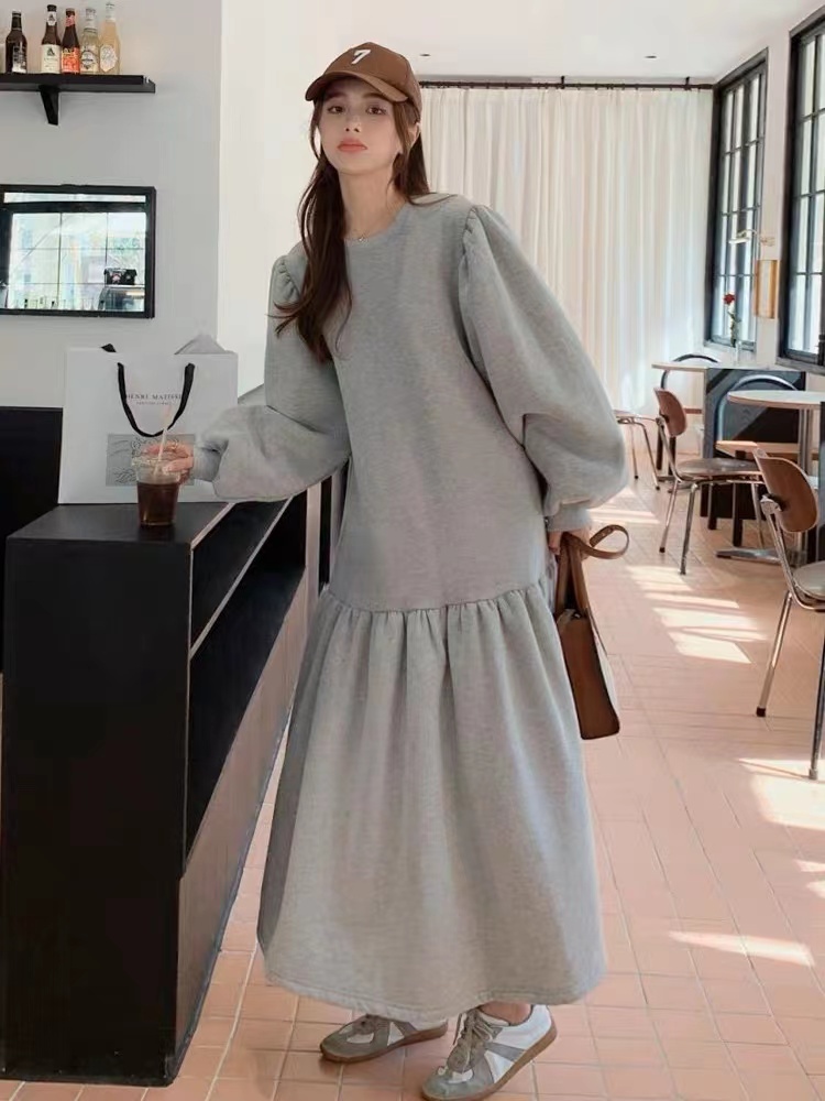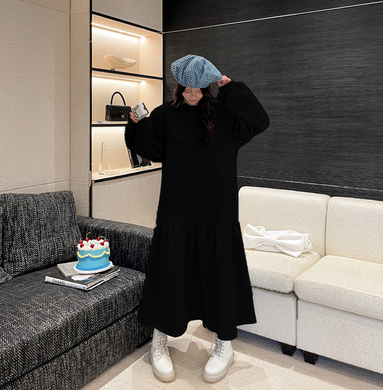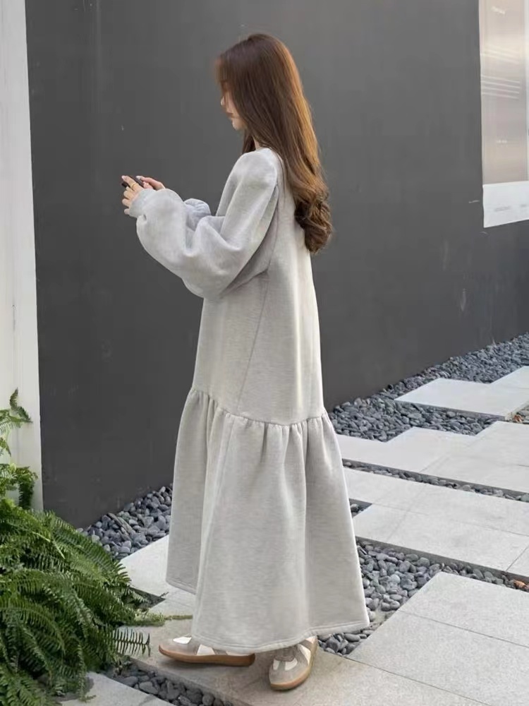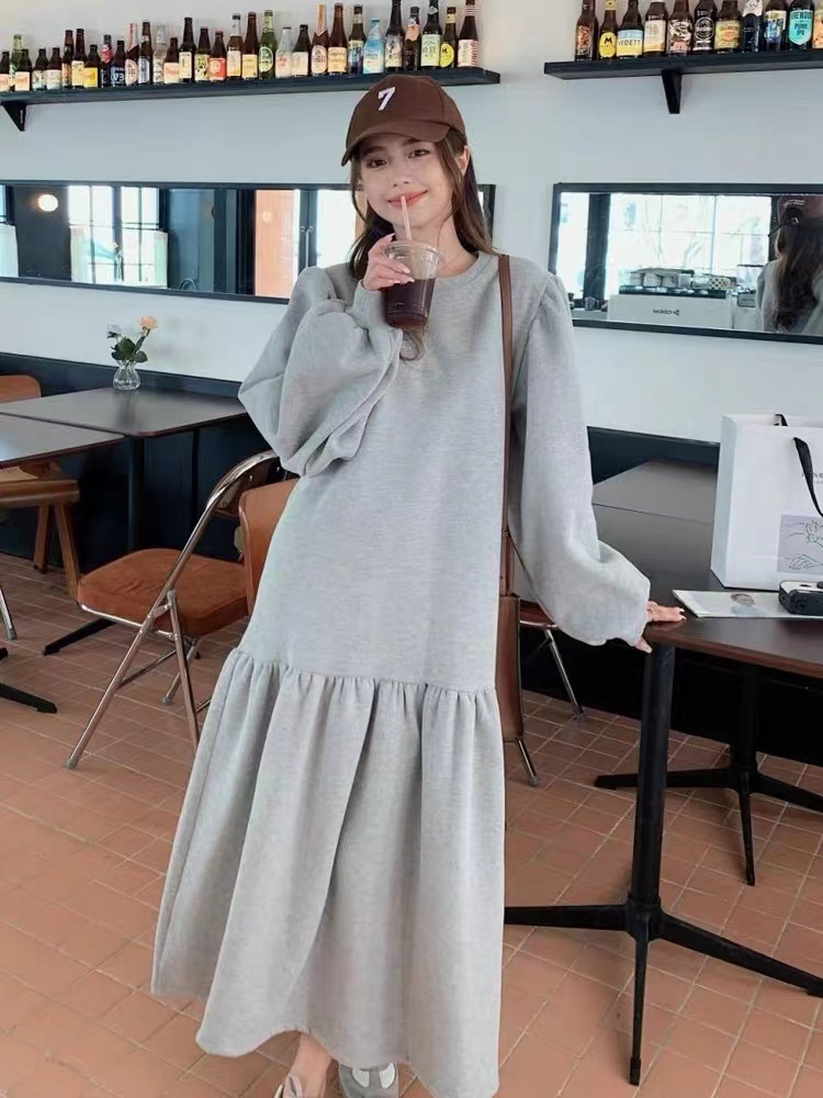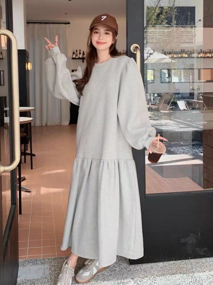 長款過膝衛衣連衣裙女2025春季新款胖mm寬松簡約魚尾減齡a字裙子