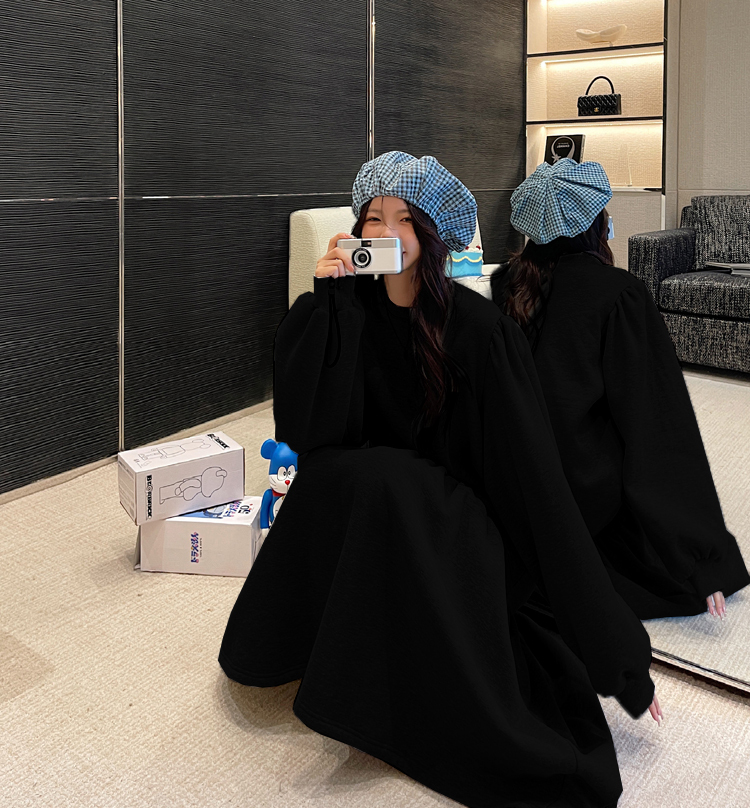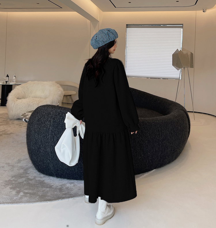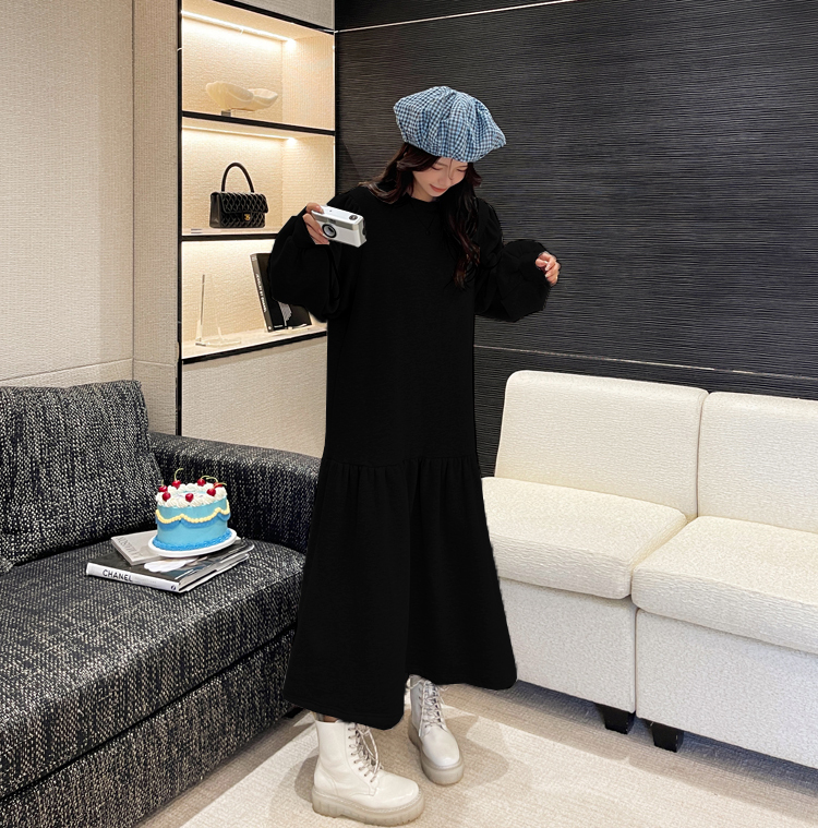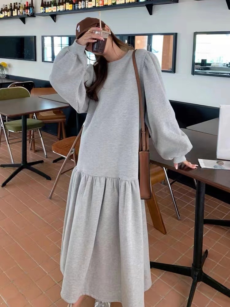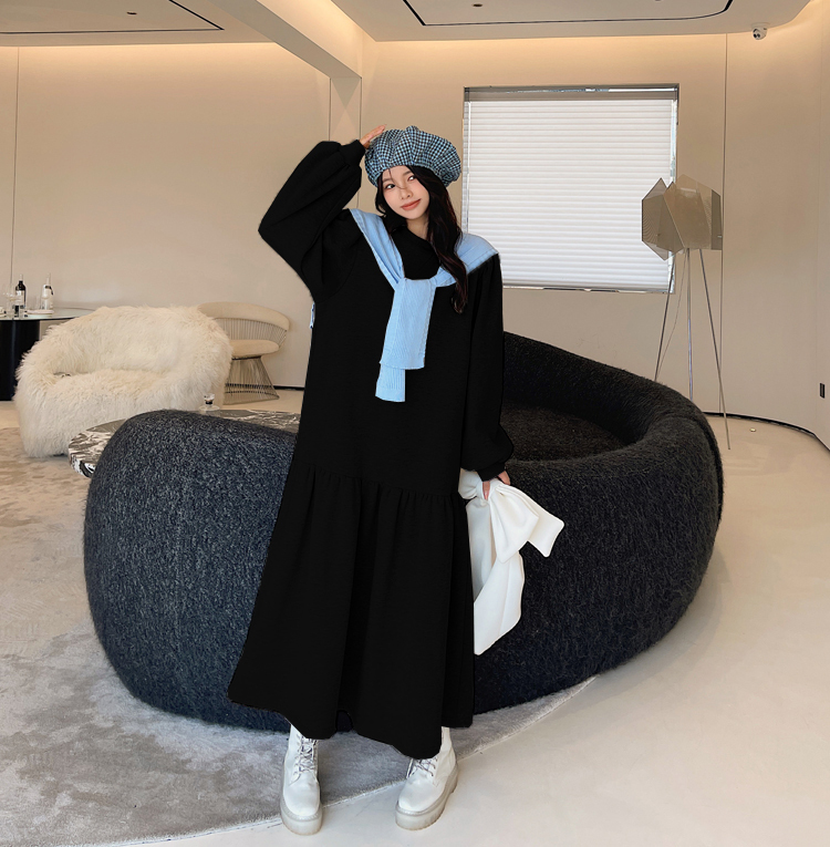 長款過膝衛衣連衣裙女2025春季新款胖mm寬松簡約魚尾減齡a字裙子