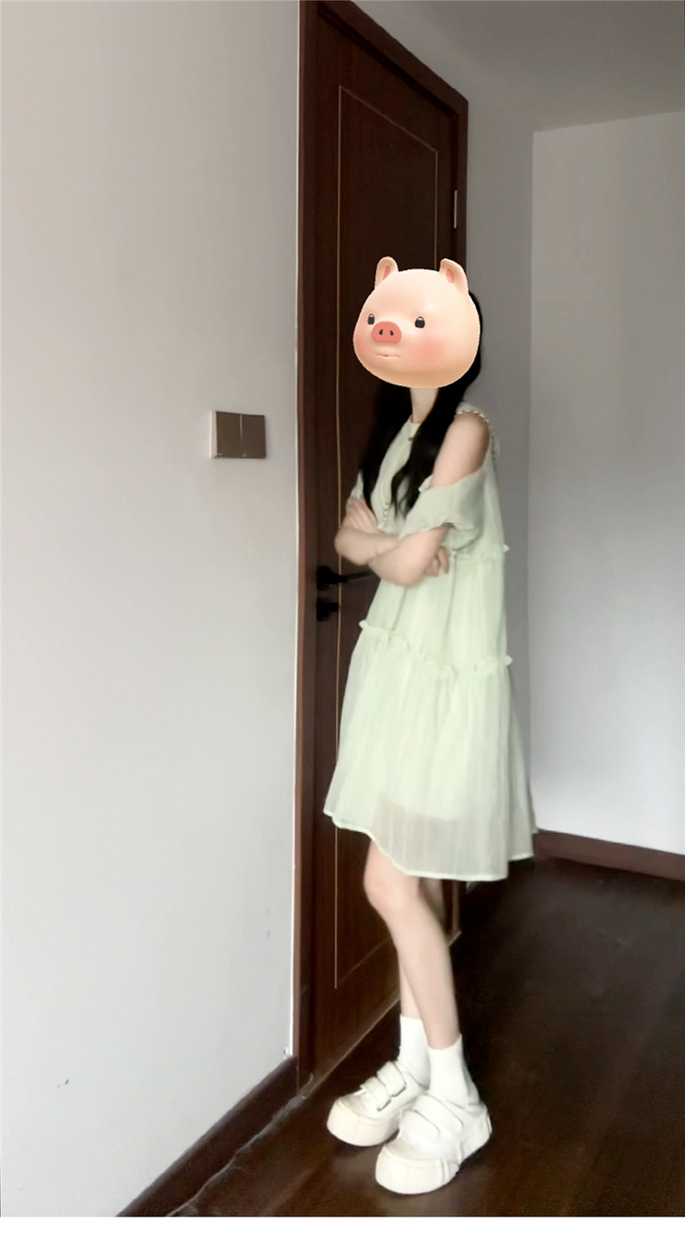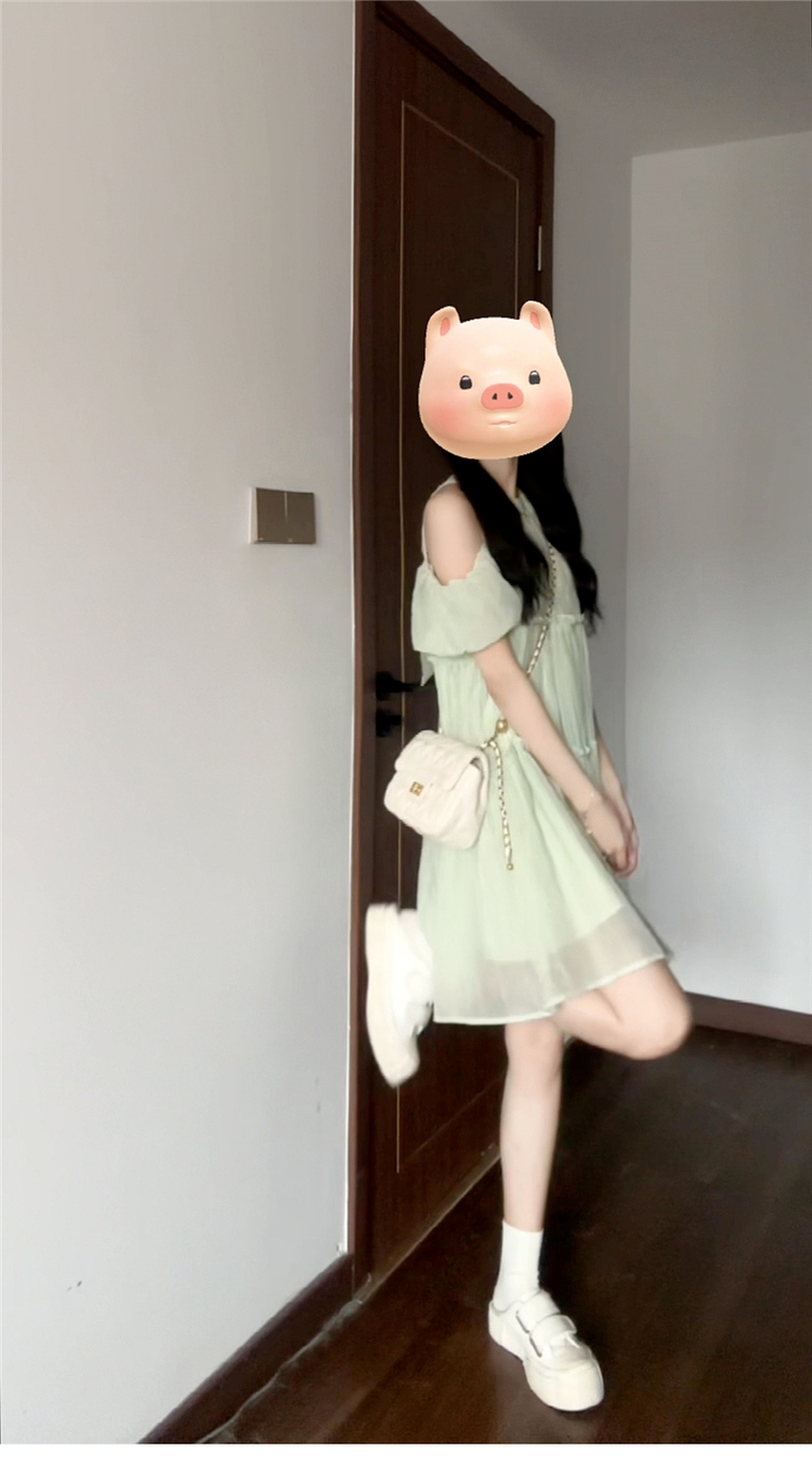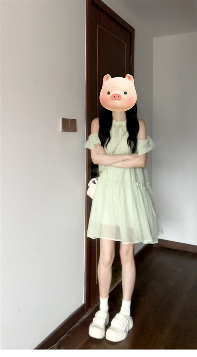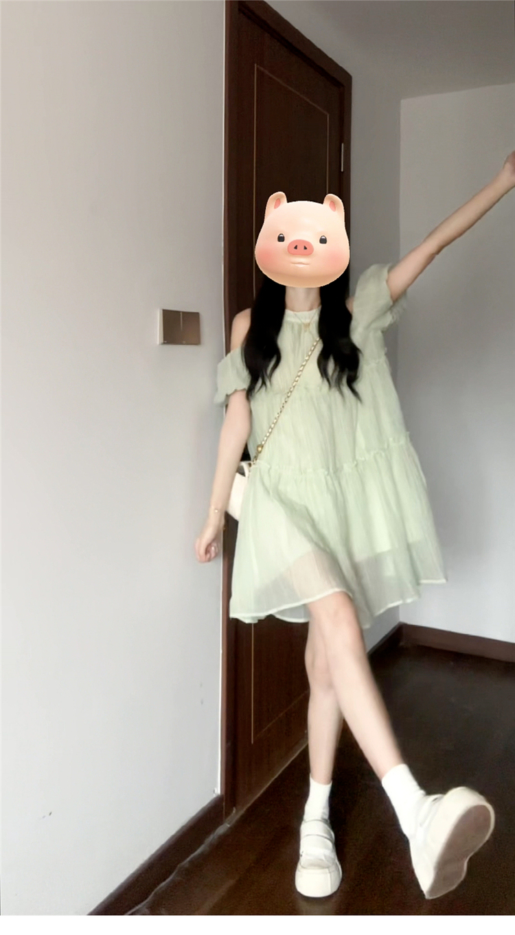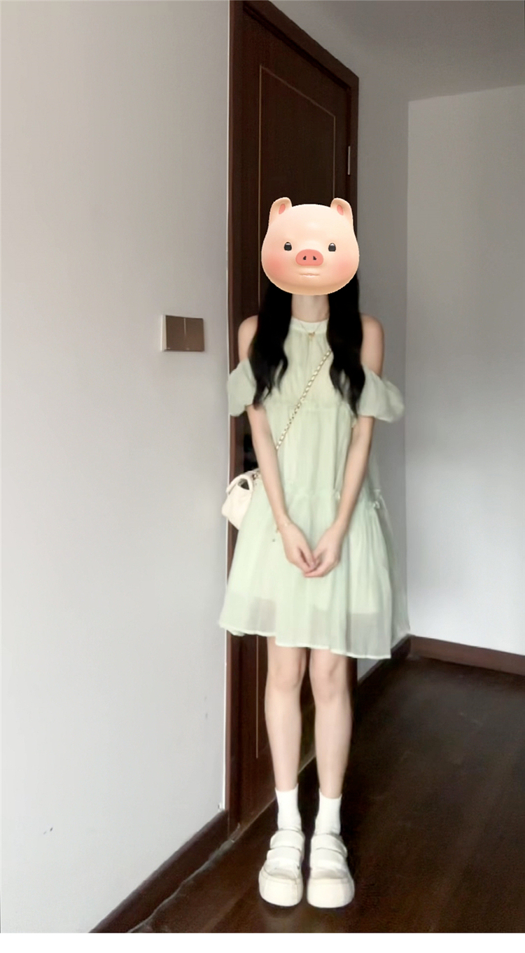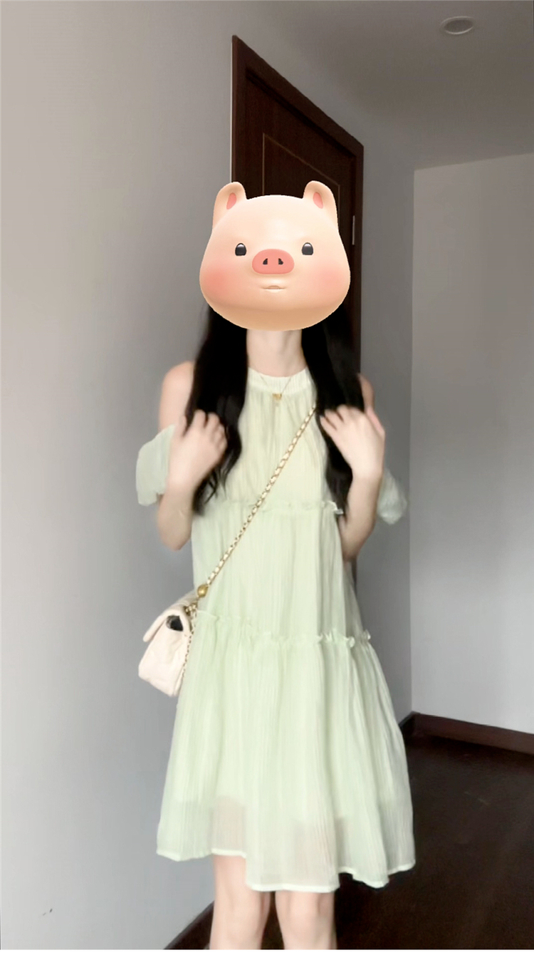 2025新款小個子露肩掛脖吊帶綠色連衣裙子女夏季法式初戀仙女短裙