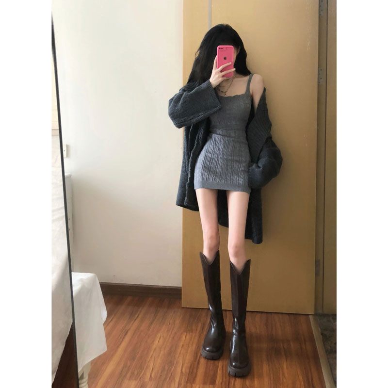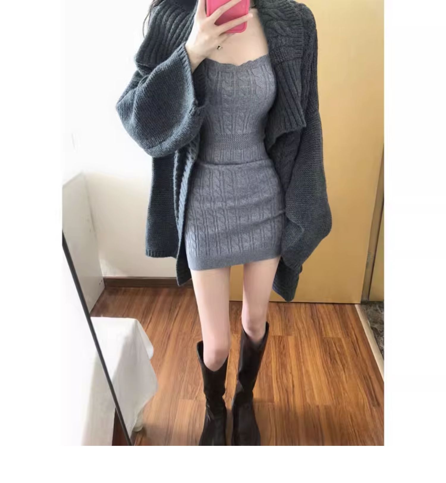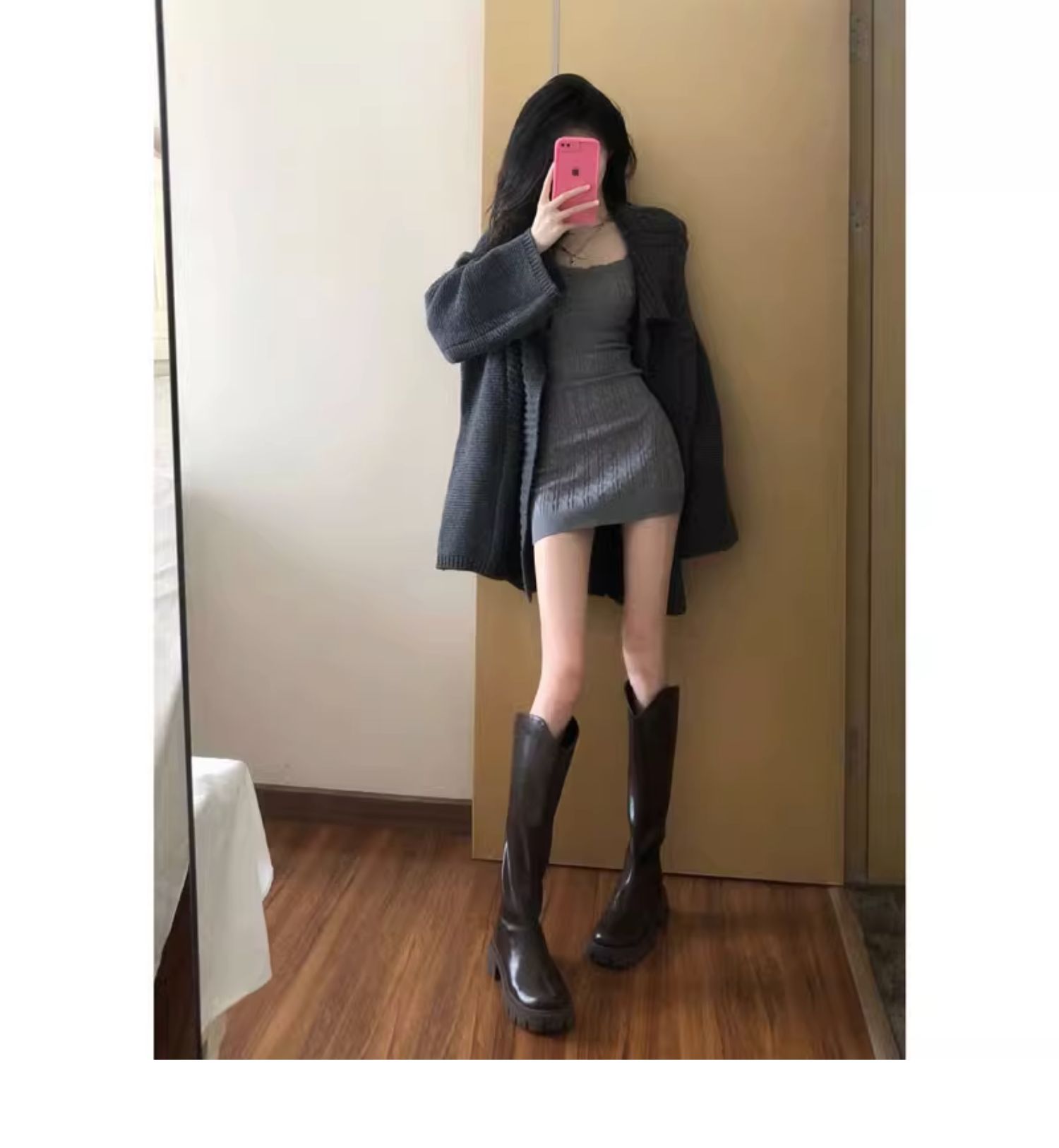 秋冬季純欲辣妹無袖針織吊帶短裙修身緊身顯瘦包臀內搭連衣裙子女