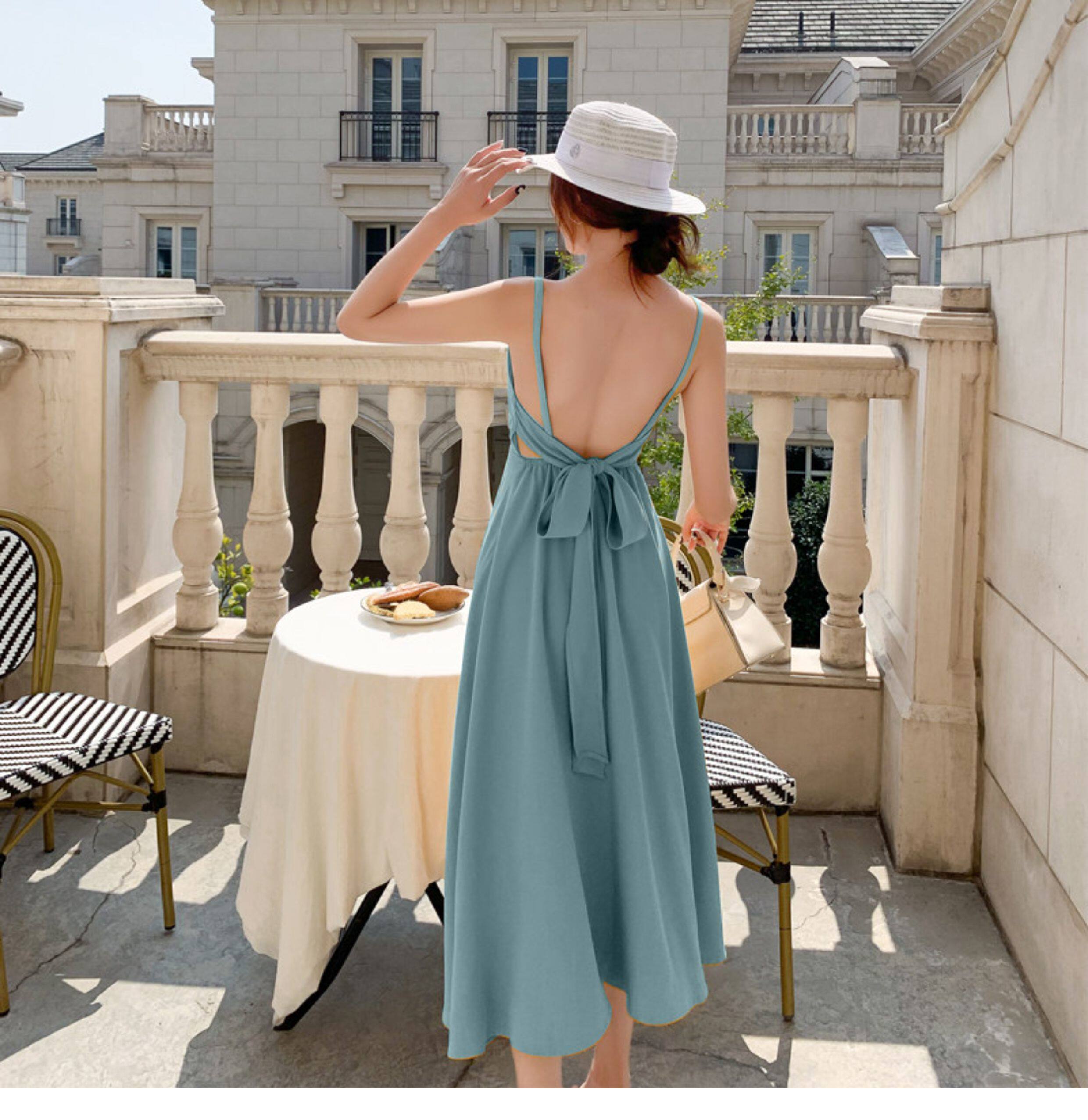 沙灘裙拍照絕美海邊旅遊度假性感露背長裙顯瘦V領吊帶連衣裙超仙