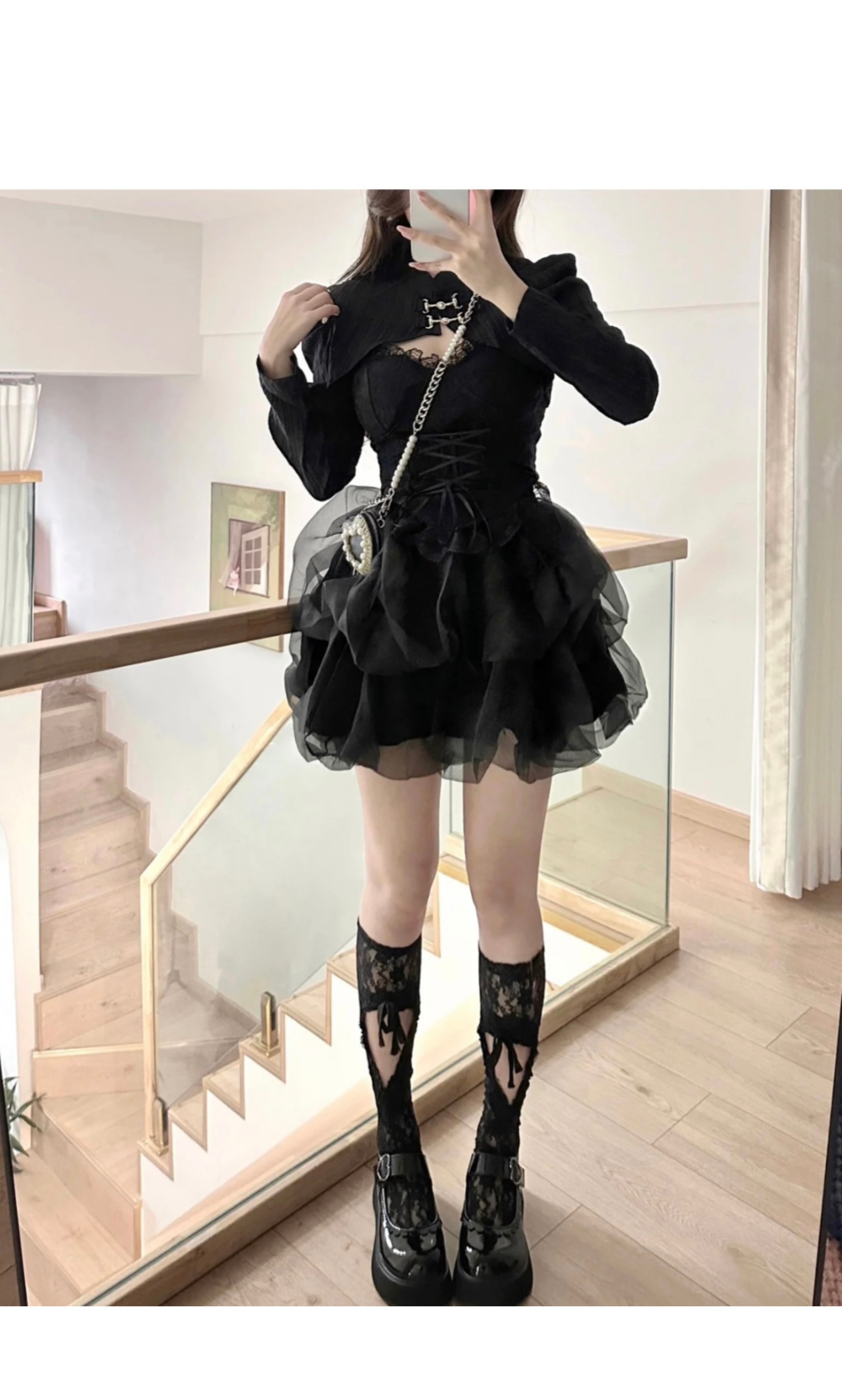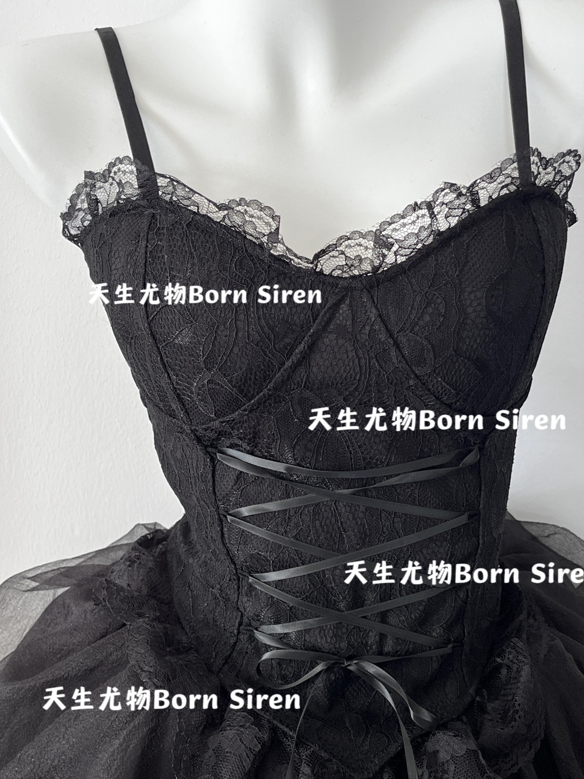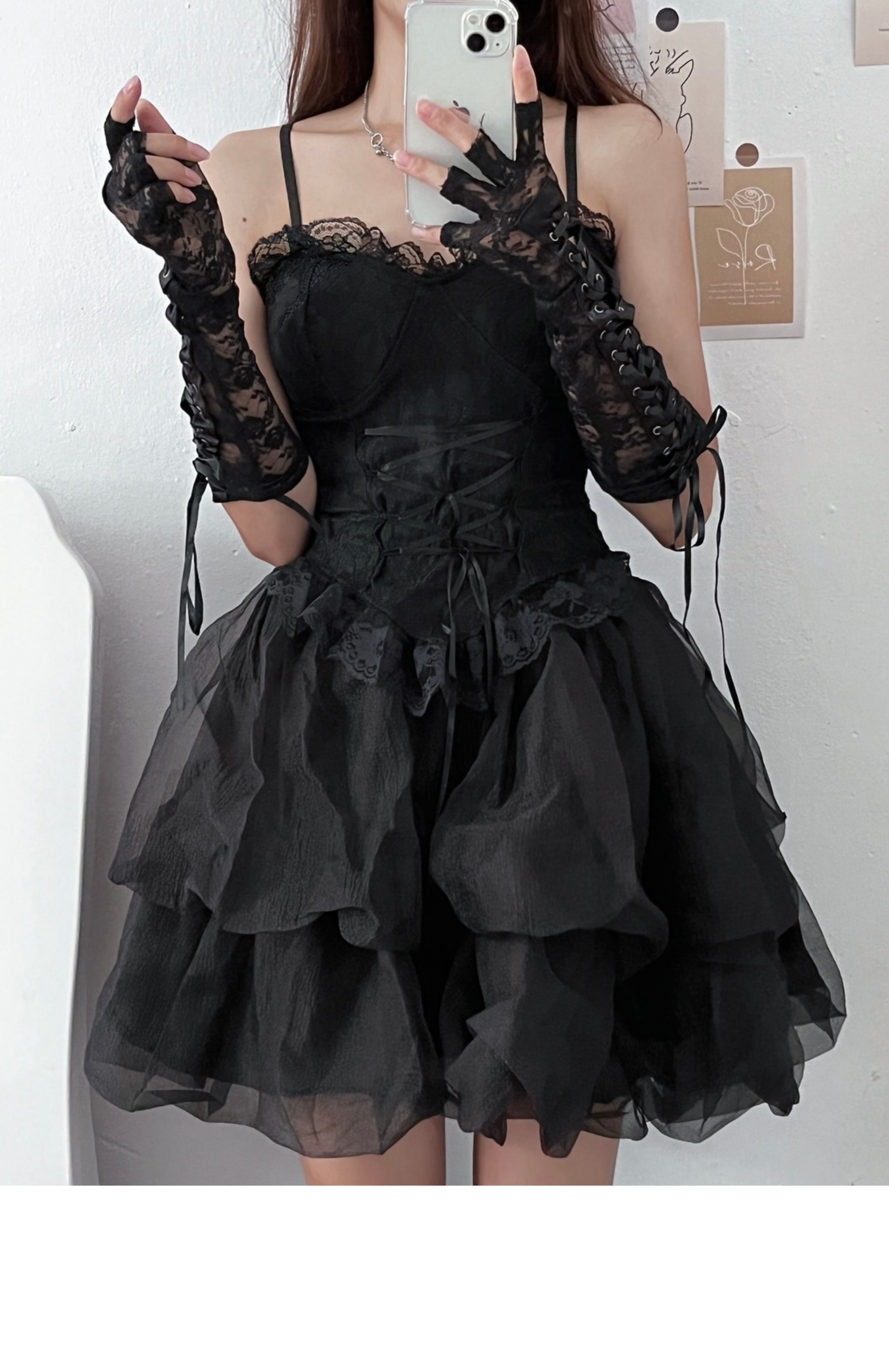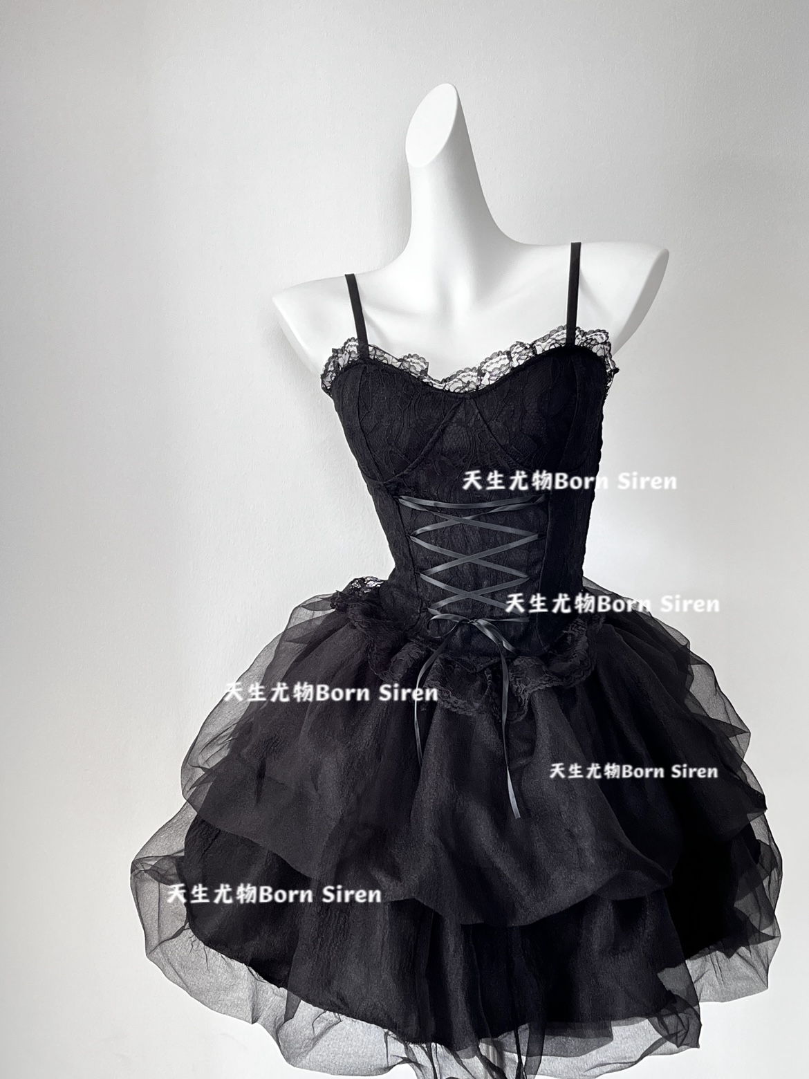 暗黑性感辣妹吊帶上衣帶胸墊收腰公主蓬蓬裙生日短裙萬聖節服裝