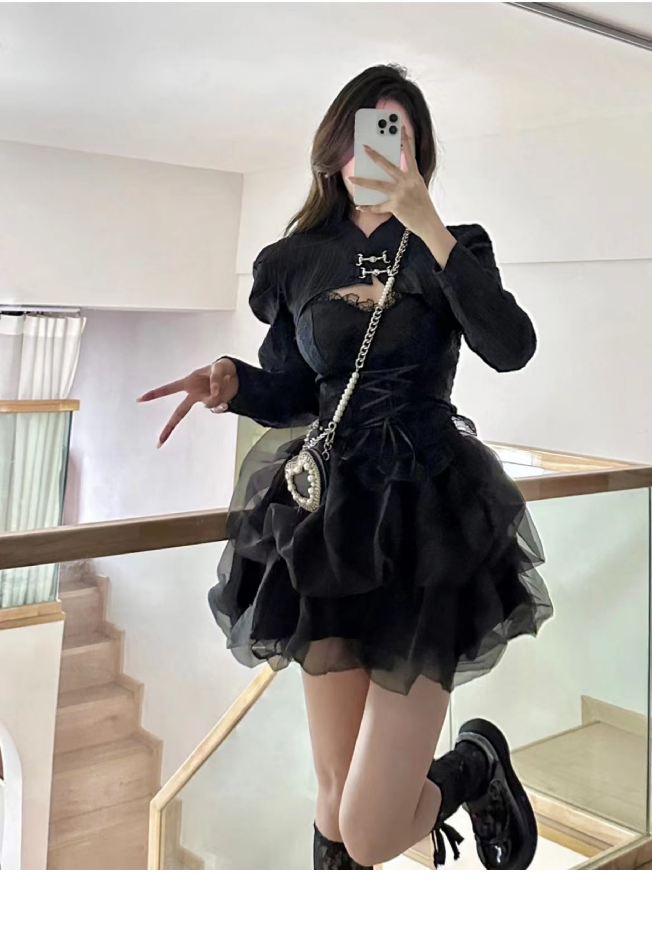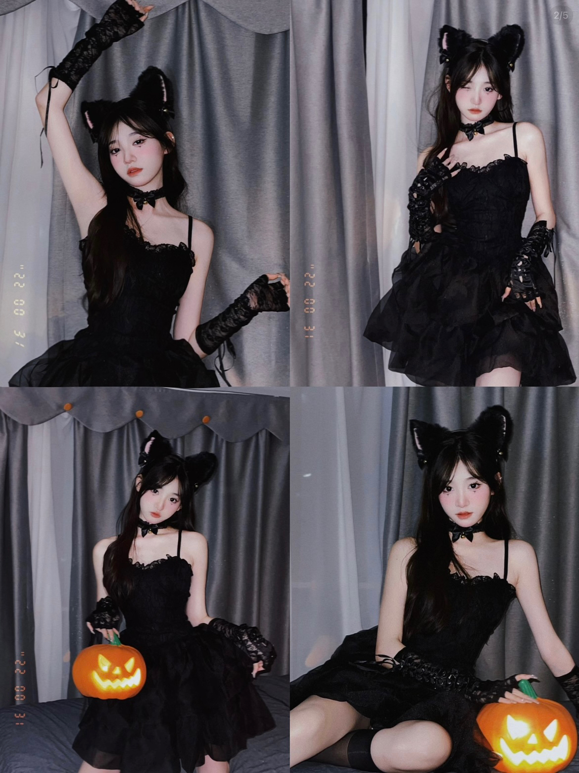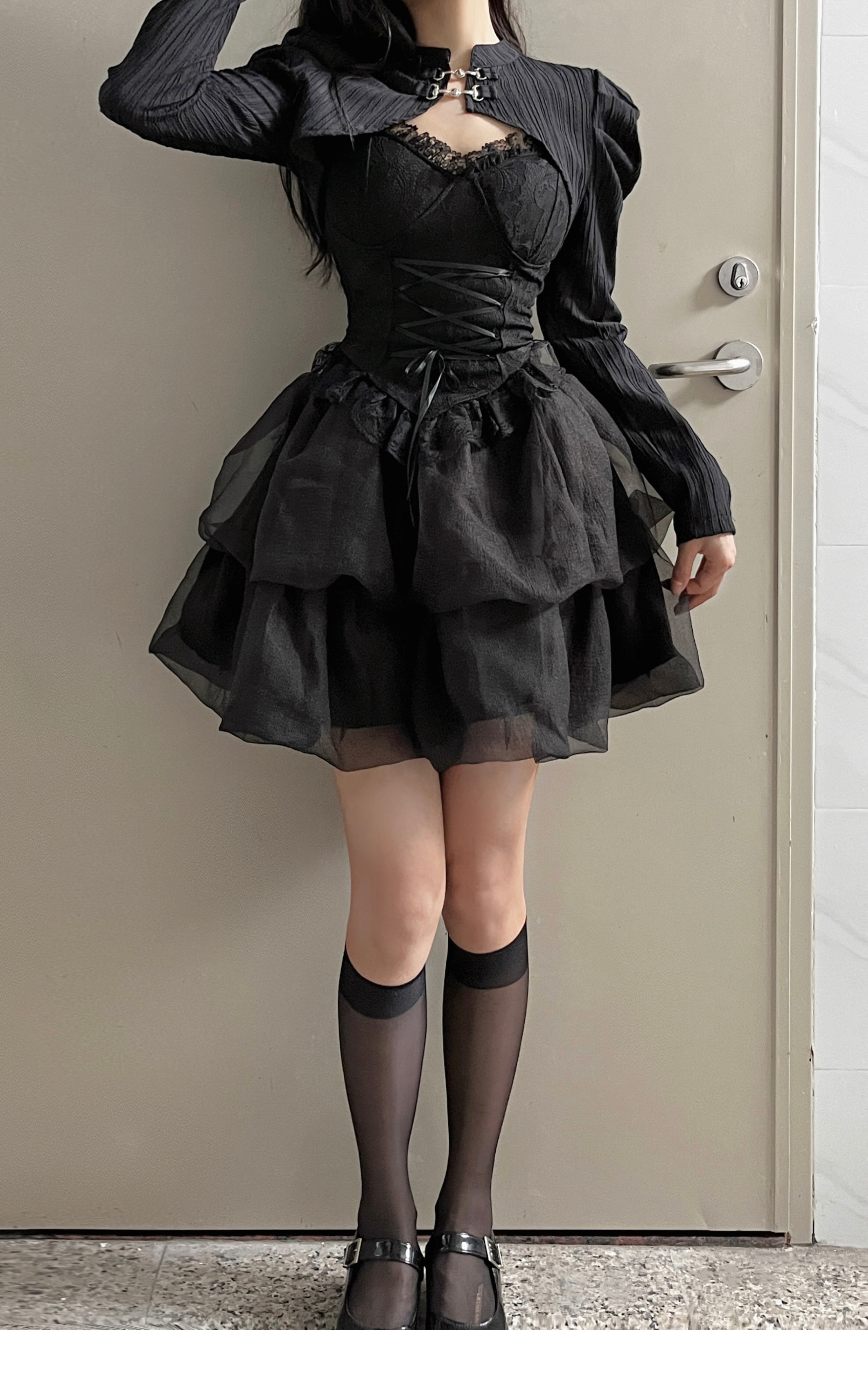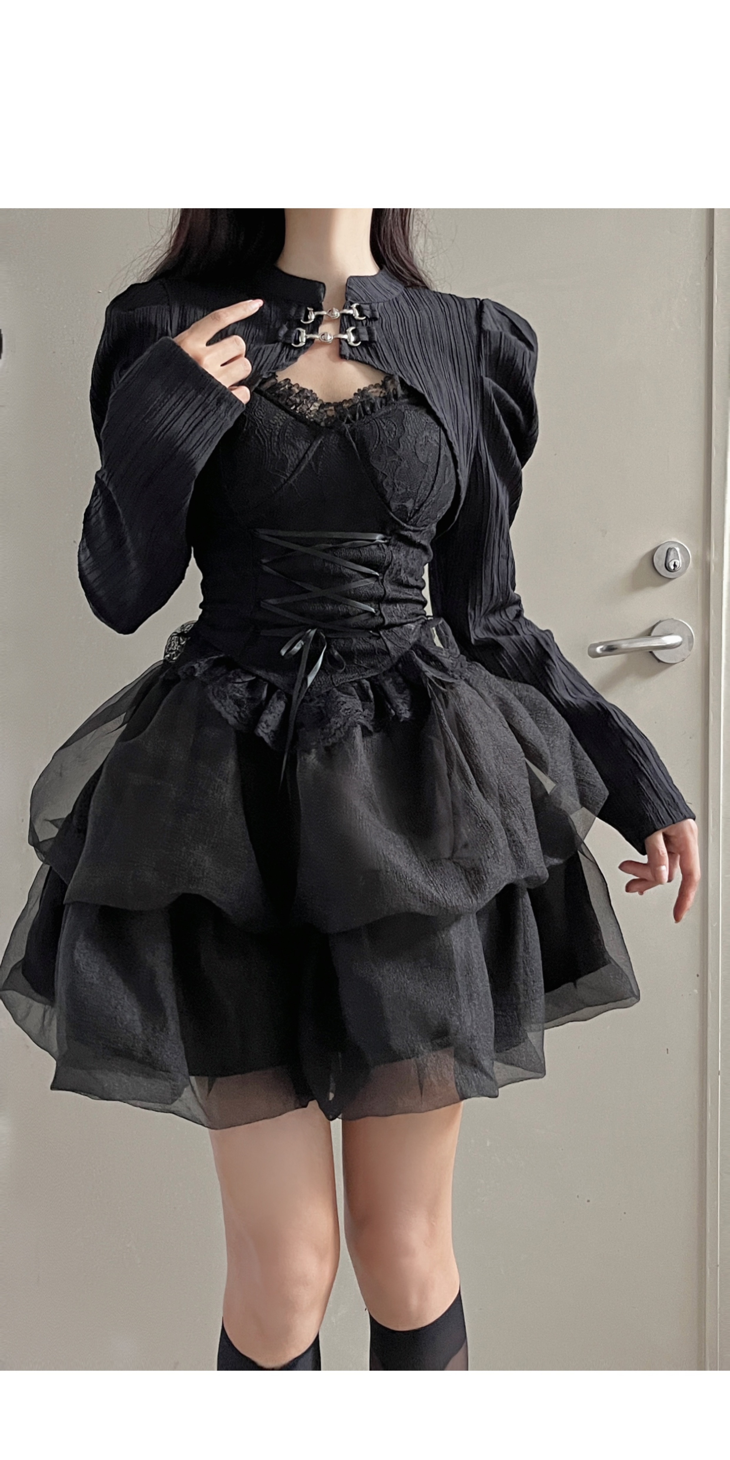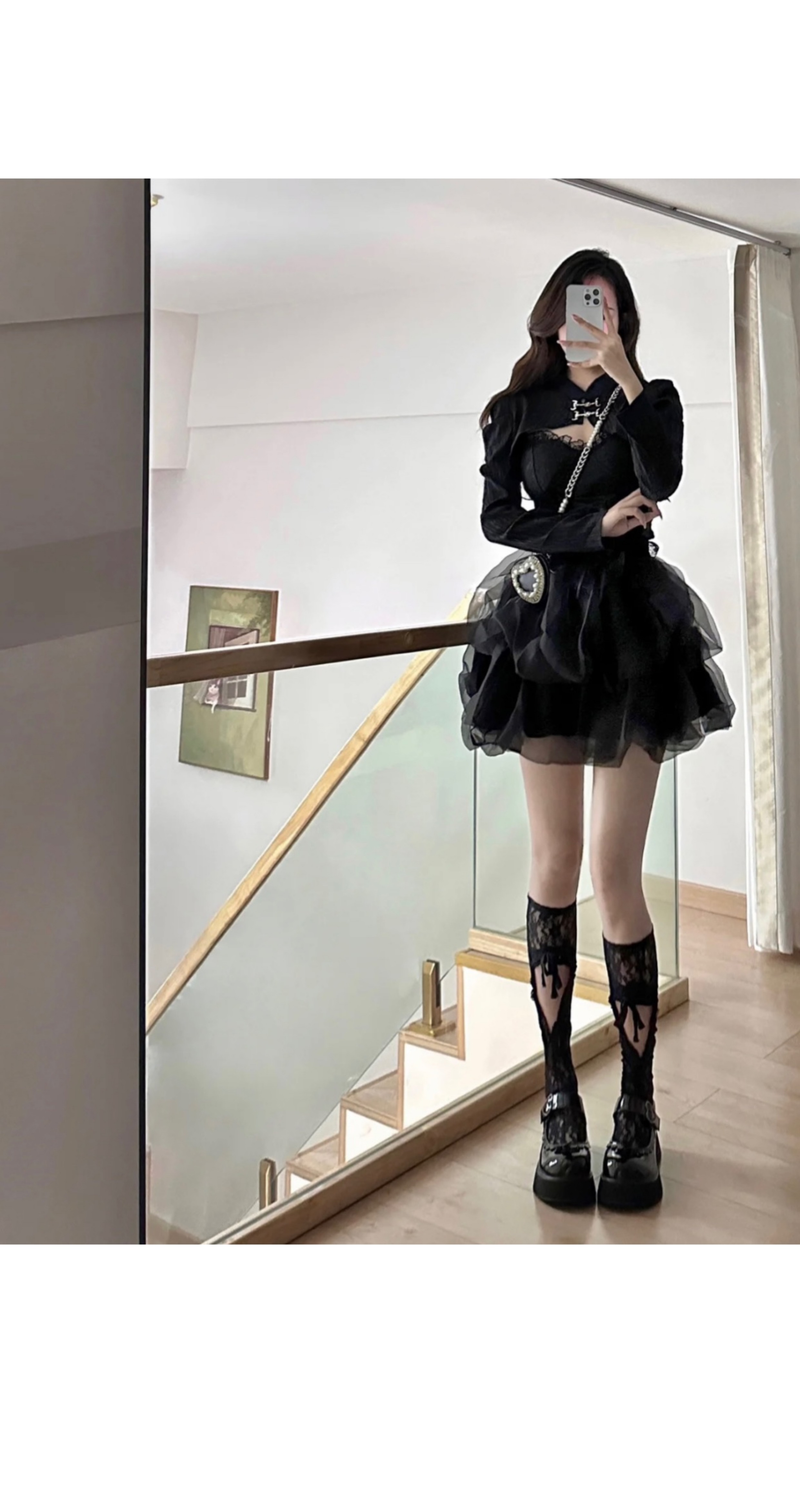 暗黑性感辣妹吊帶上衣帶胸墊收腰公主蓬蓬裙生日短裙萬聖節服裝