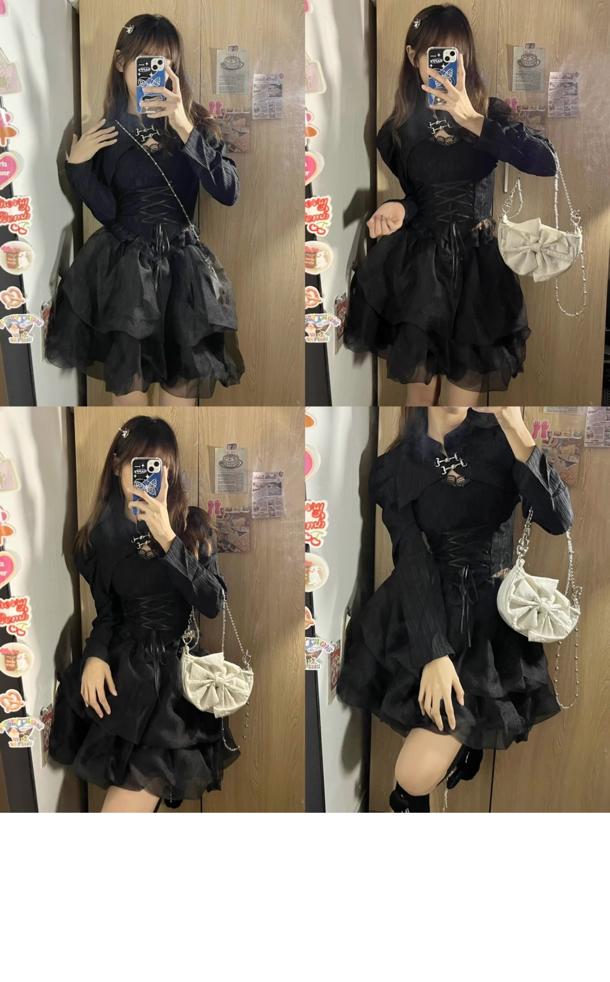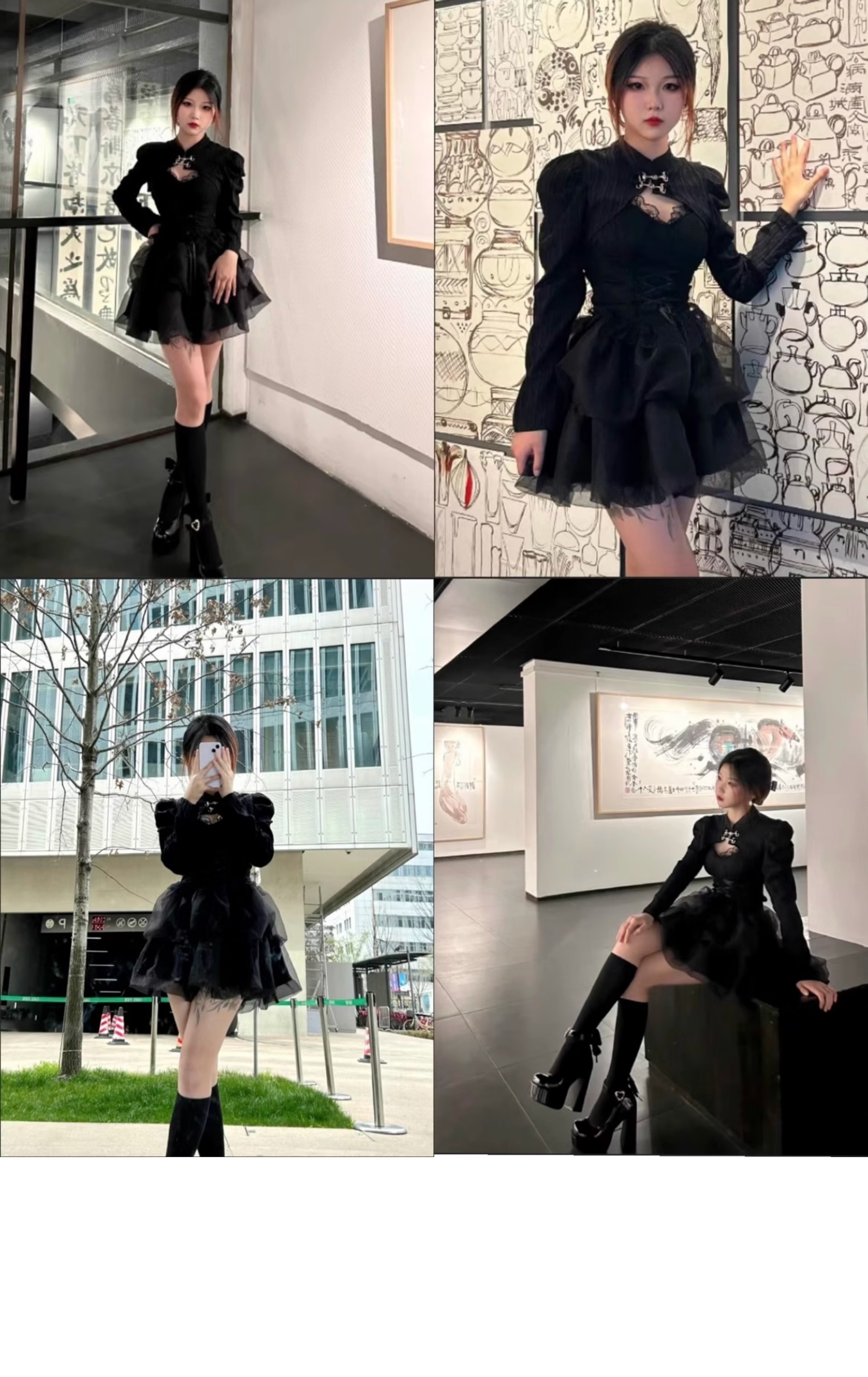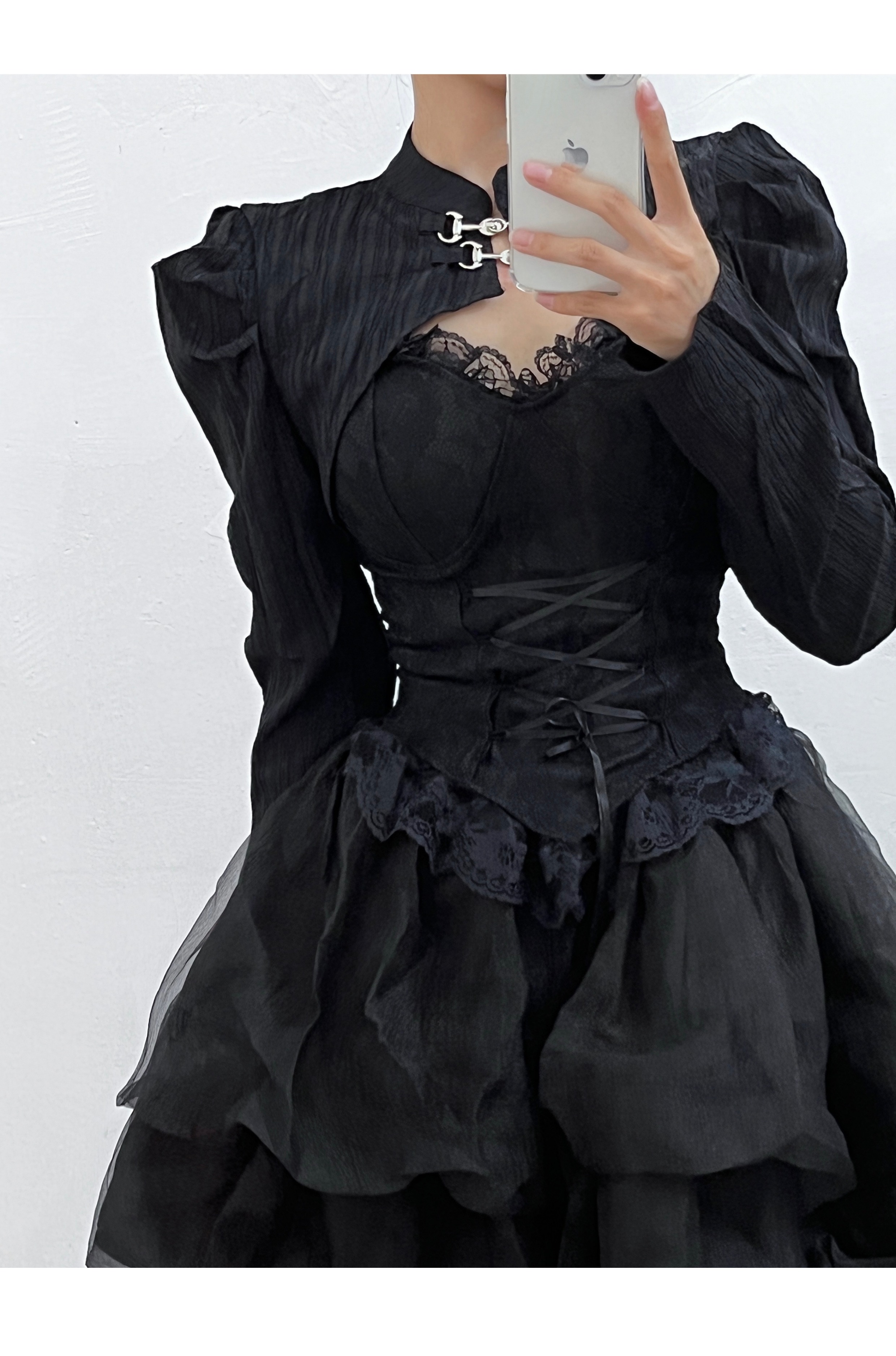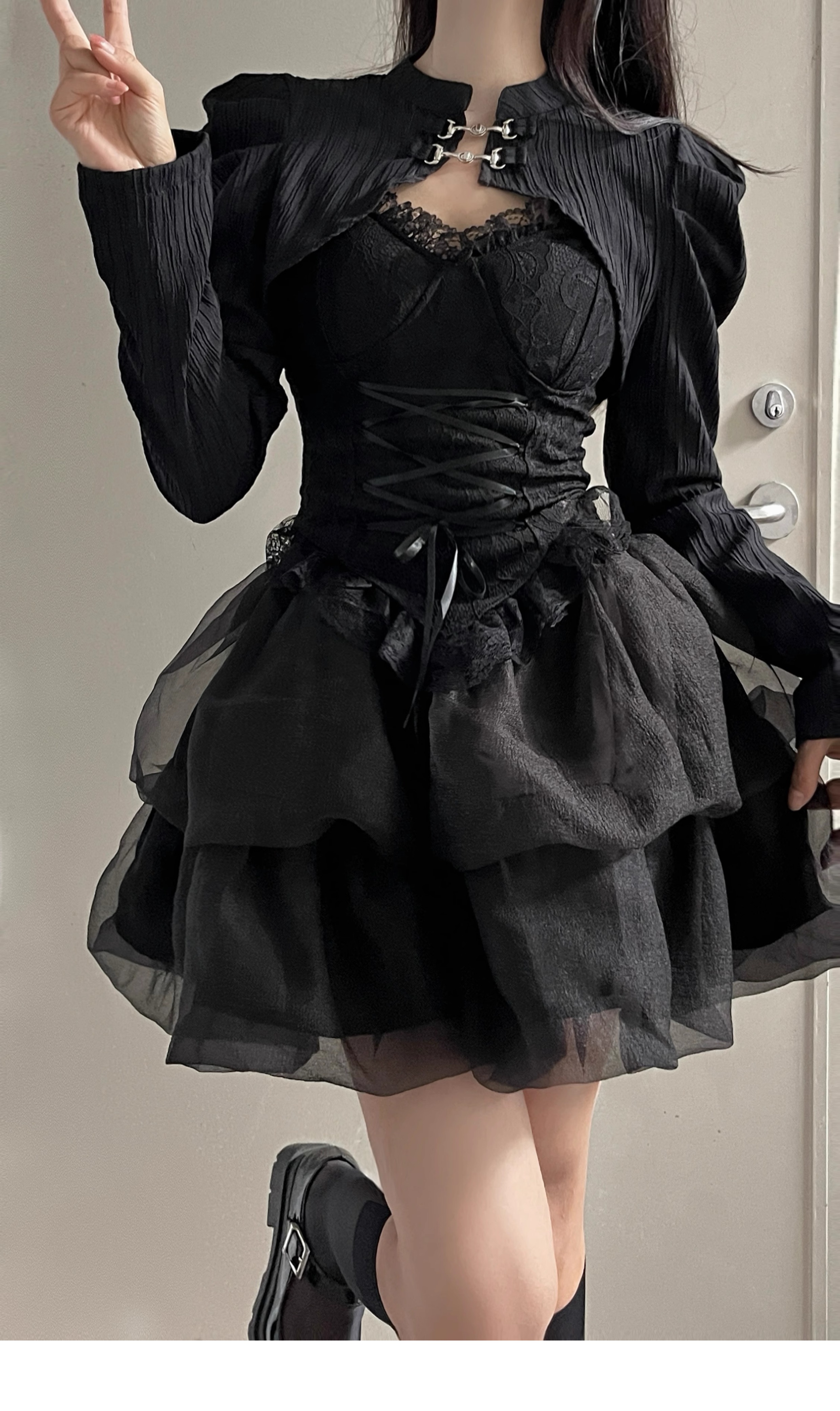 暗黑性感辣妹吊帶上衣帶胸墊收腰公主蓬蓬裙生日短裙萬聖節服裝
