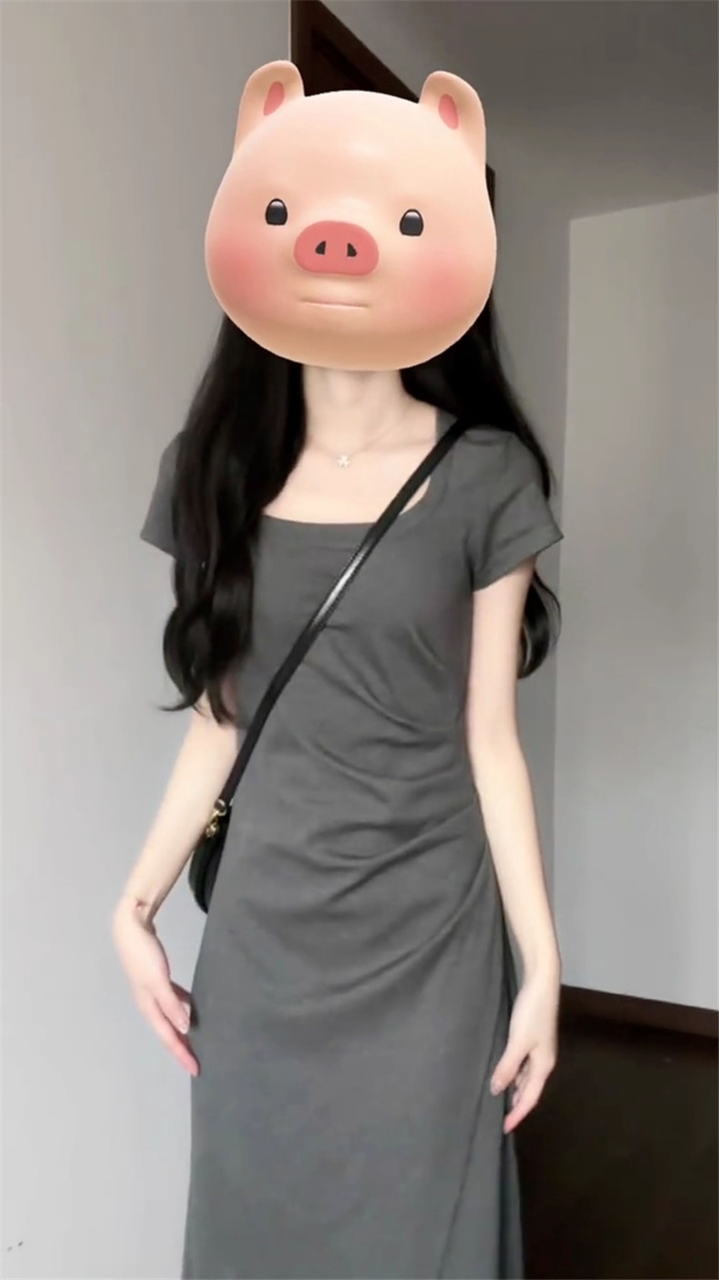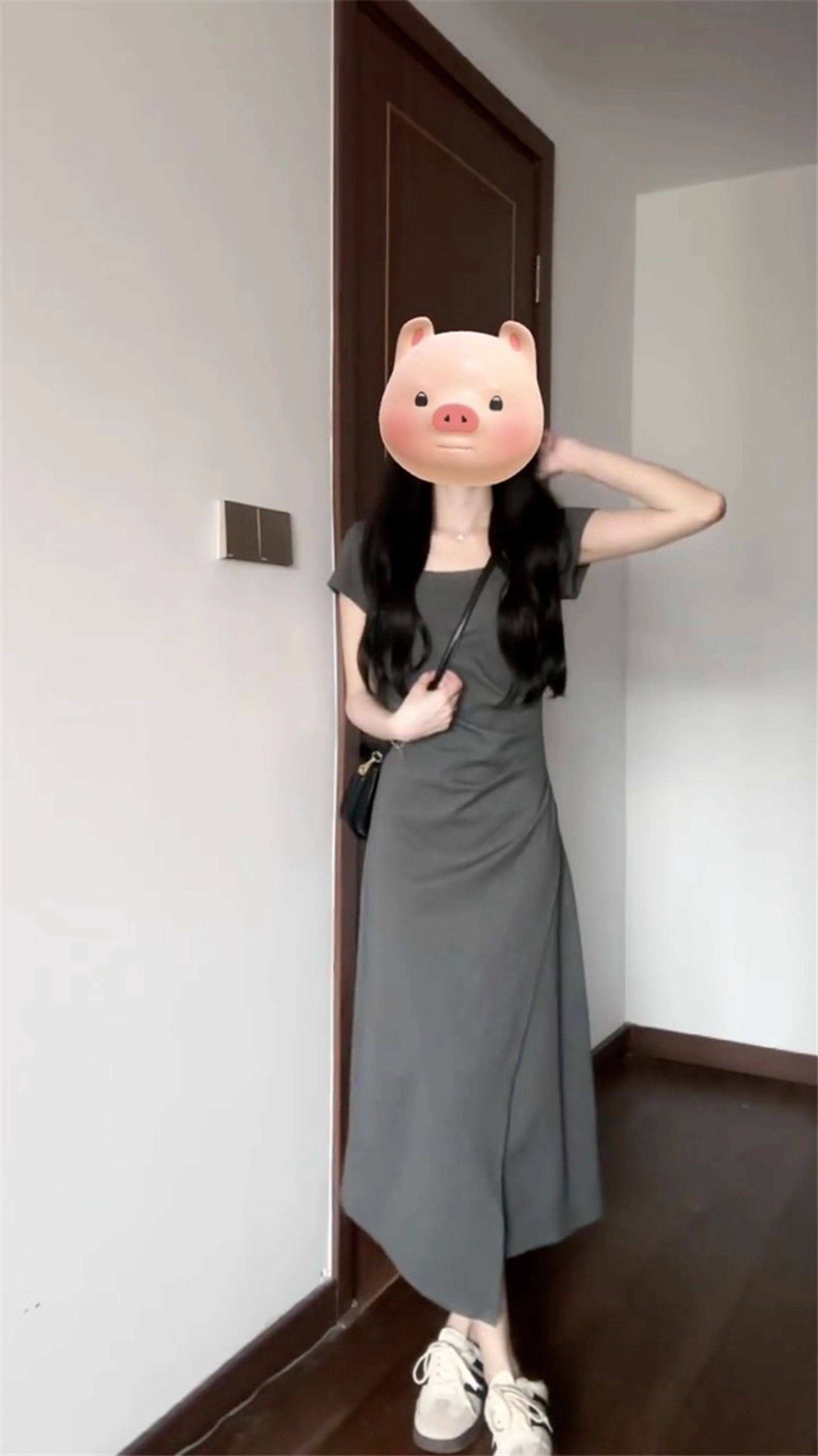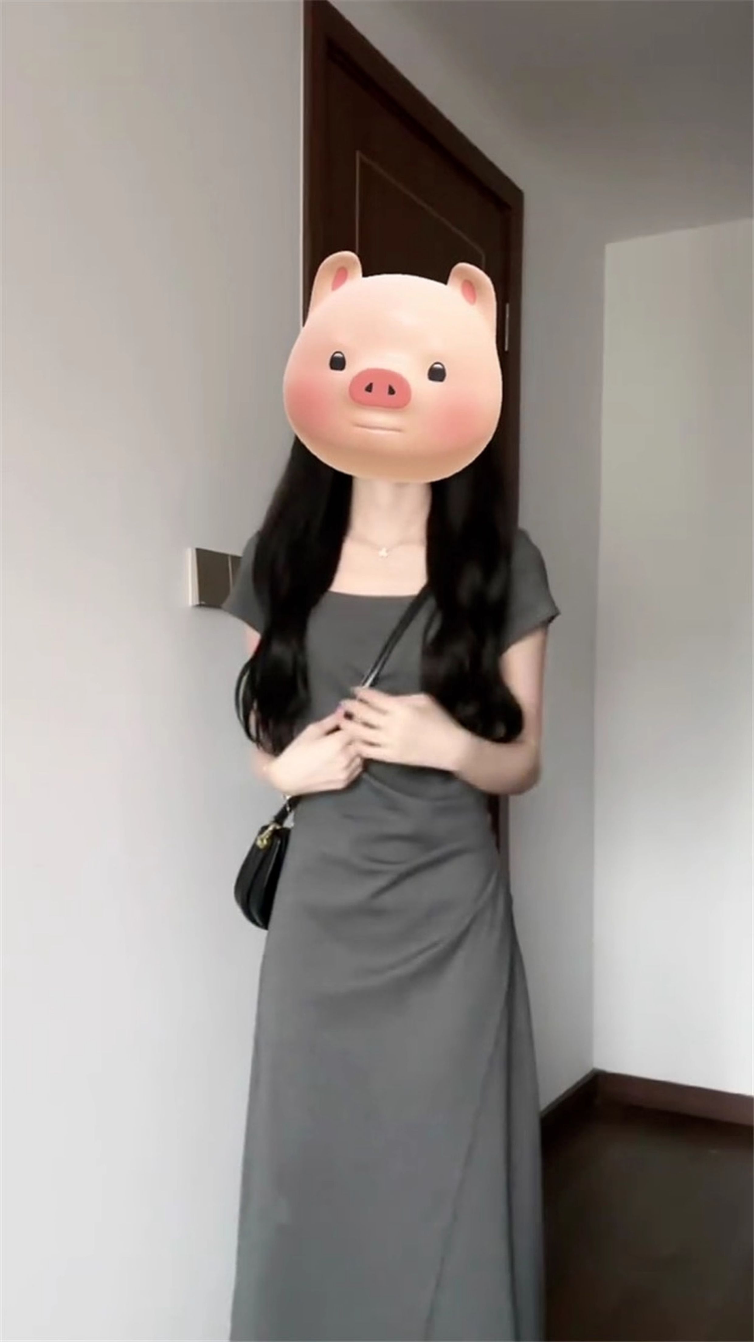 法式氣質灰色連衣裙子女裝夏2025新款高級感小個子秋冬季顯瘦長裙