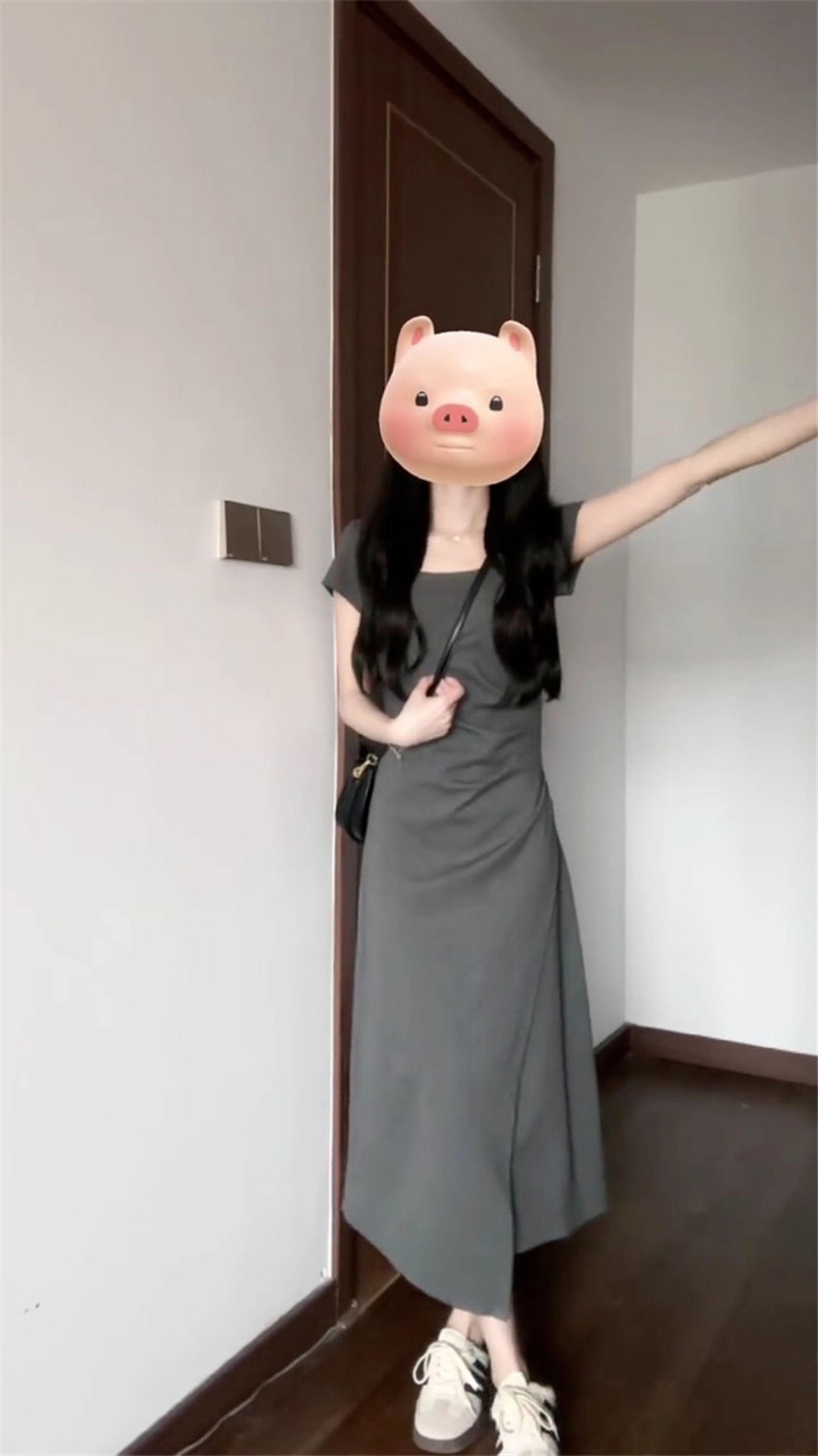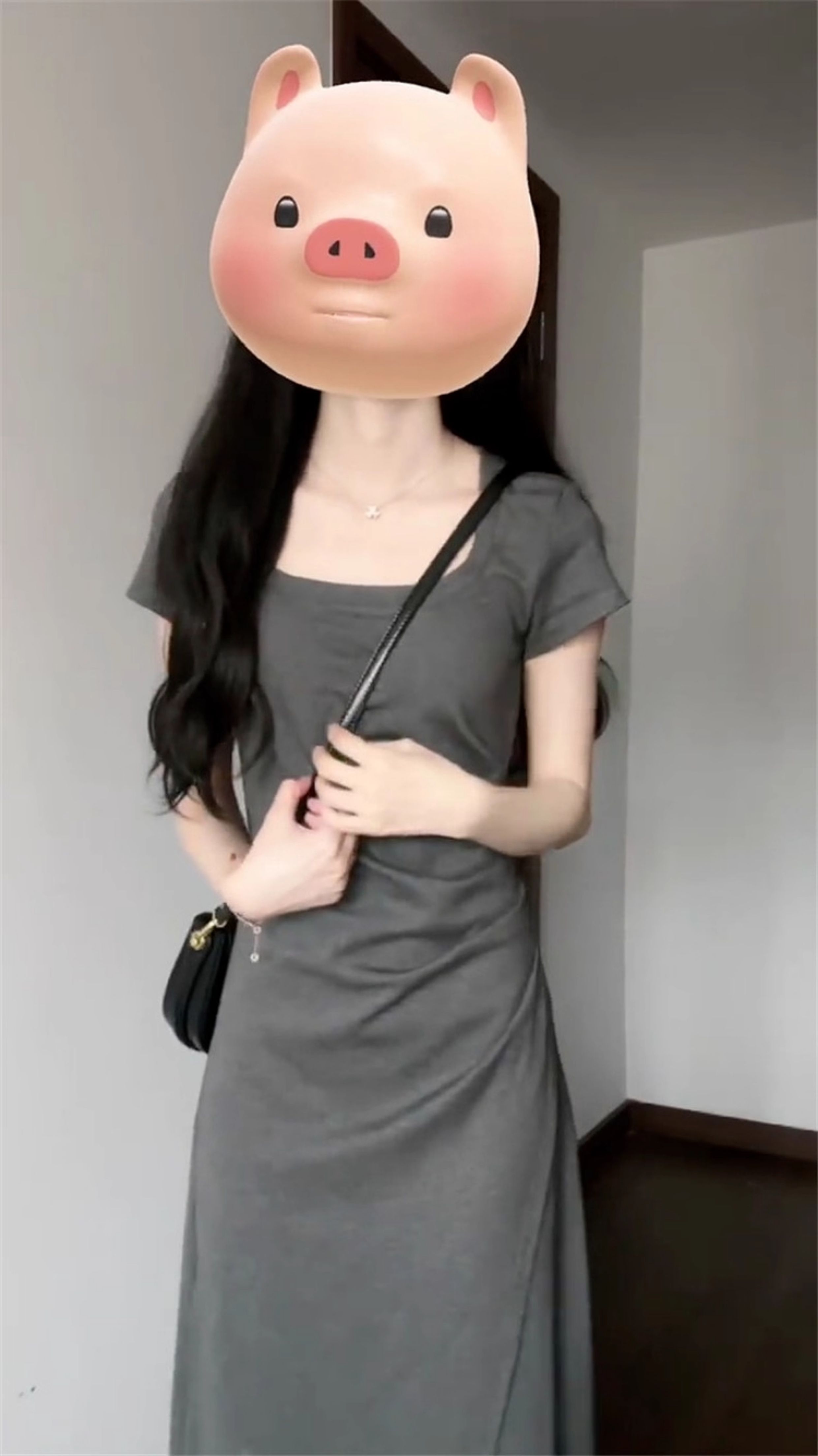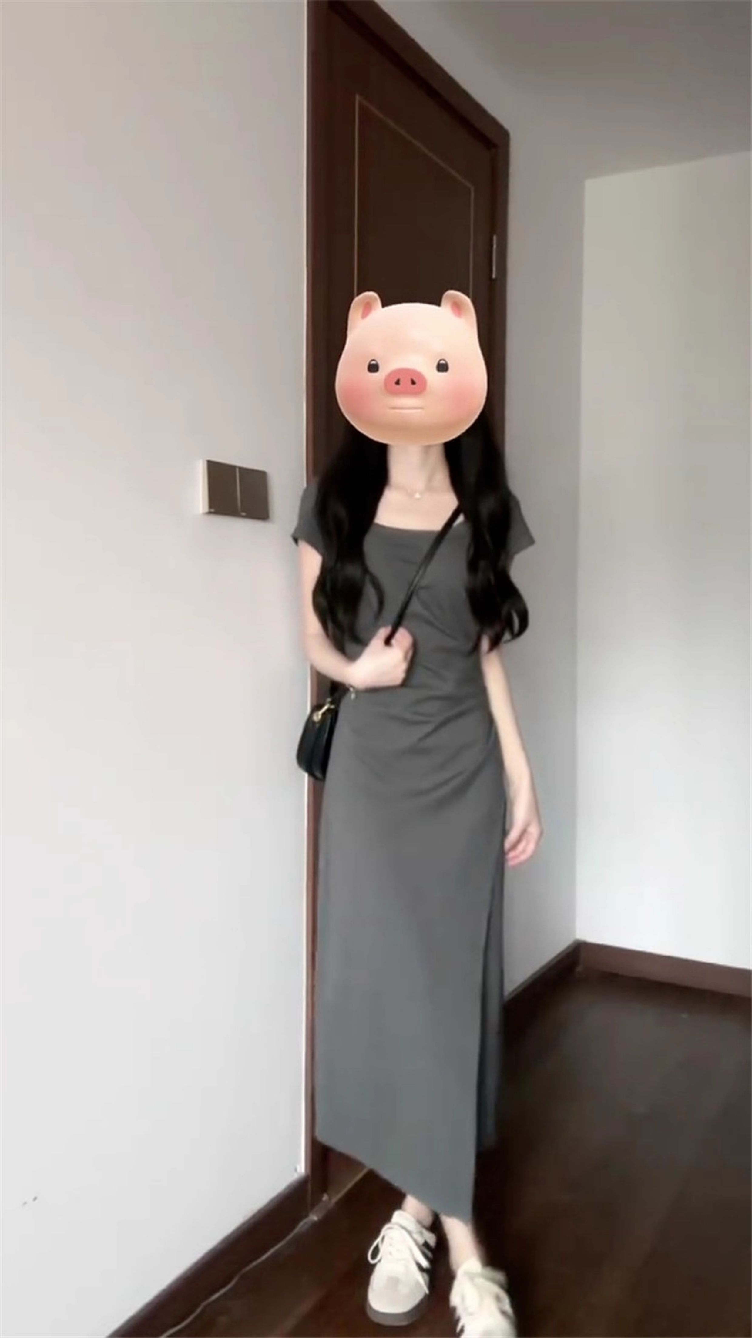 法式氣質灰色連衣裙子女裝夏2025新款高級感小個子秋冬季顯瘦長裙
