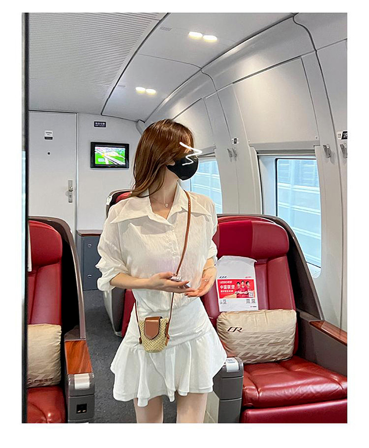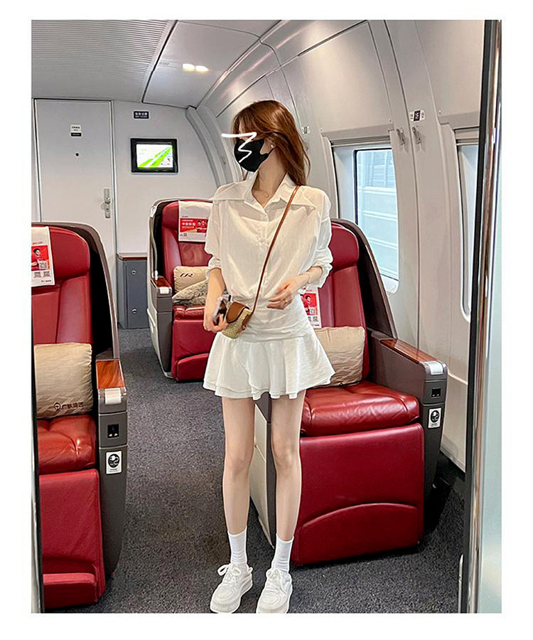 白色假兩件長袖襯衫連衣裙子女裝2026新款早春小個子法式氣質短裙