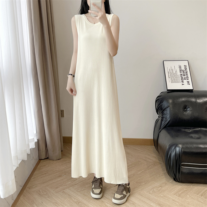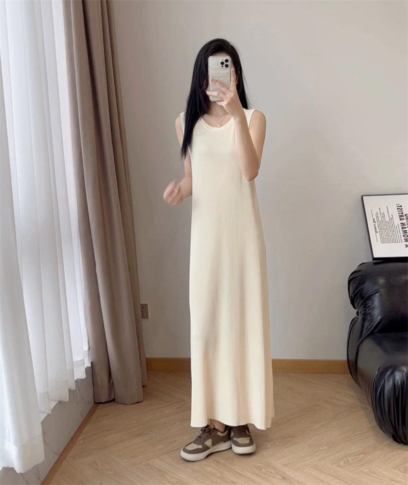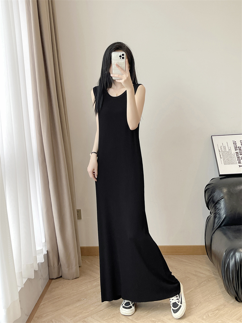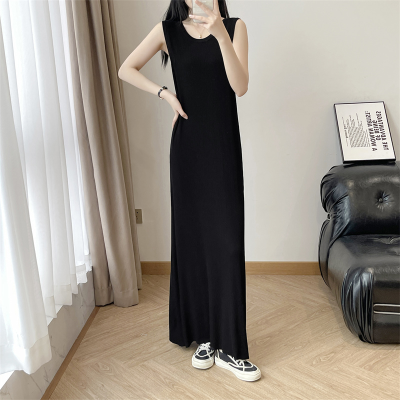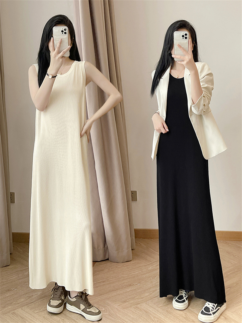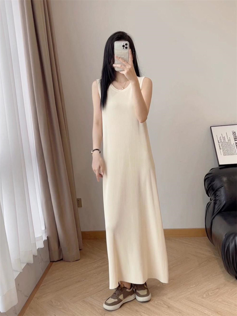 冰絲無袖背心裙女夏季新款寬松顯瘦超長款及踝內搭吊帶針織連衣裙