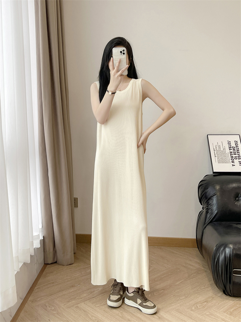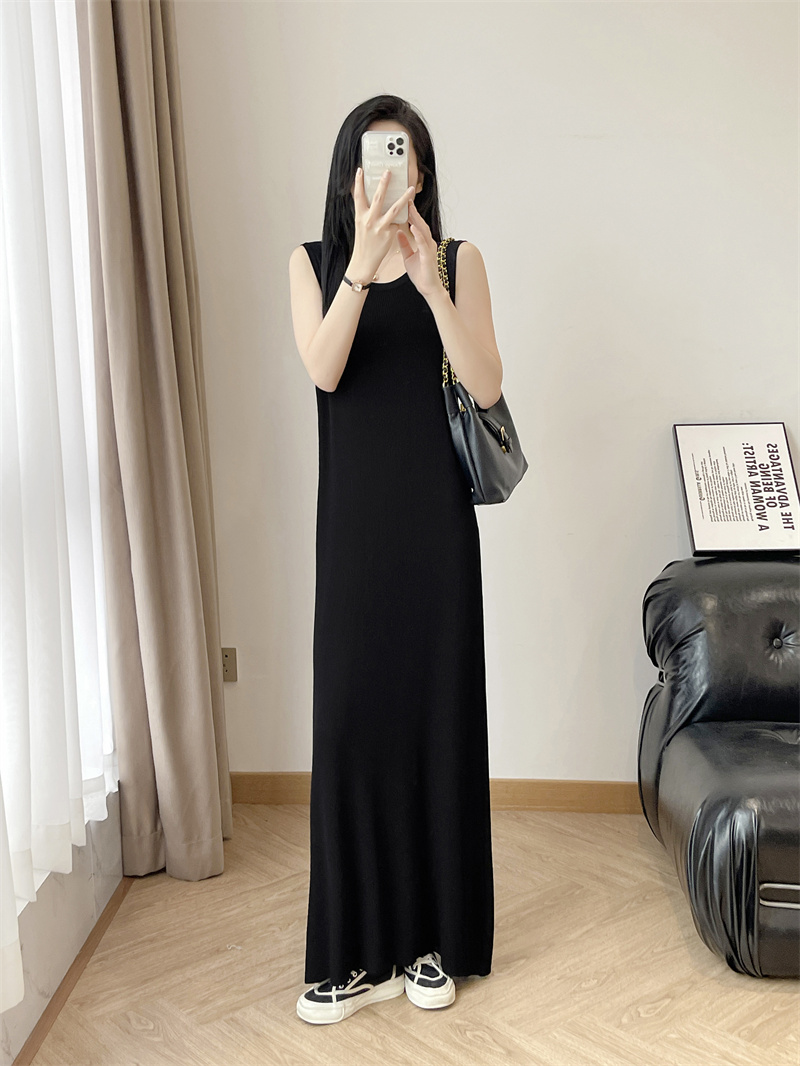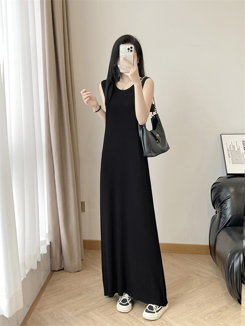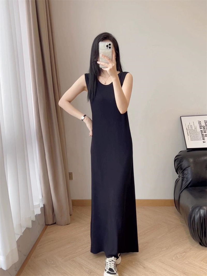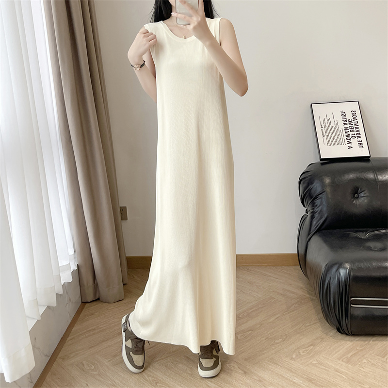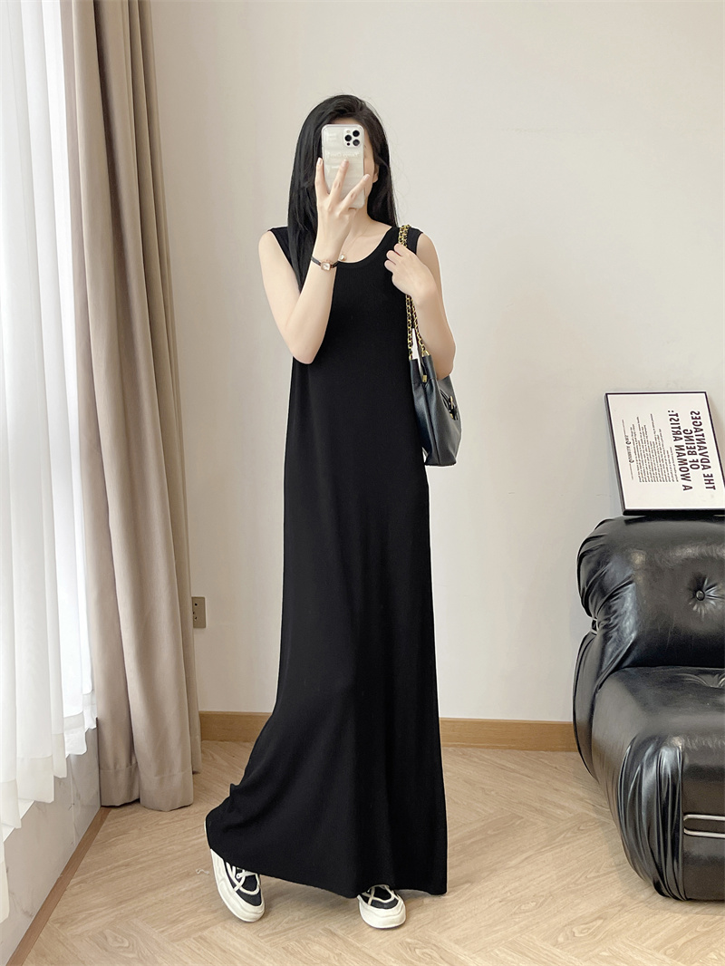 冰絲無袖背心裙女夏季新款寬松顯瘦超長款及踝內搭吊帶針織連衣裙