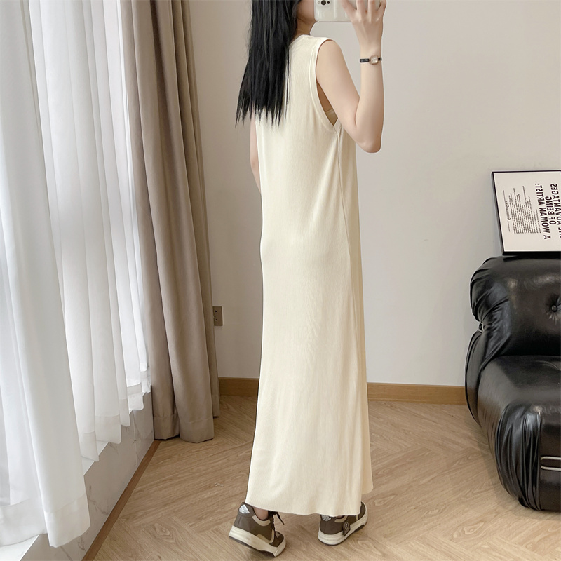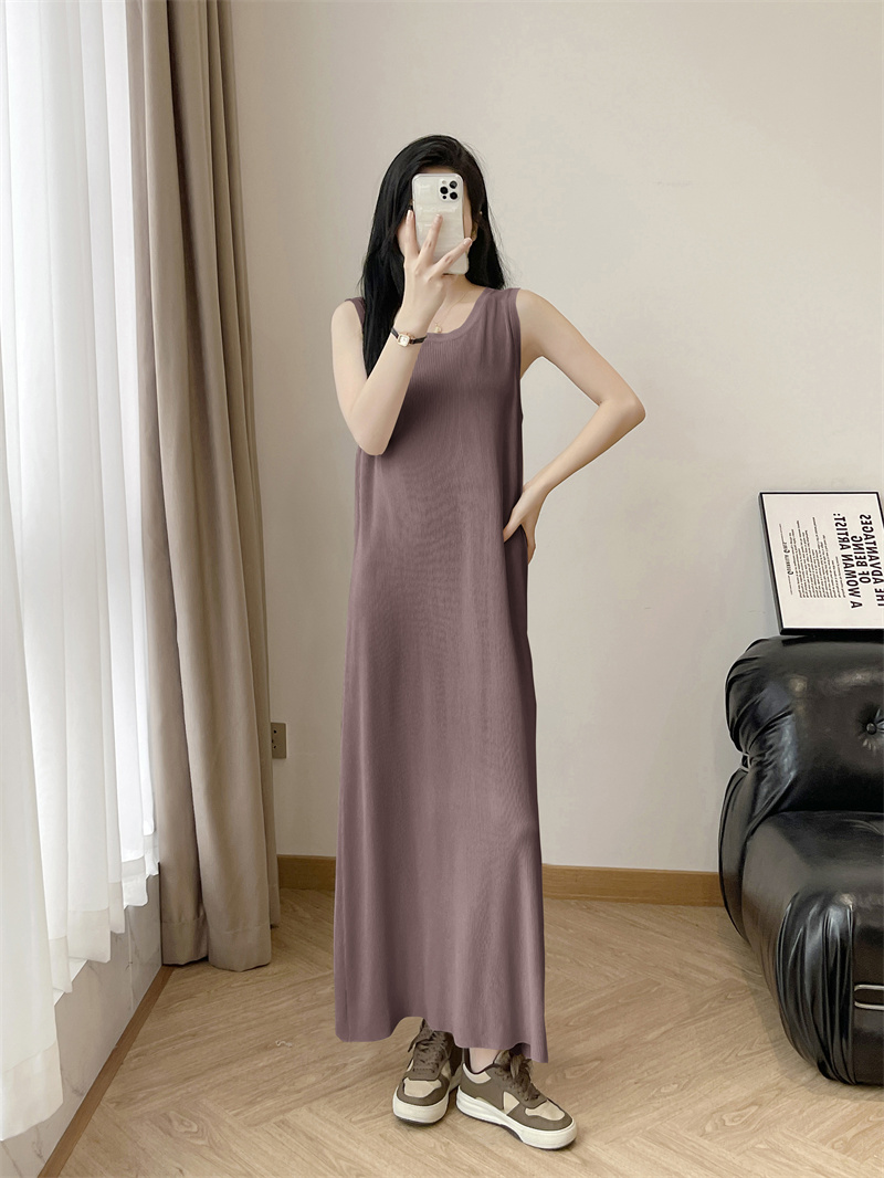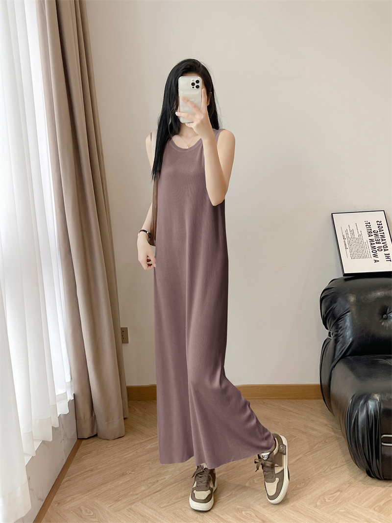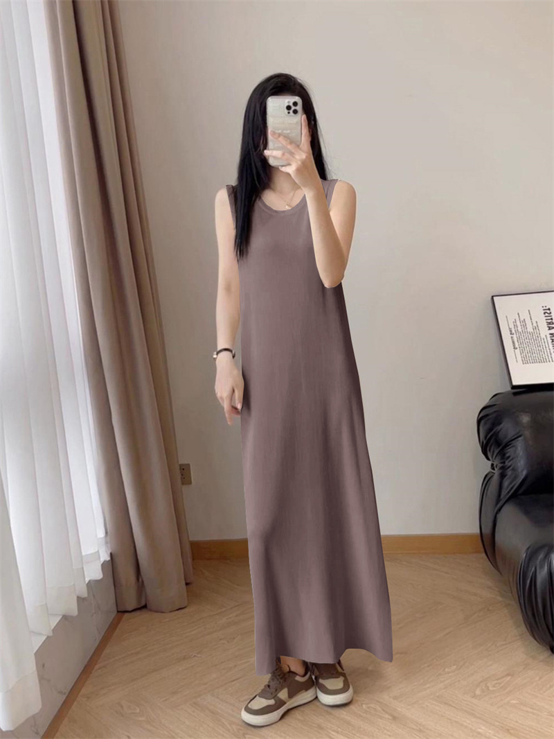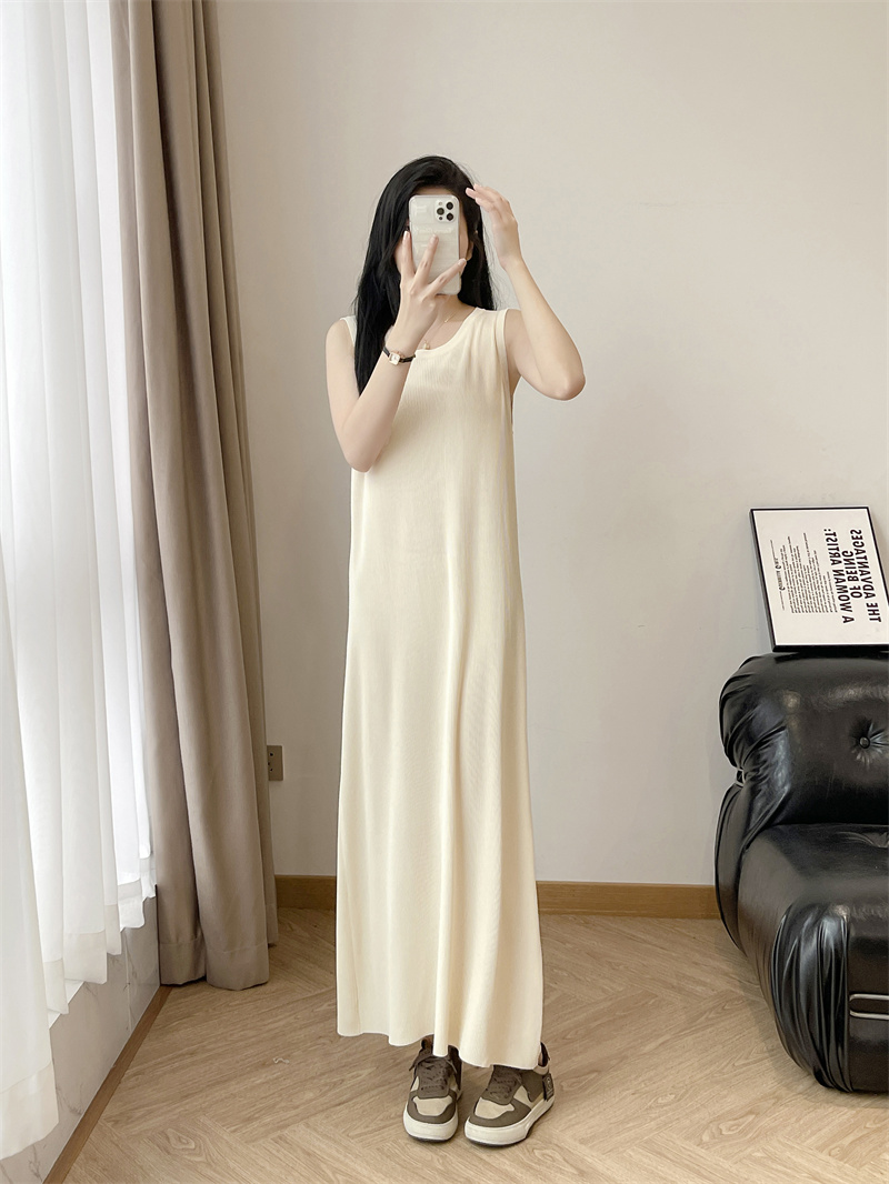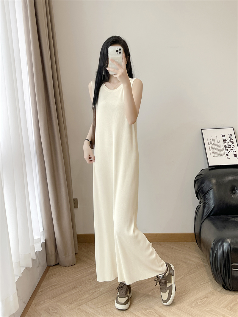 冰絲無袖背心裙女夏季新款寬松顯瘦超長款及踝內搭吊帶針織連衣裙