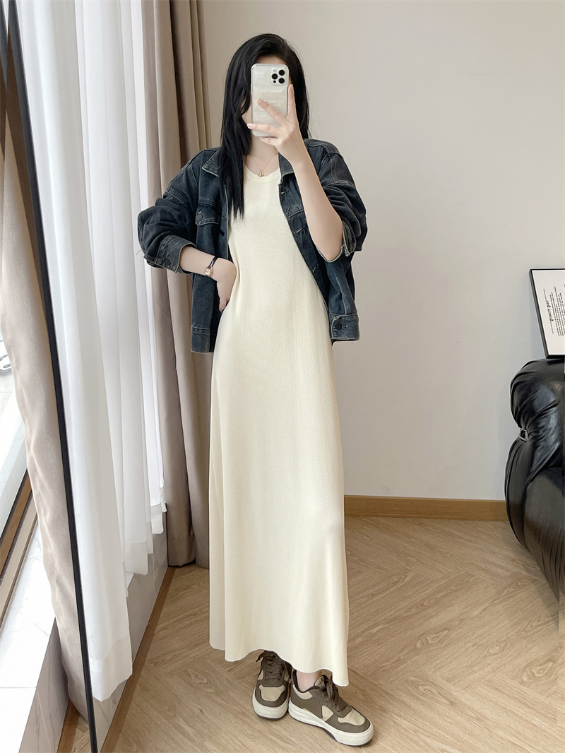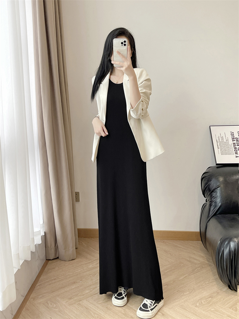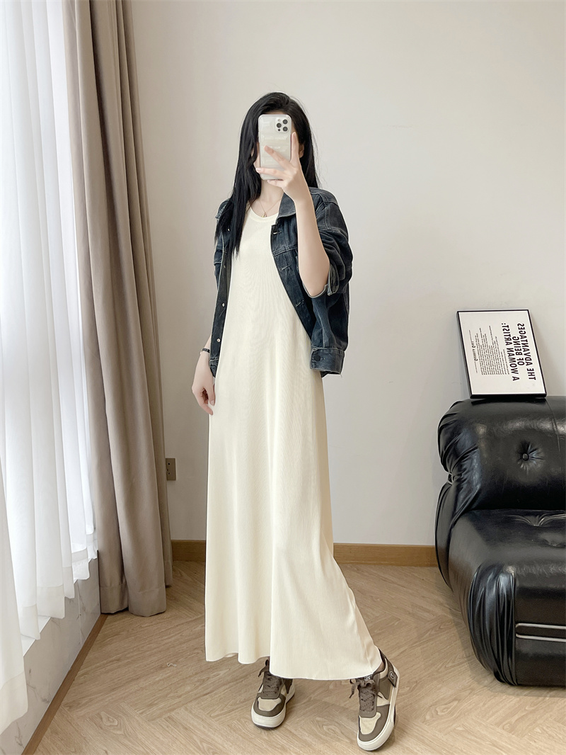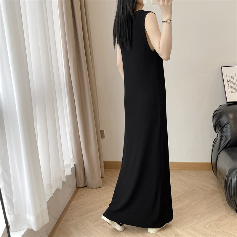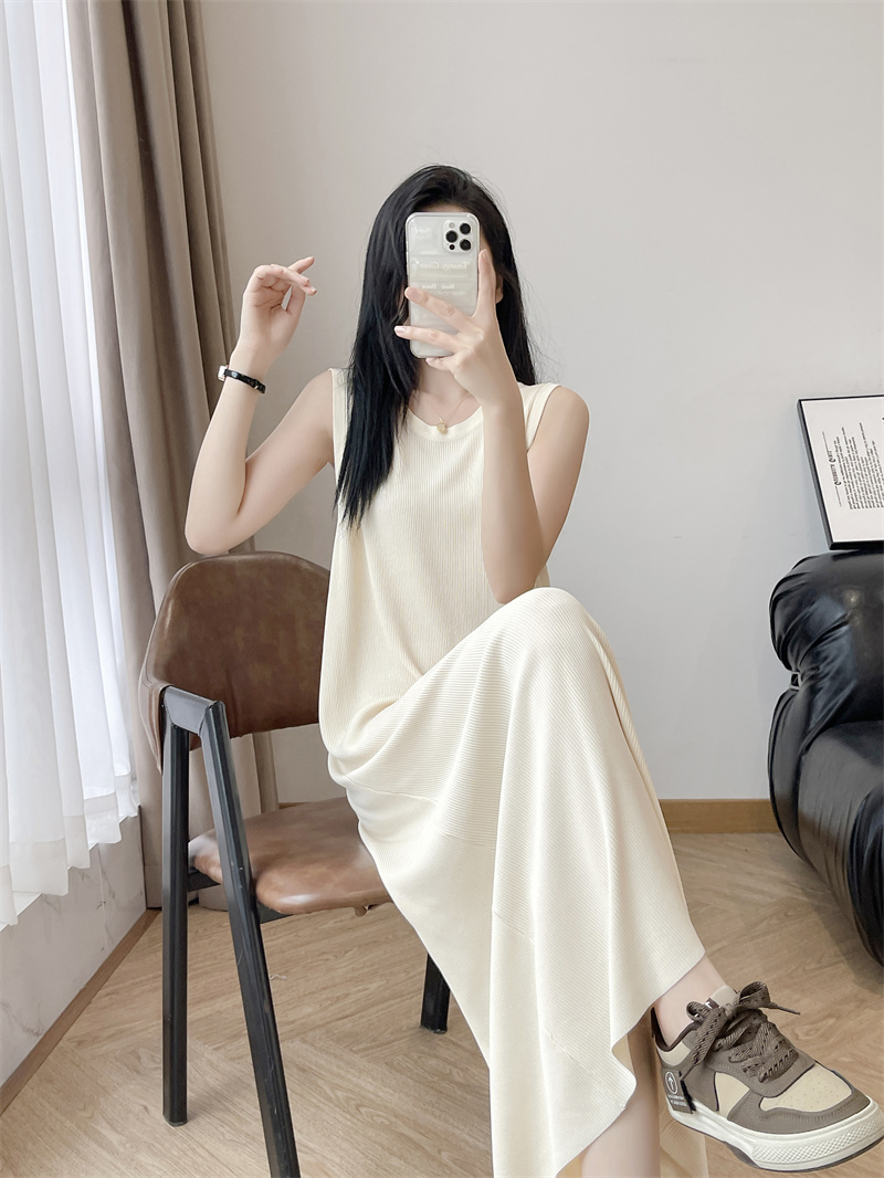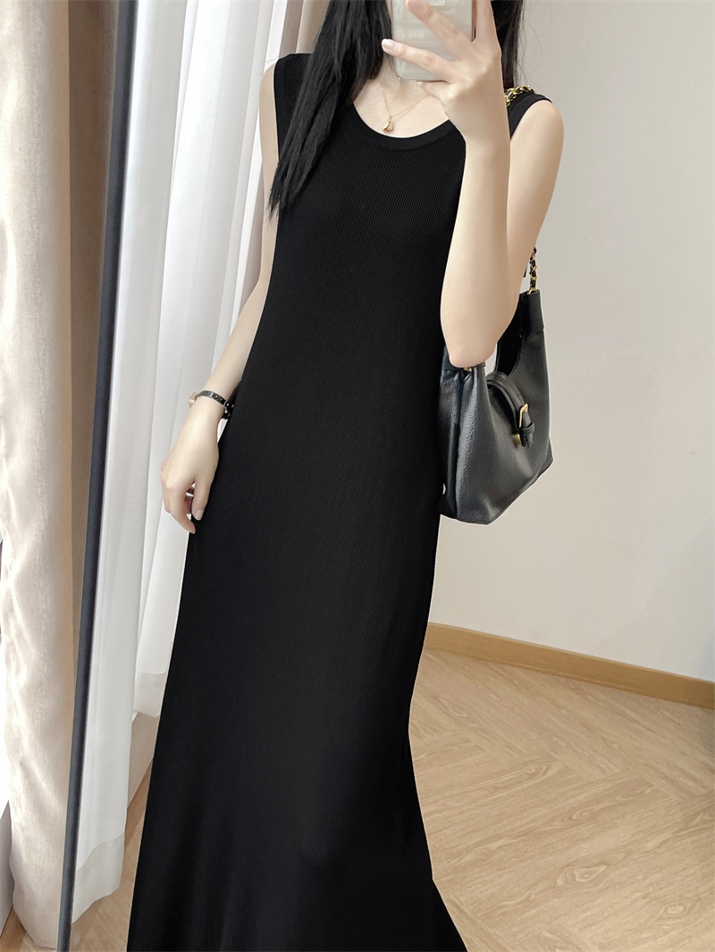 冰絲無袖背心裙女夏季新款寬松顯瘦超長款及踝內搭吊帶針織連衣裙