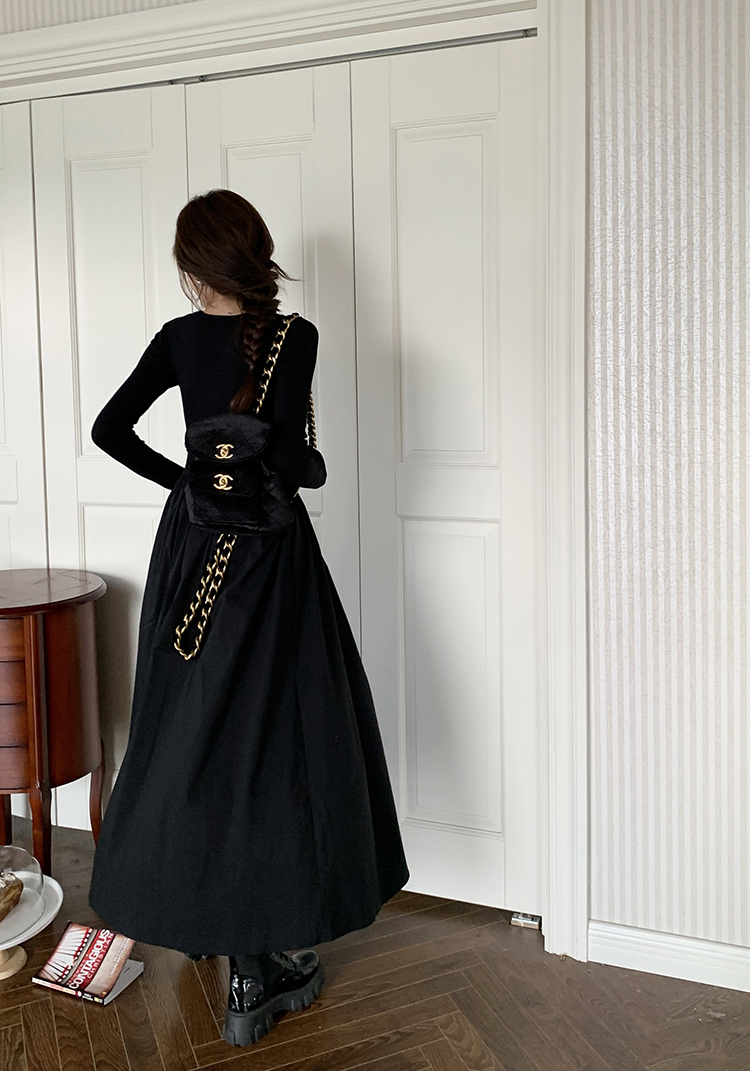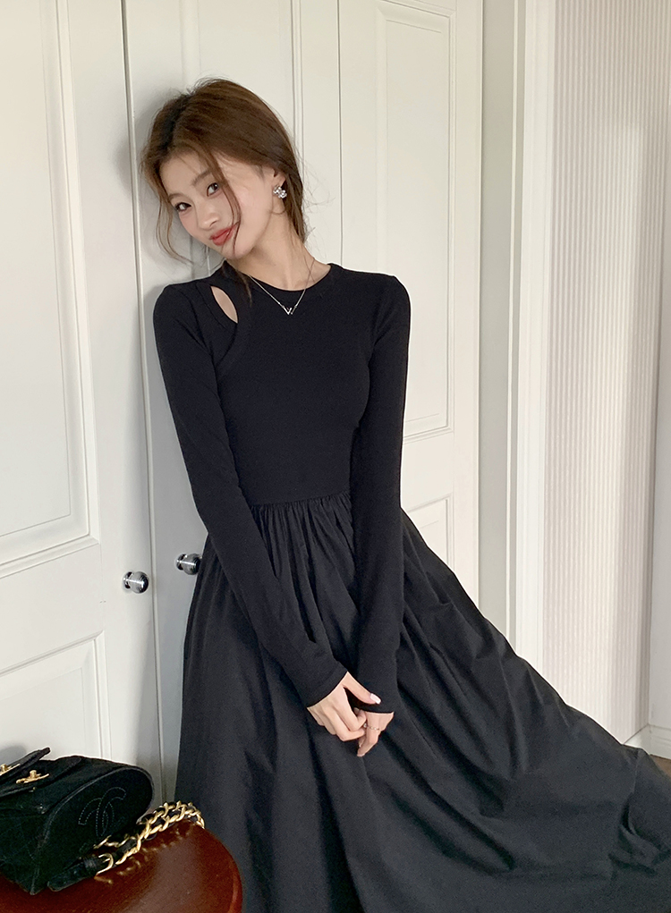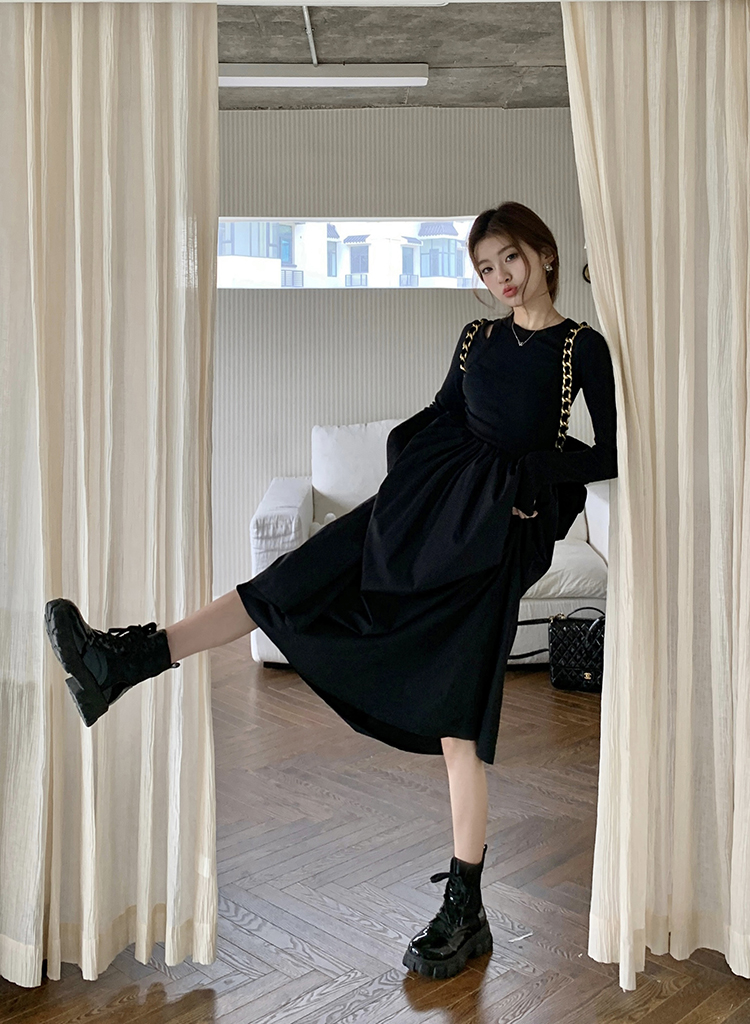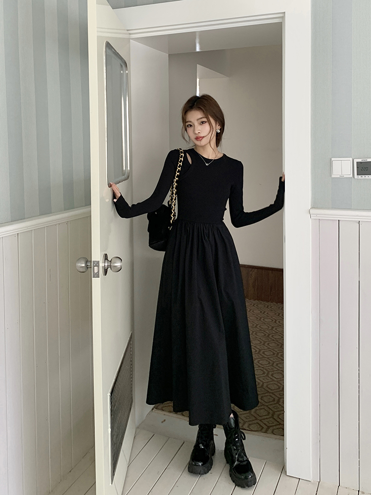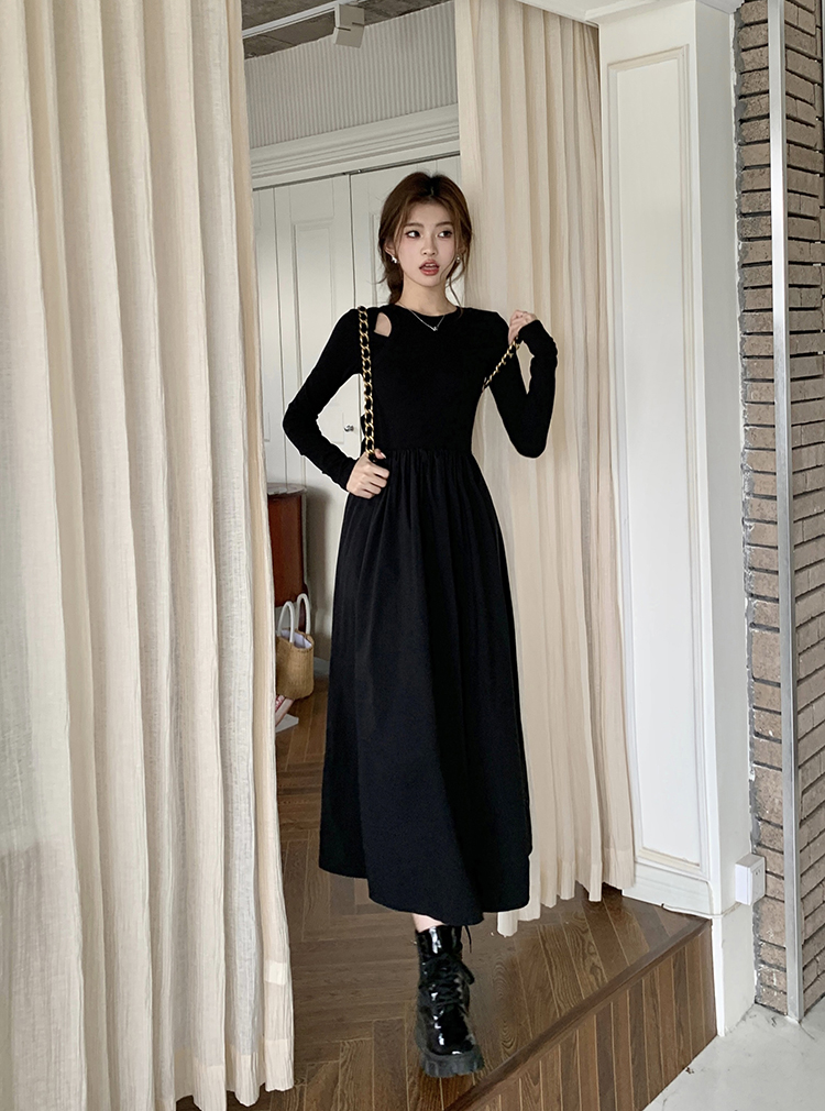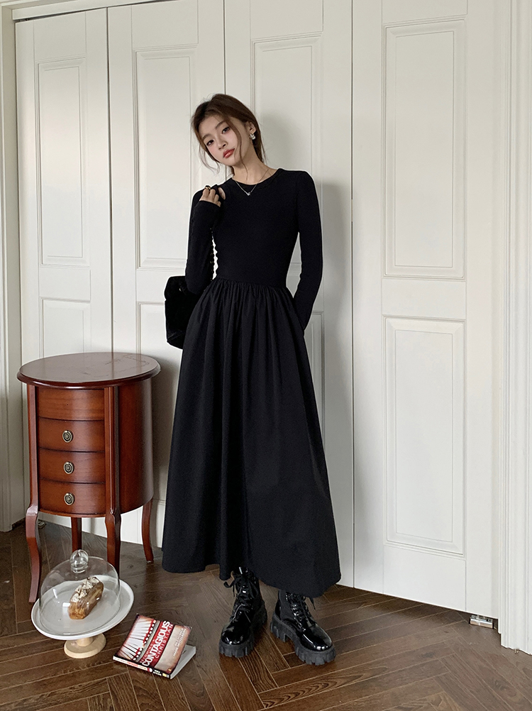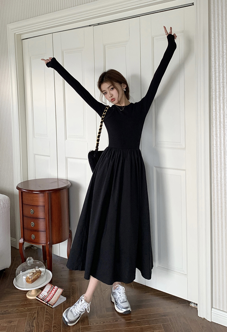 145小矮個子長袖連衣裙女秋150顯高穿搭收腰法式赫本風打底長裙xs