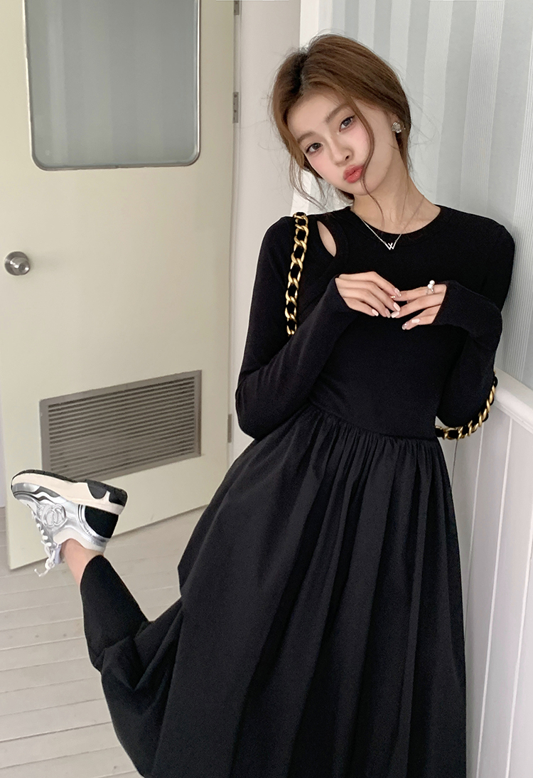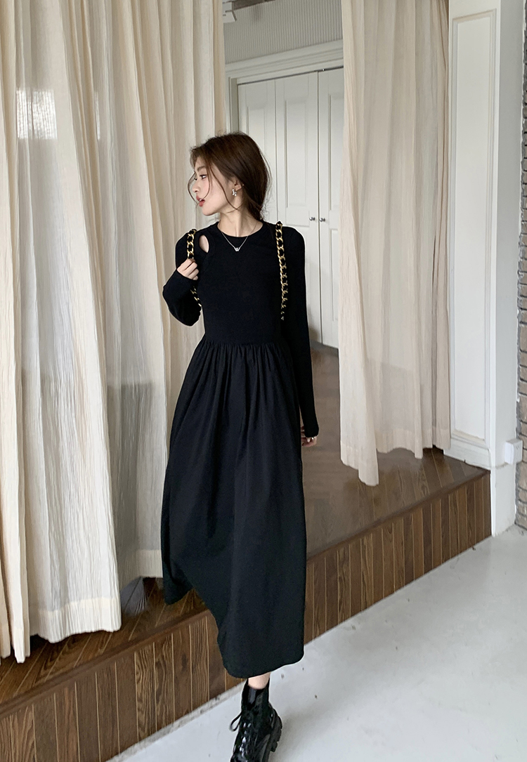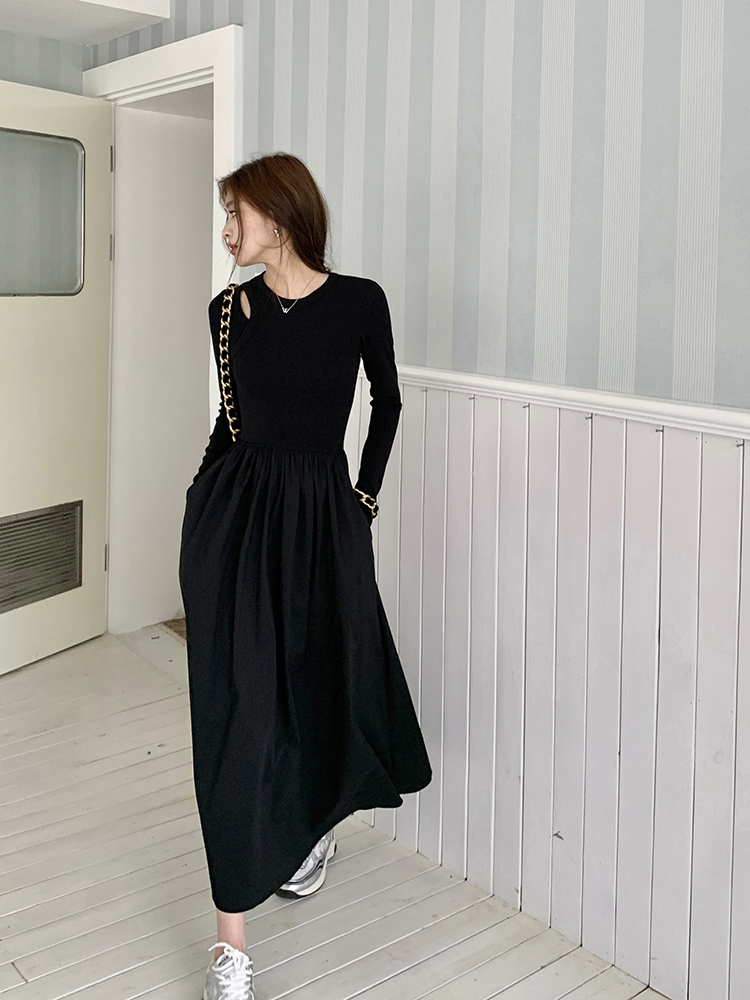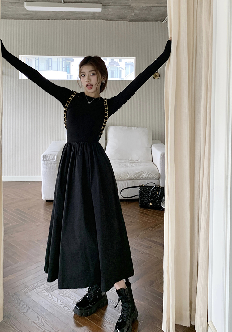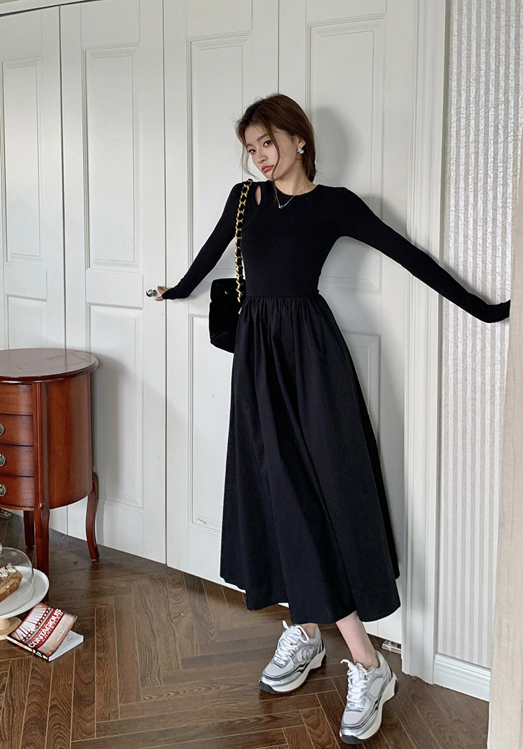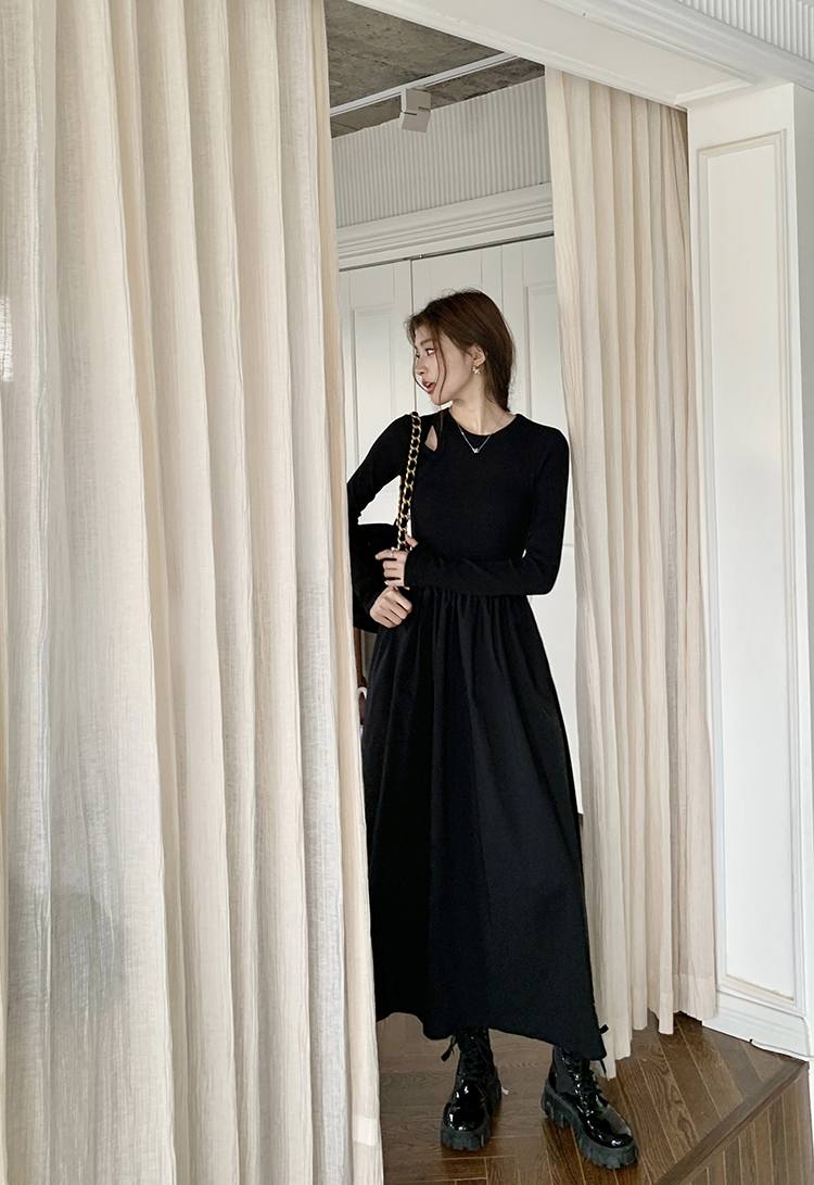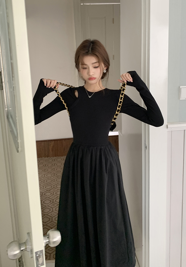145小矮個子長袖連衣裙女秋150顯高穿搭收腰法式赫本風打底長裙xs