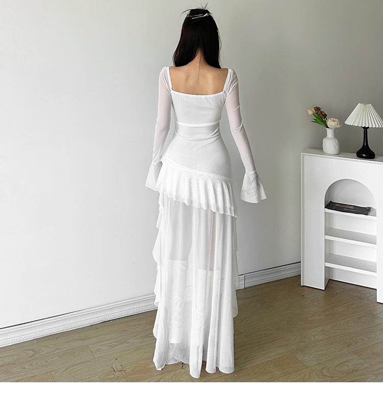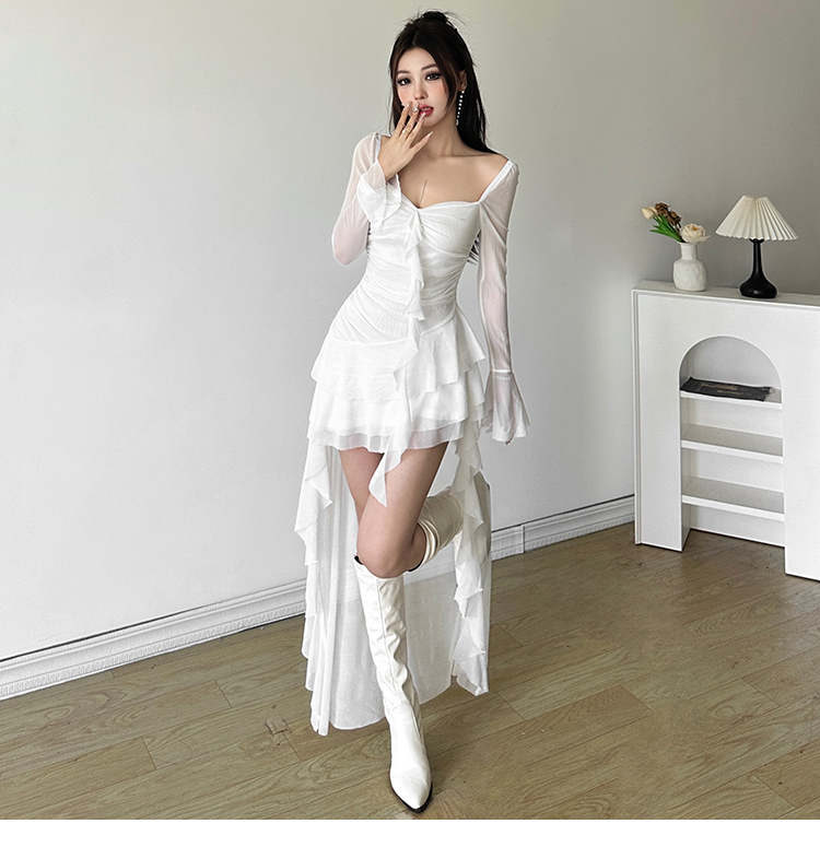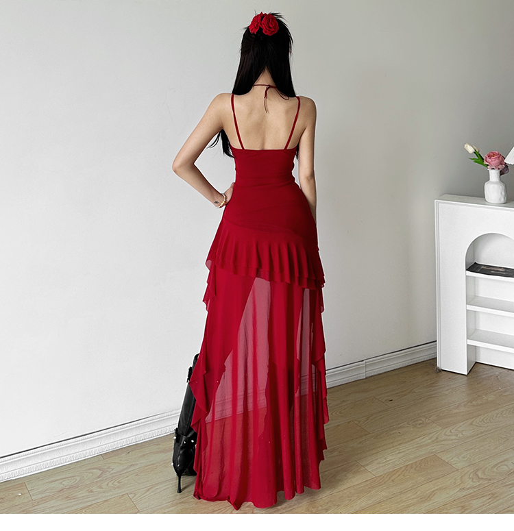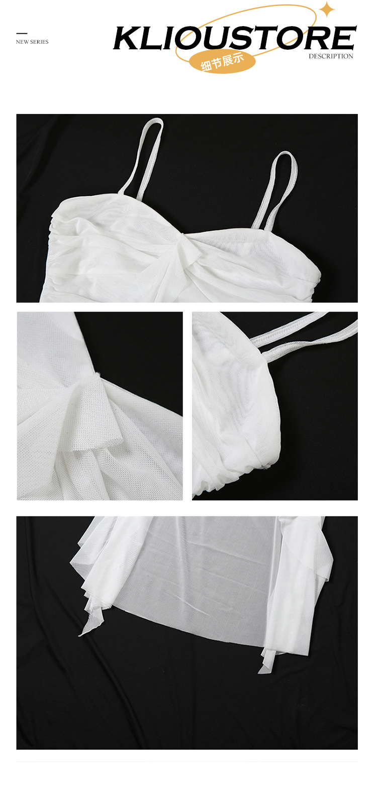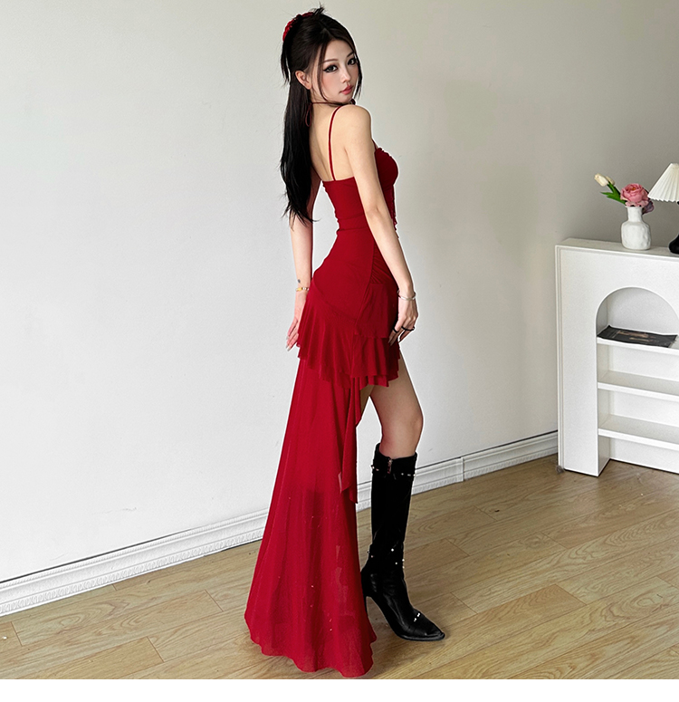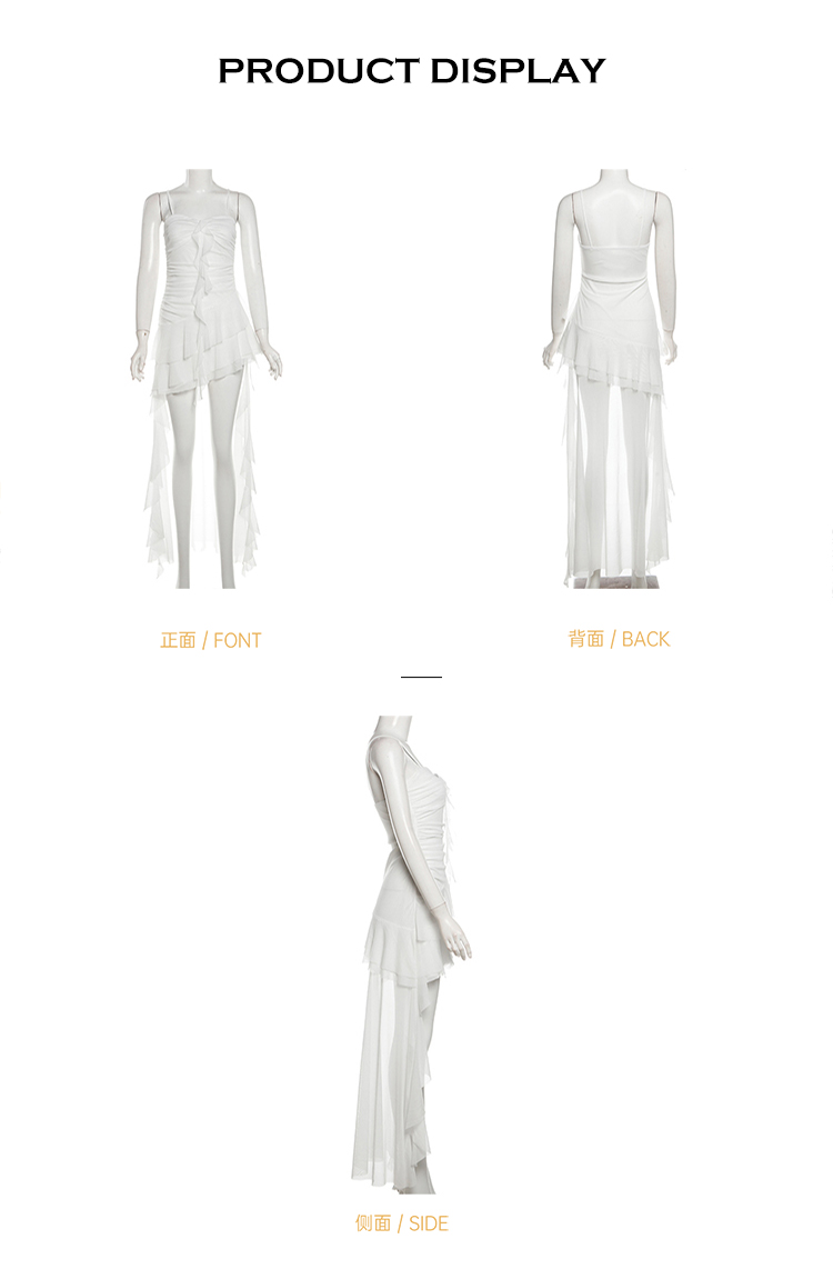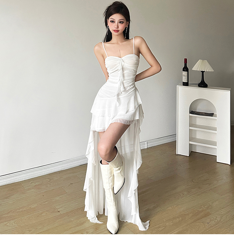 KLIOU 法式超仙純欲荷葉邊拼接吊帶連衣裙女小衆修身顯瘦不規則裙