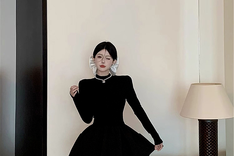 miu裡miu氣穿搭初秋季小香風黑色連衣裙高級感釣系約會公主裙套裝