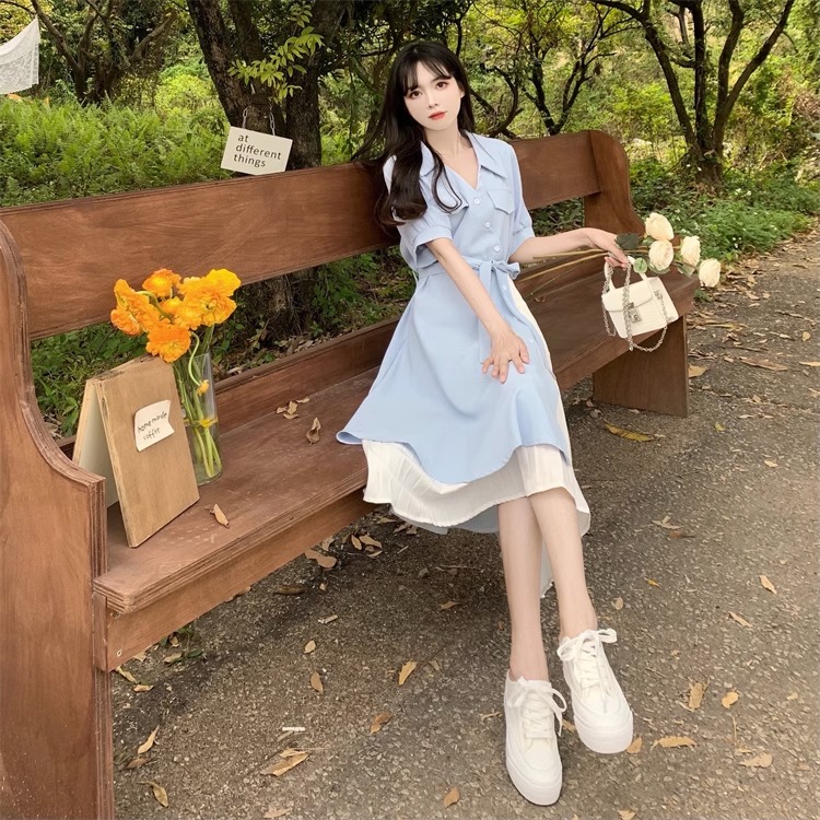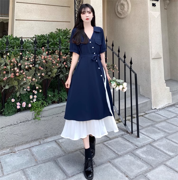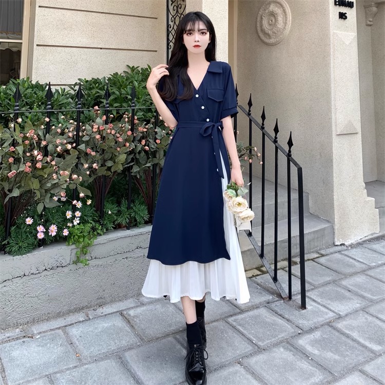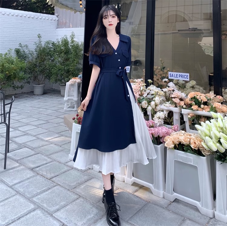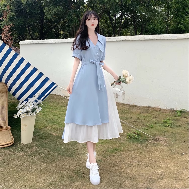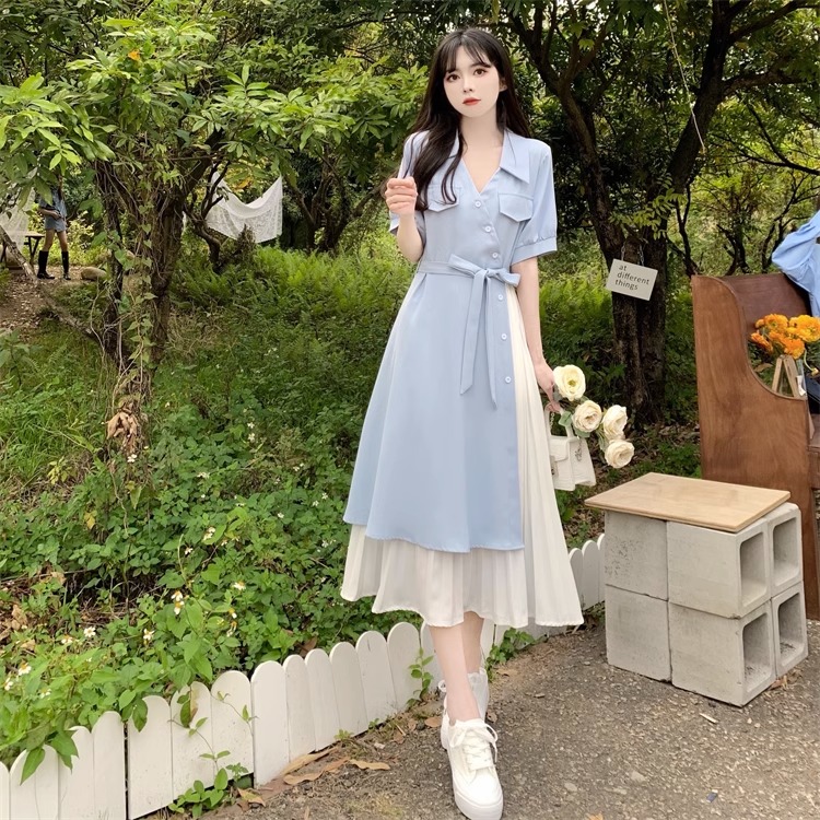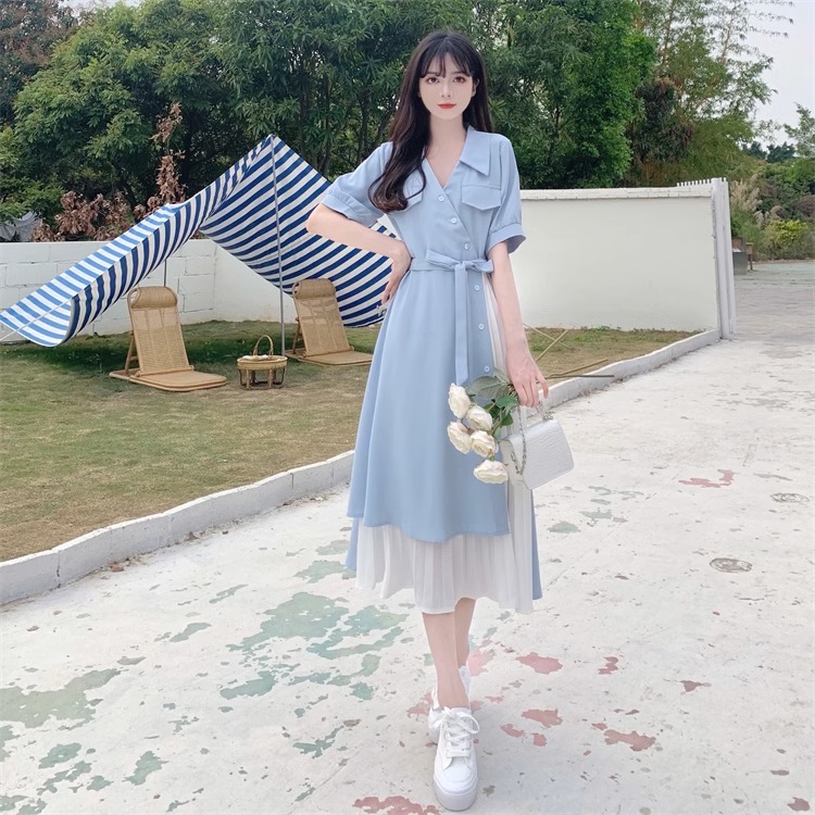 法式小衆設計感雪紡連衣裙女夏大碼胖MM不規則氣質赫本風a字長裙