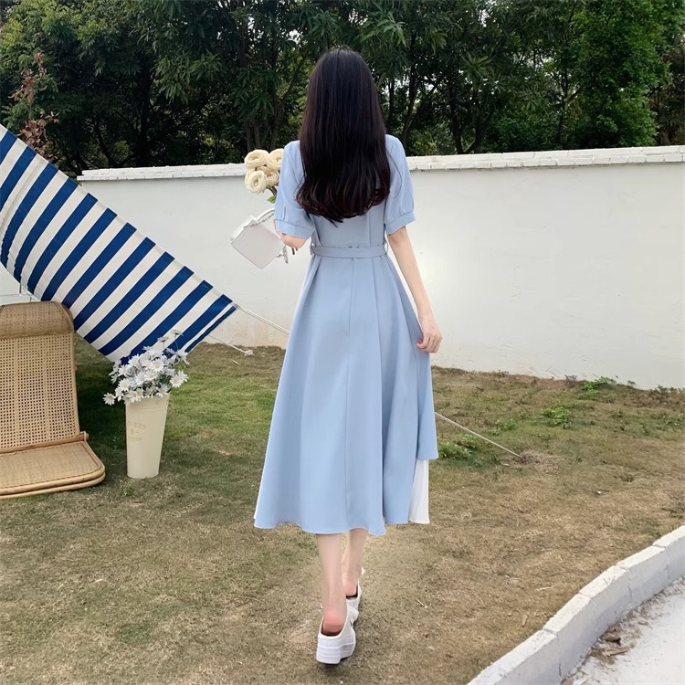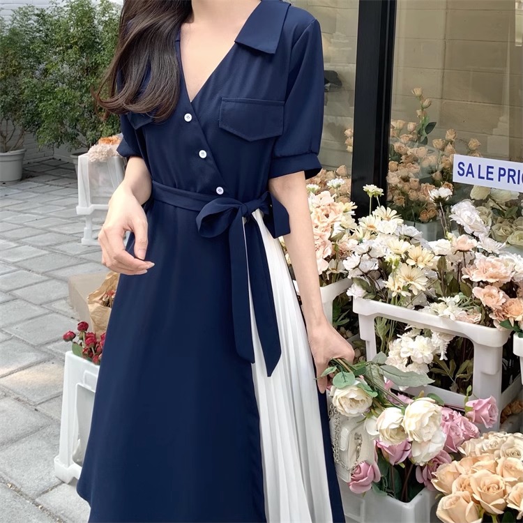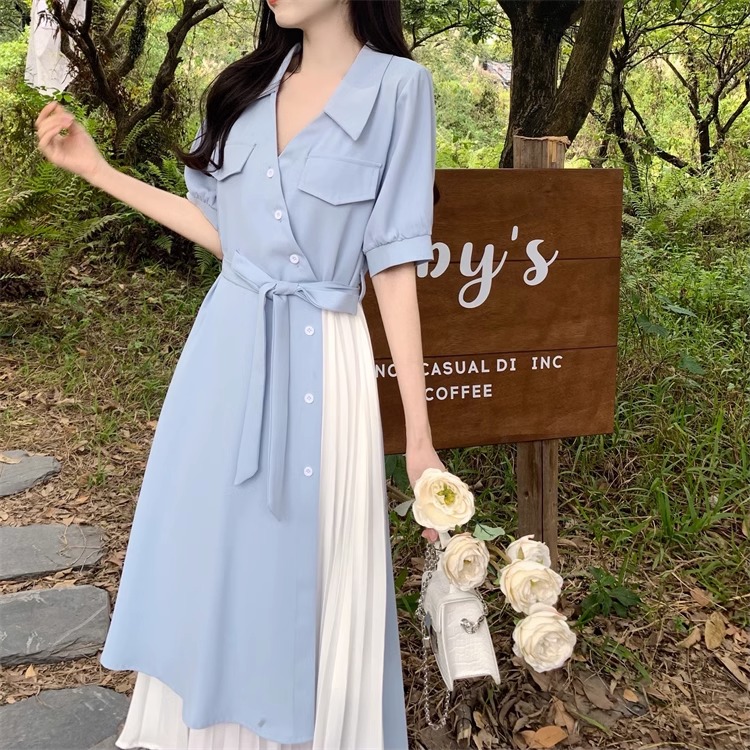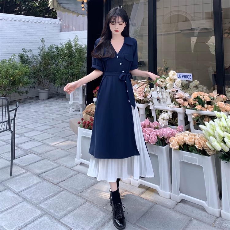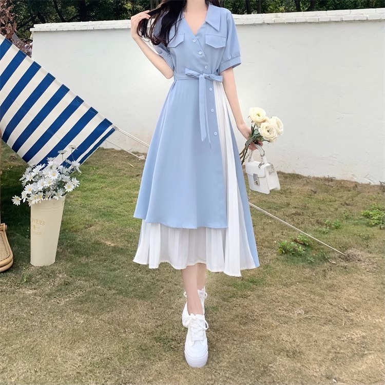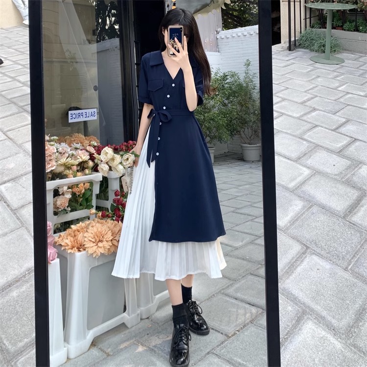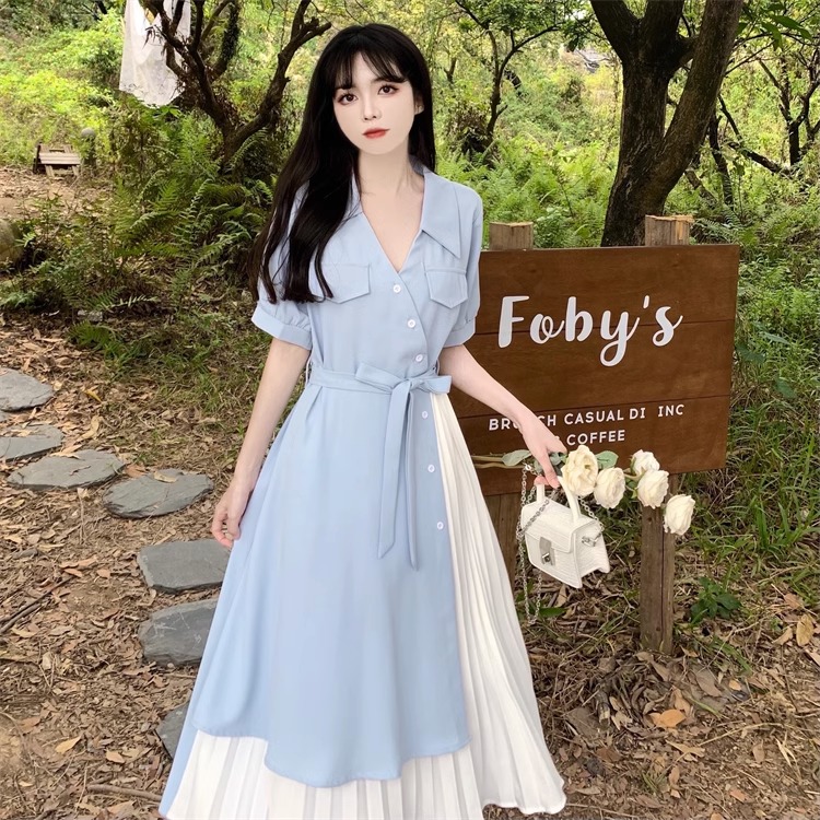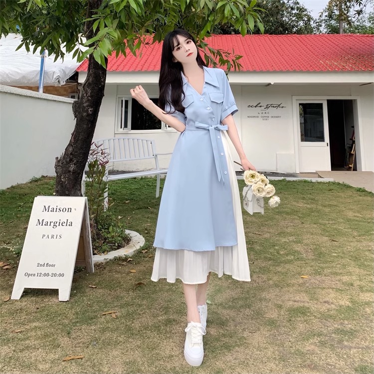 法式小衆設計感雪紡連衣裙女夏大碼胖MM不規則氣質赫本風a字長裙