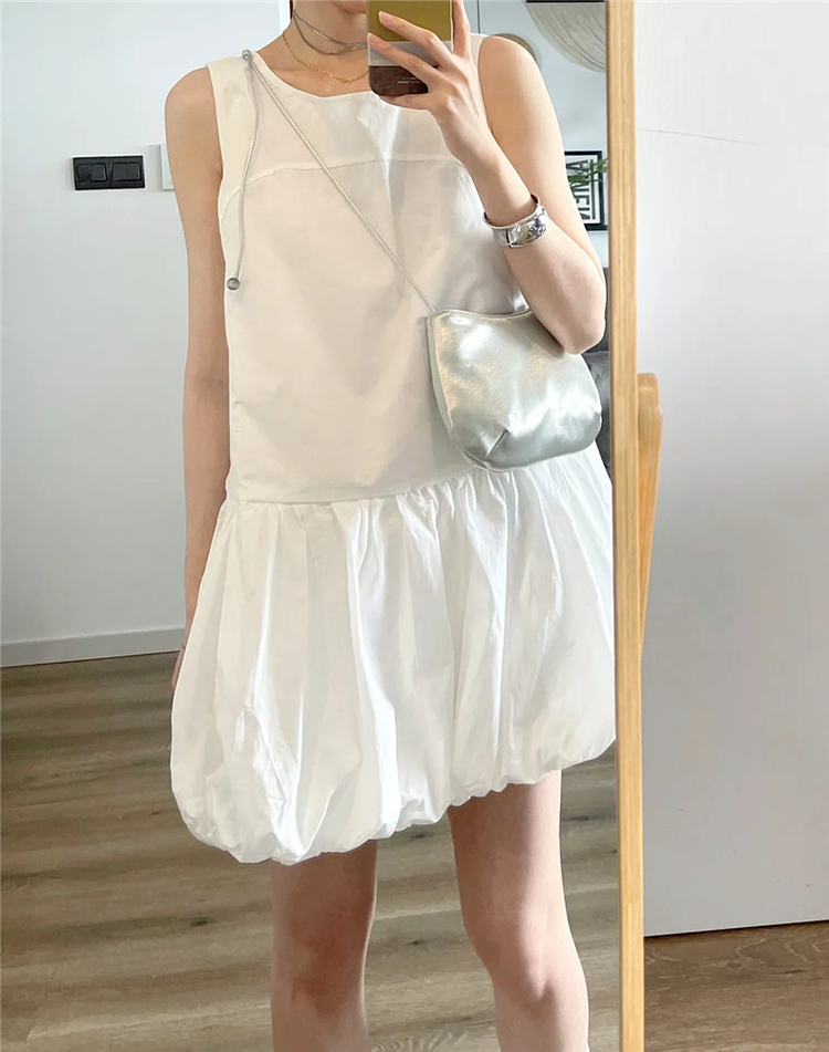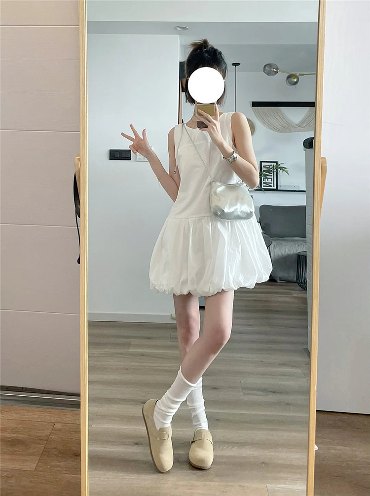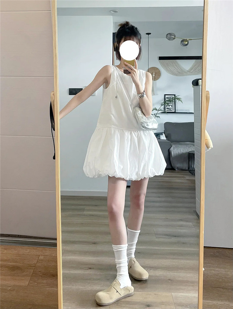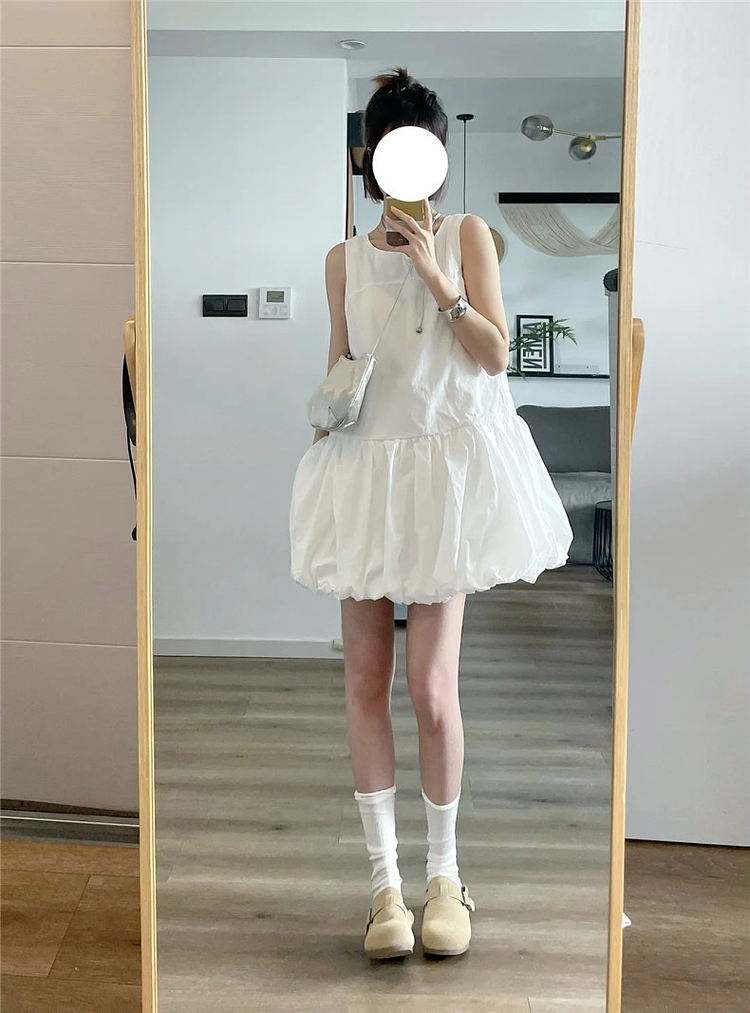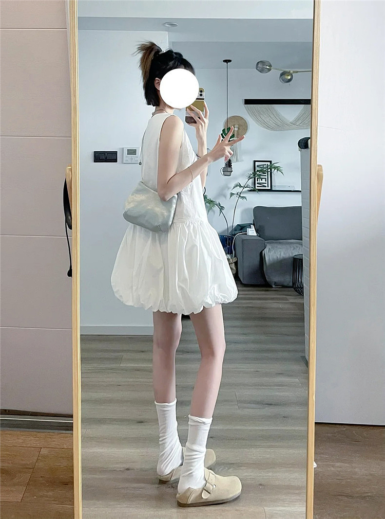 法式白色花苞連衣裙子女夏2025新款小個子背心吊帶小衆蓬蓬裙短裙