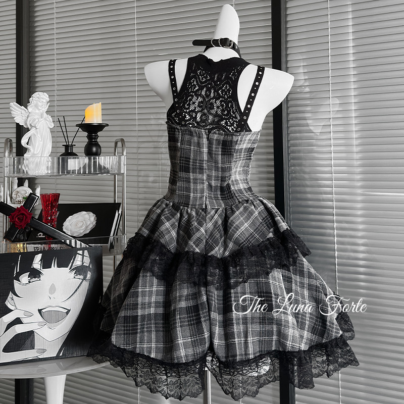 搖滾辣妹|亞文化暗黑蕾絲吊帶連衣裙哥特龐克風紅黑裙子辣妹穿搭
