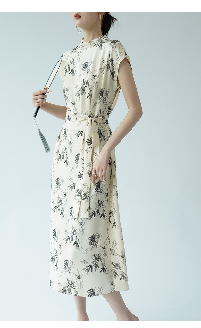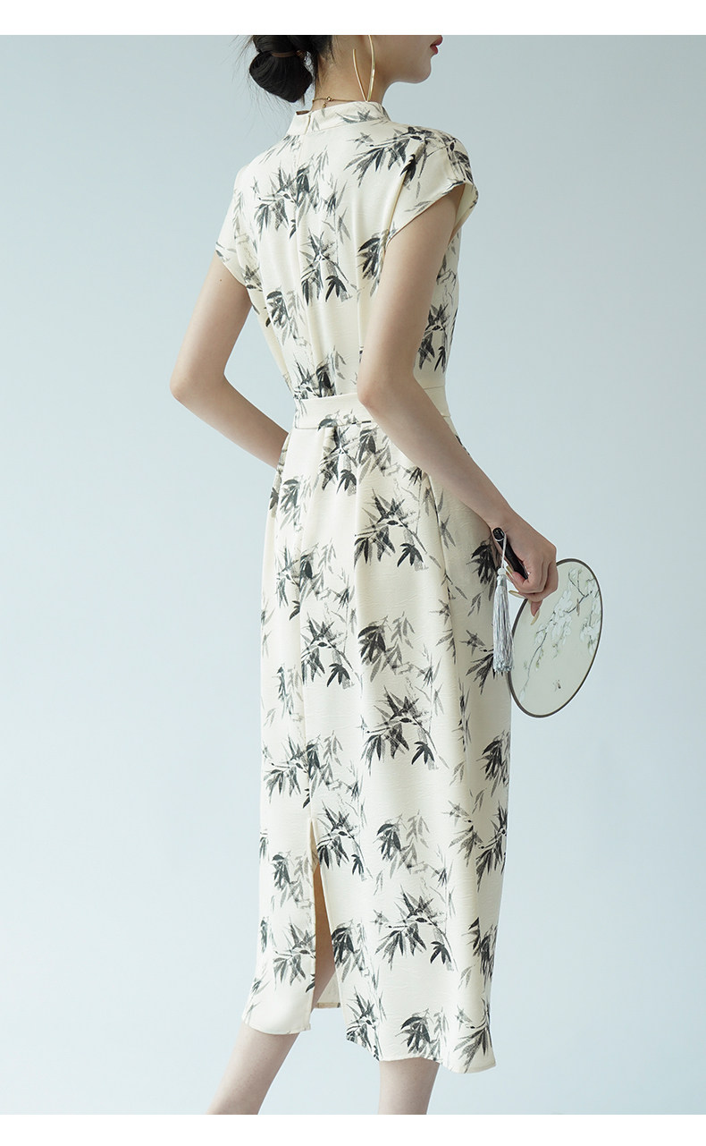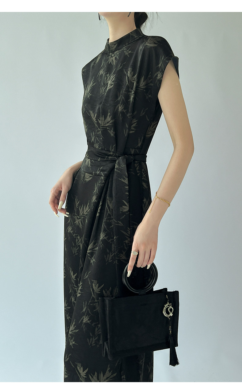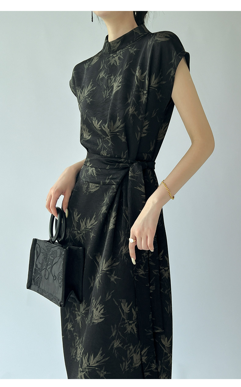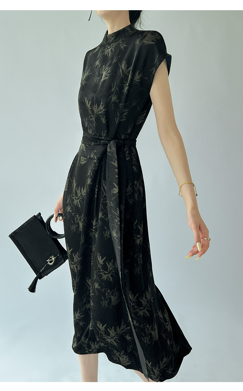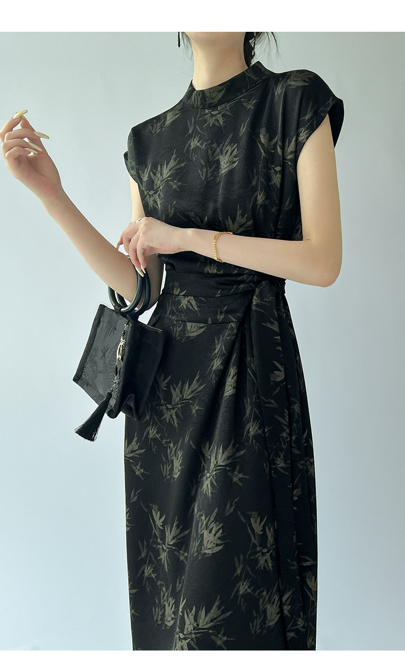 高級感印花改良旗袍連衣裙女夏季新款氣質顯瘦新中式醋酸緞面裙子