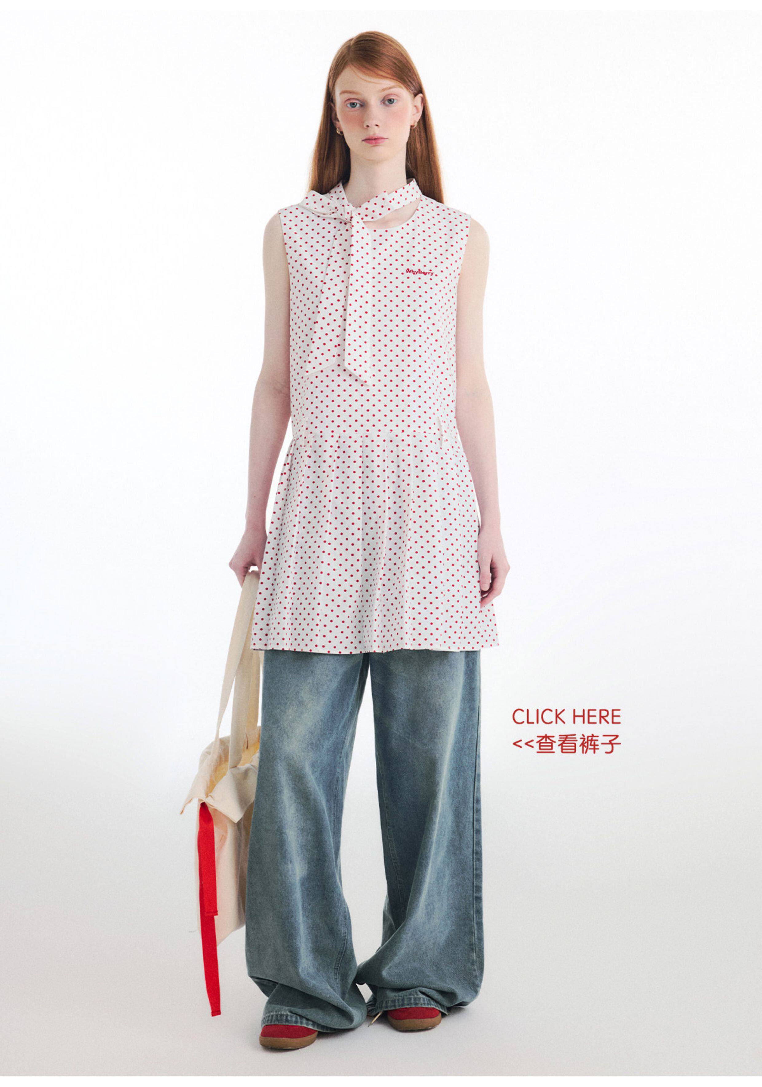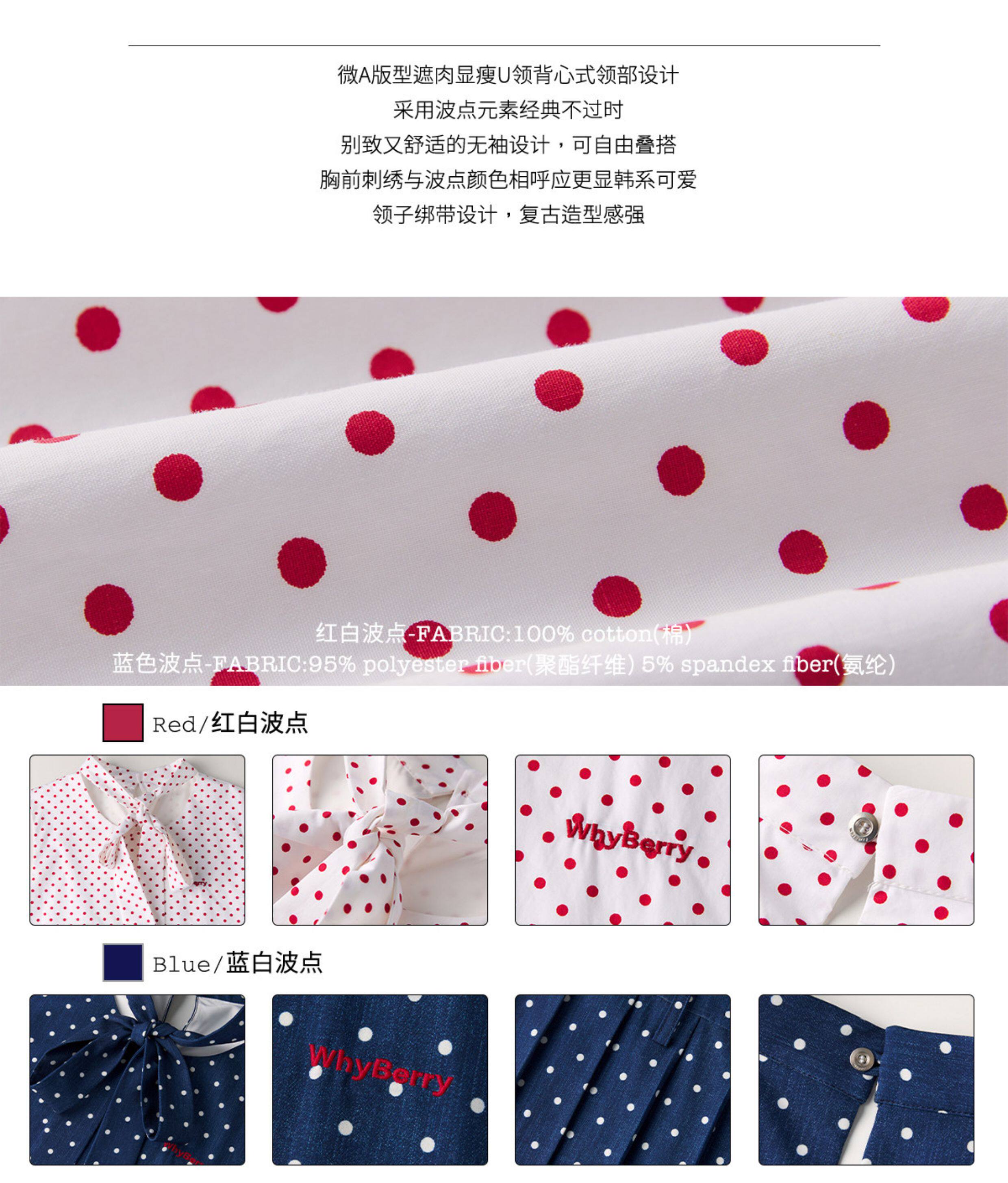 WhyBerry 24SS“波點派對”紅白波點復古連衣裙微A深藍色裙子夏日