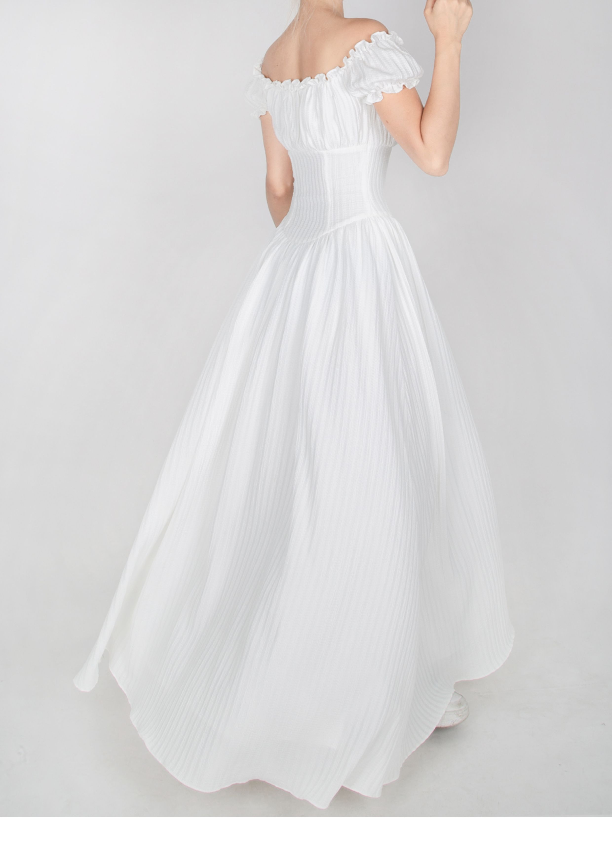 暴雜原創設計 菲萊神廟 女神白色連衣裙海邊埃及度假風一字領長裙