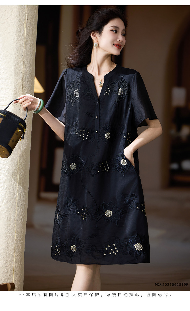 素木洋氣刺綉天絲雪紡連衣裙女大碼歐洲站女裝2026年夏季新款裙子