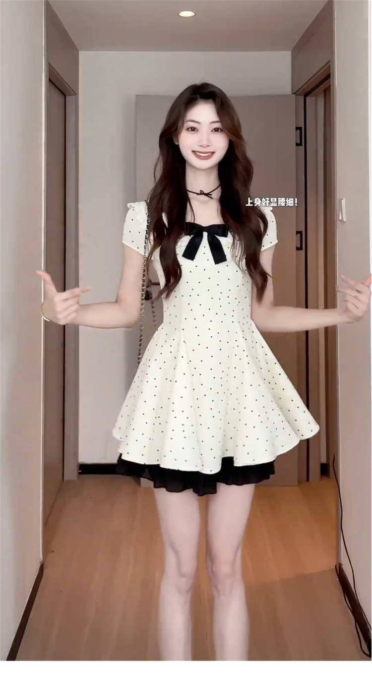 蝴蝶結波點連衣裙子女夏季2025新款夏天巨好看小衆不撞款蓬蓬短裙