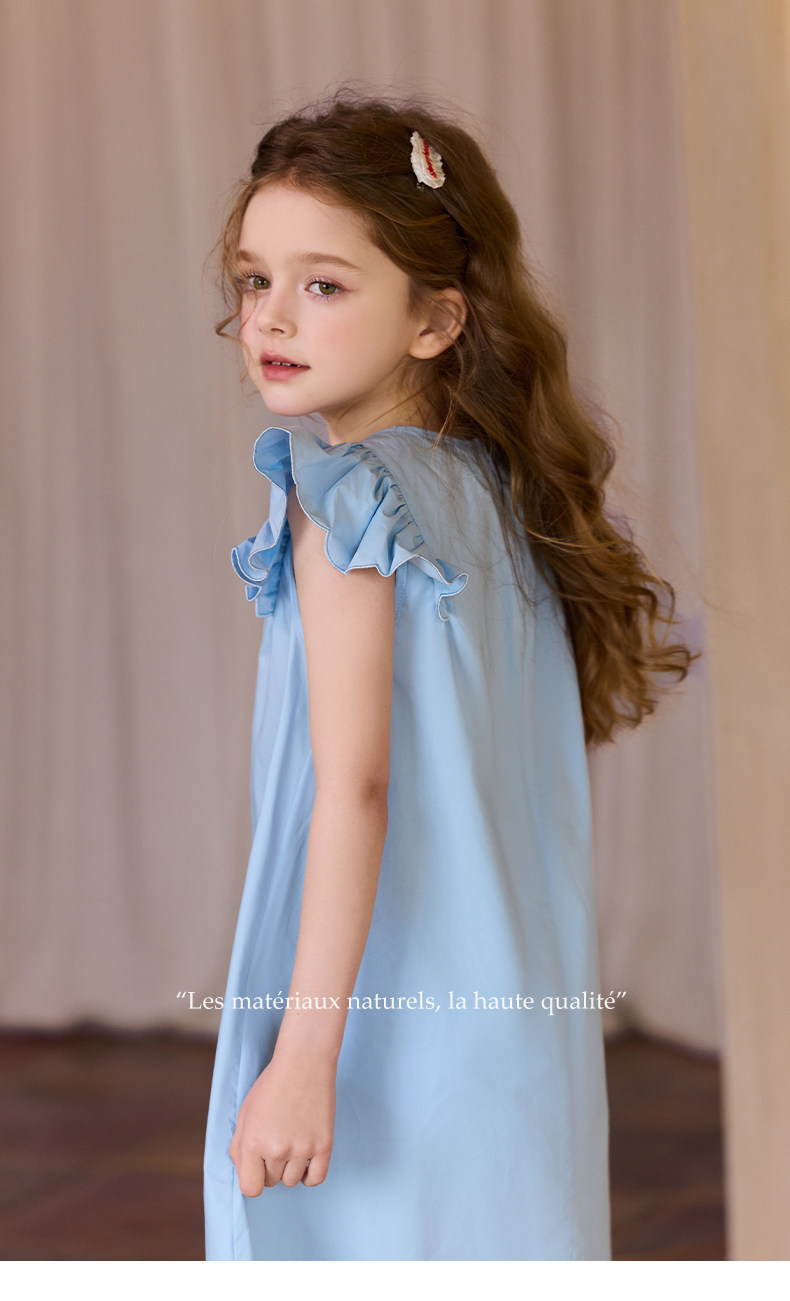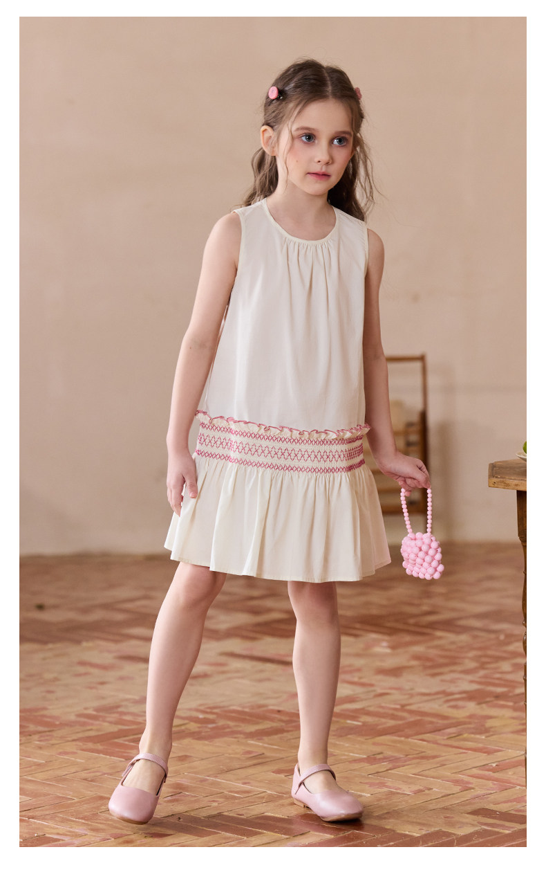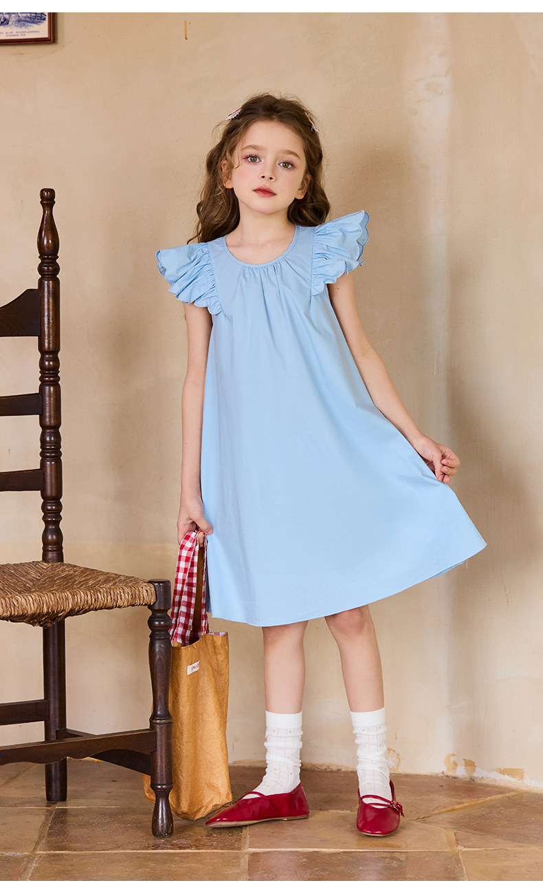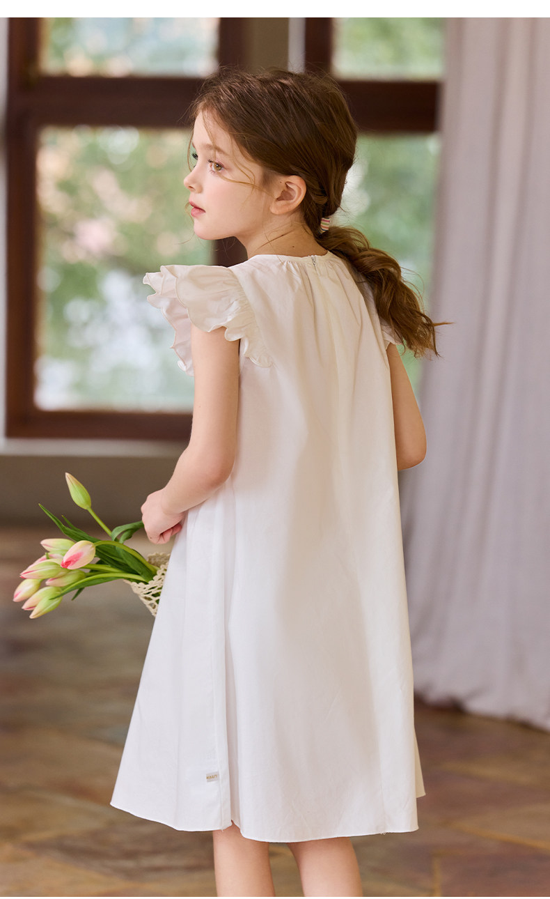Little Naive兒童連衣裙夏季新款刺綉飛袖純棉裙子女童甜美公主裙