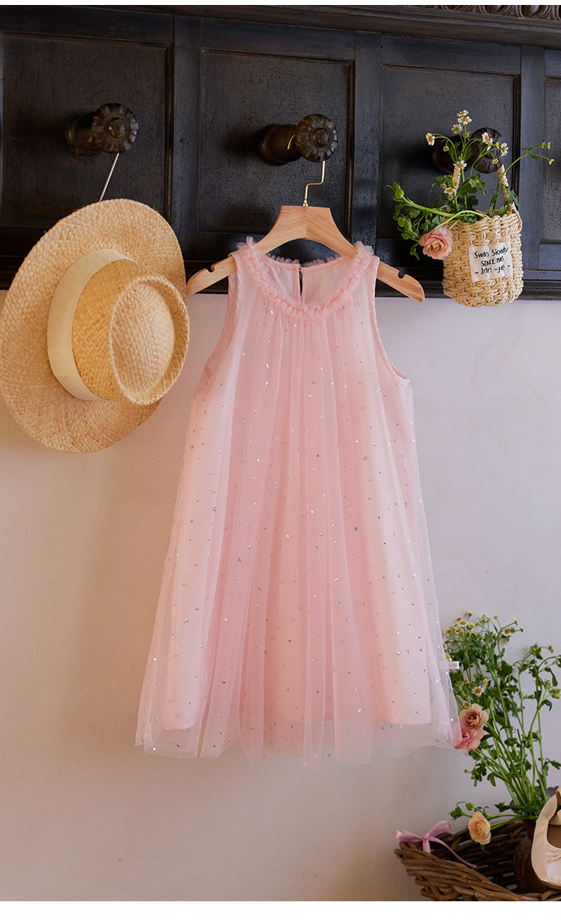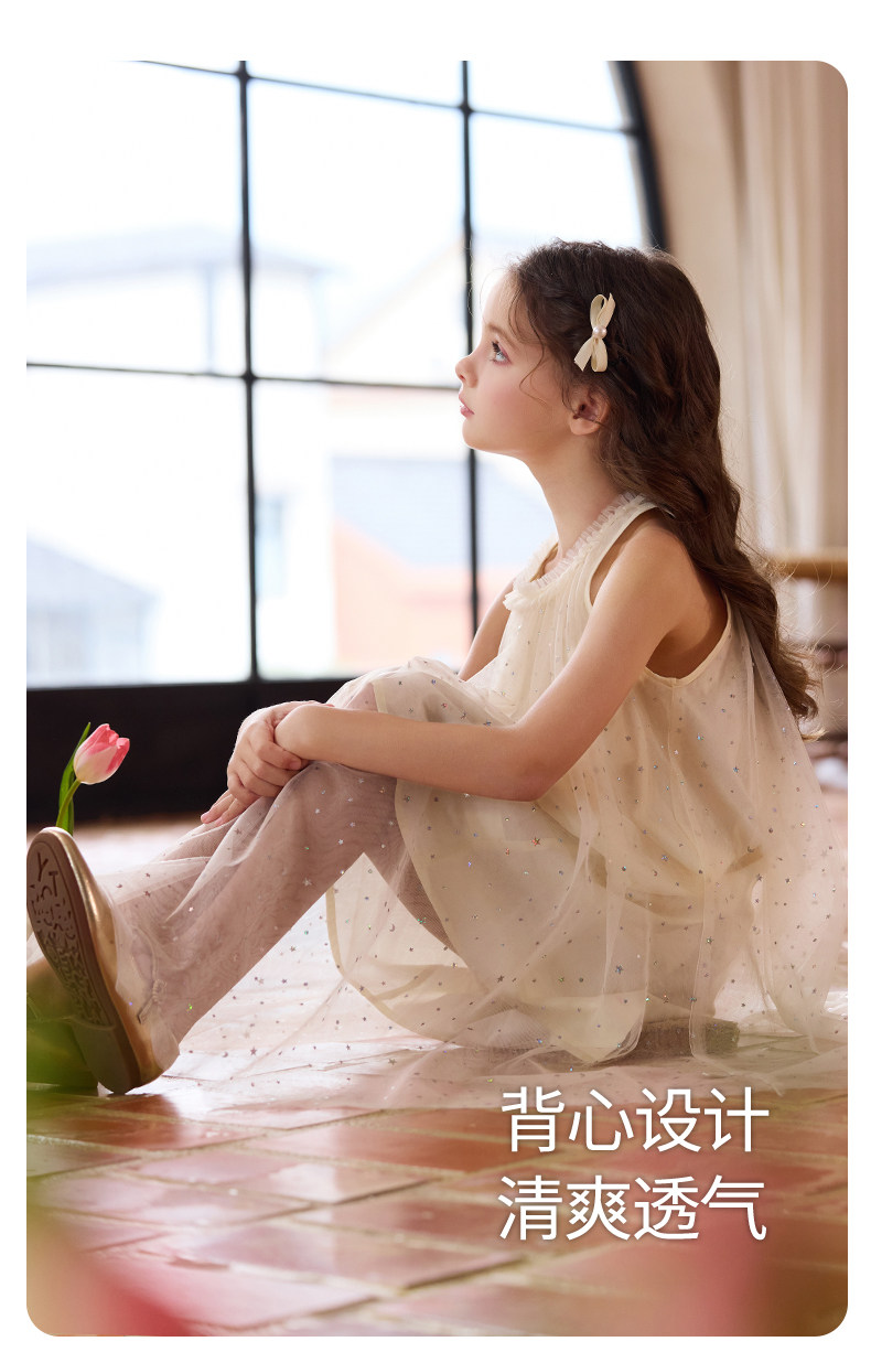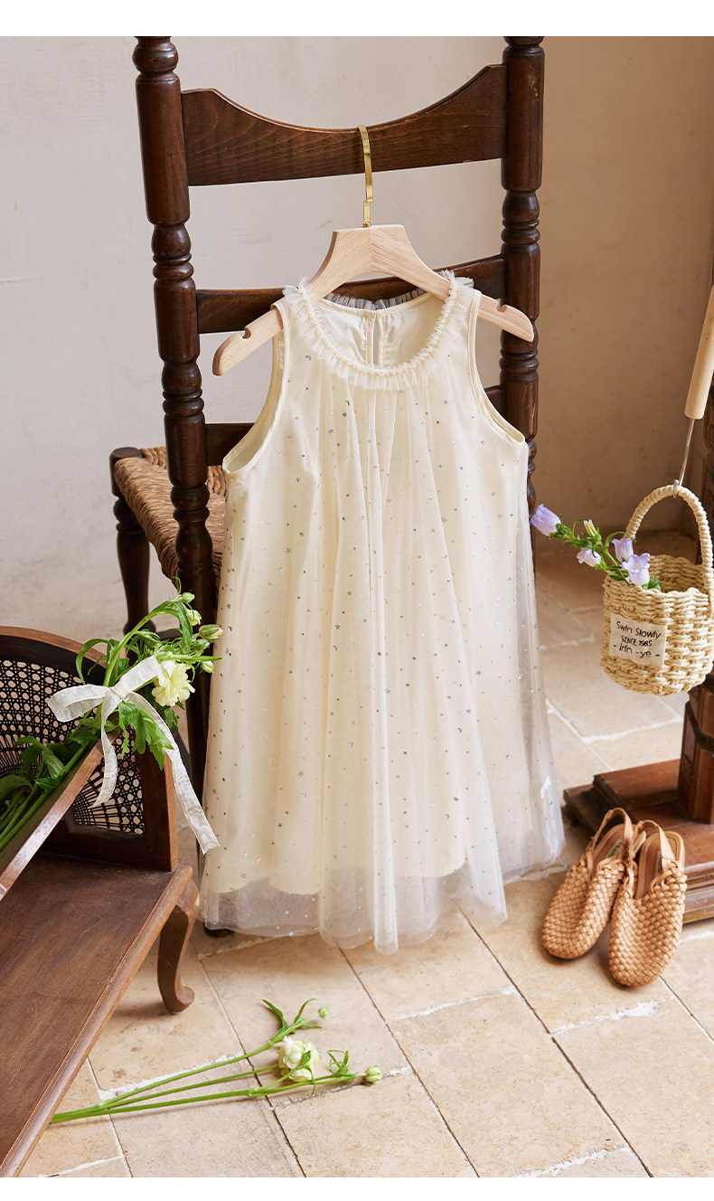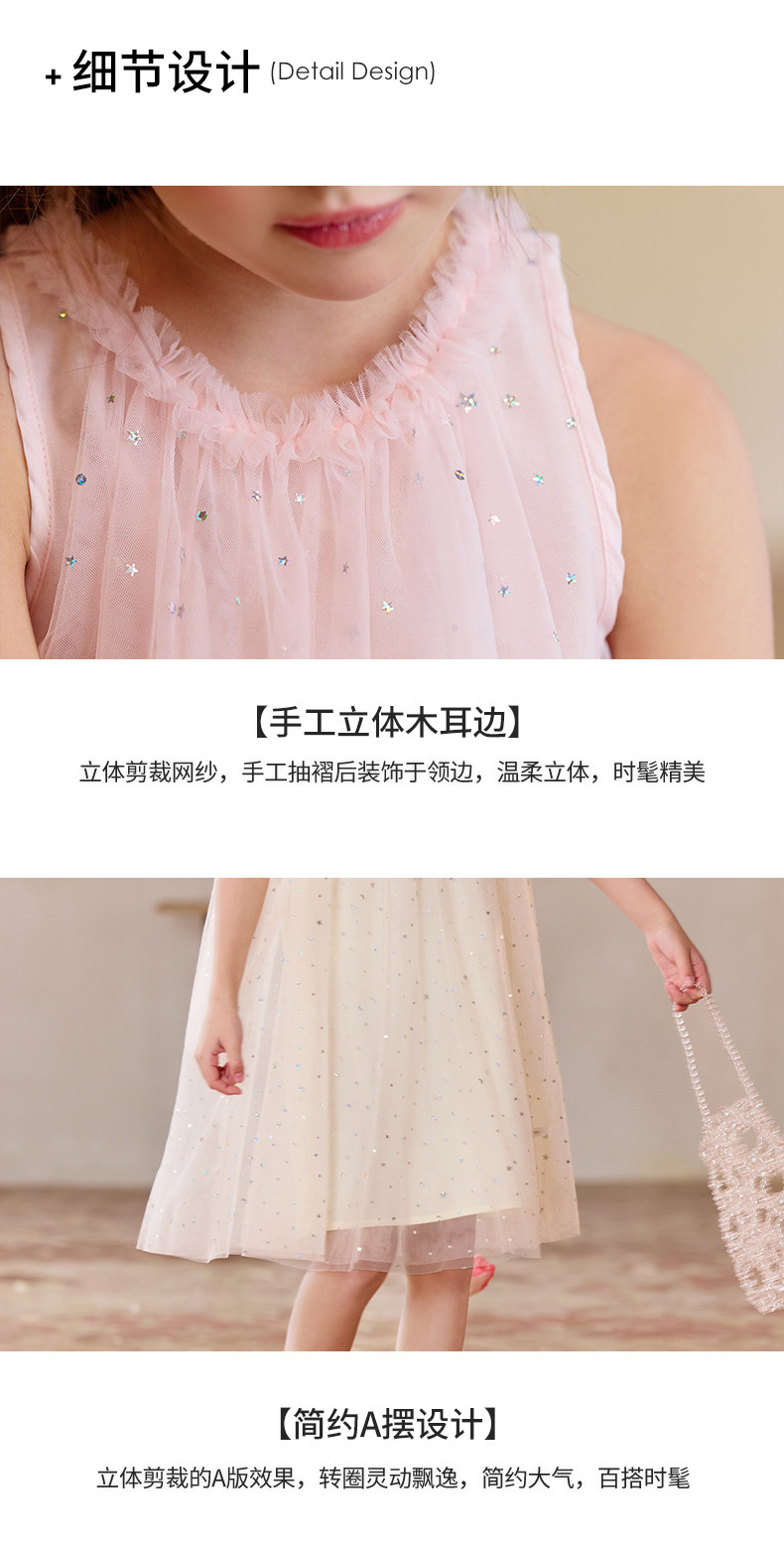 Little Naive兒童連衣裙夏季新款木耳邊蓬蓬背心裙女童公主網紗裙