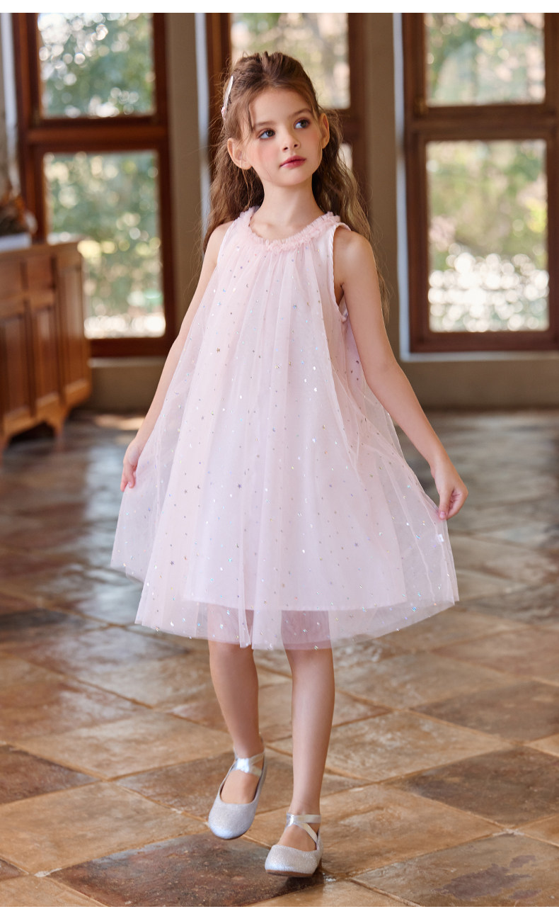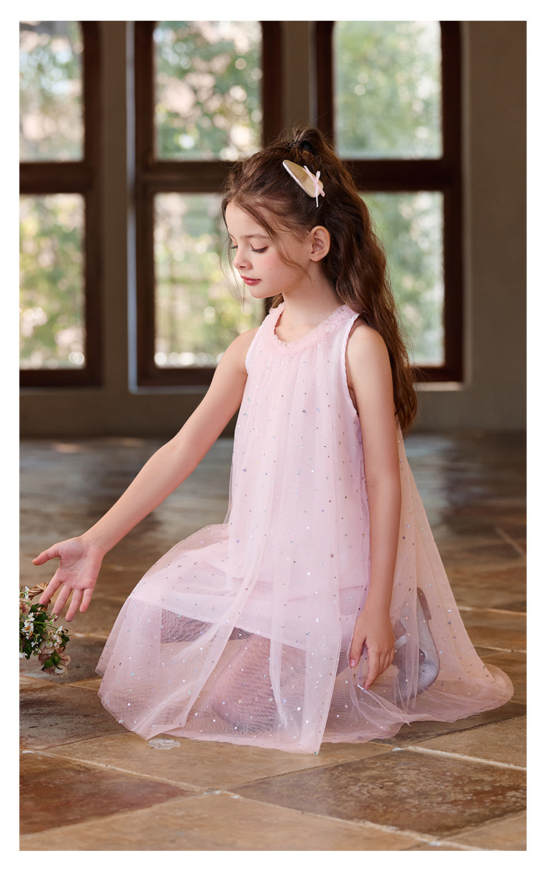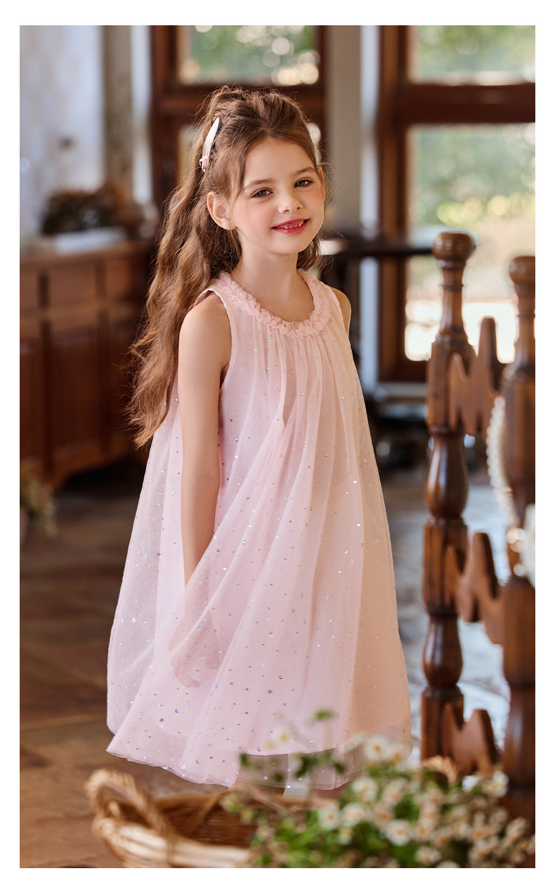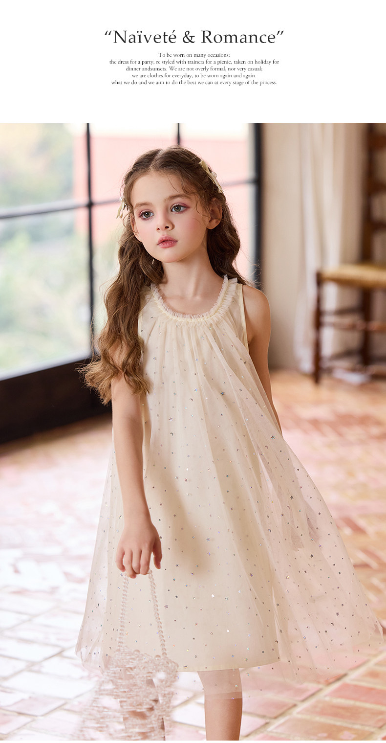 Little Naive兒童連衣裙夏季新款木耳邊蓬蓬背心裙女童公主網紗裙