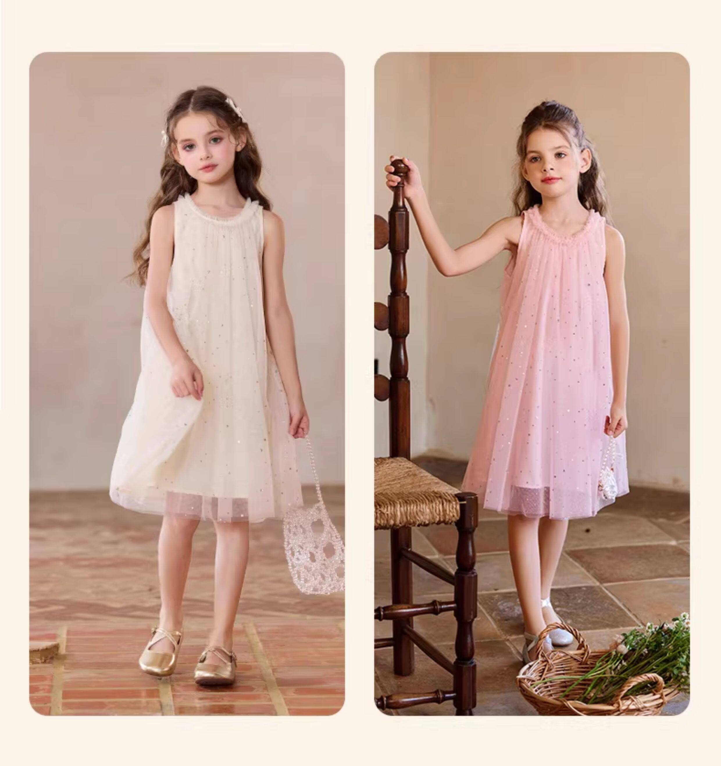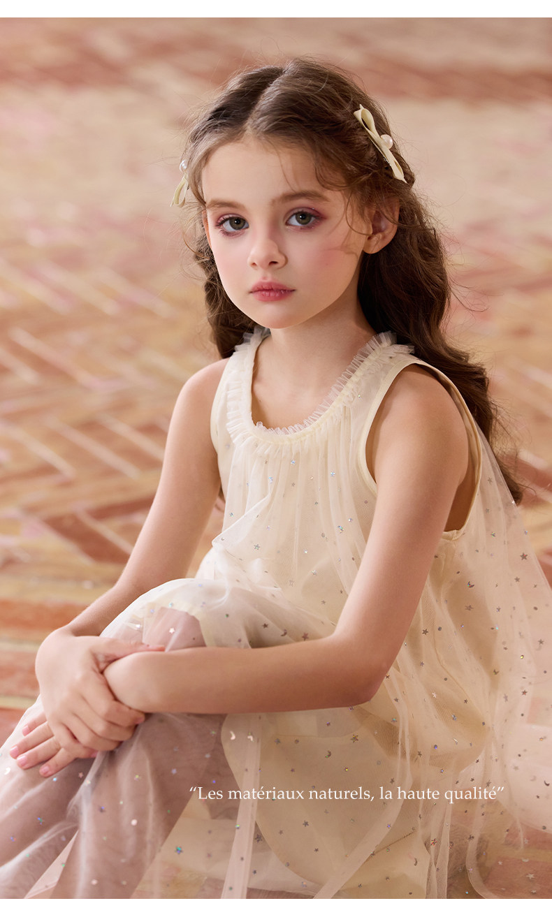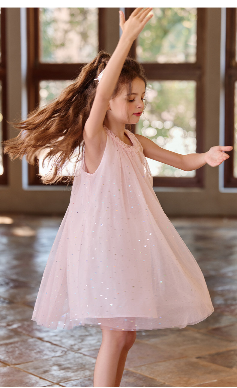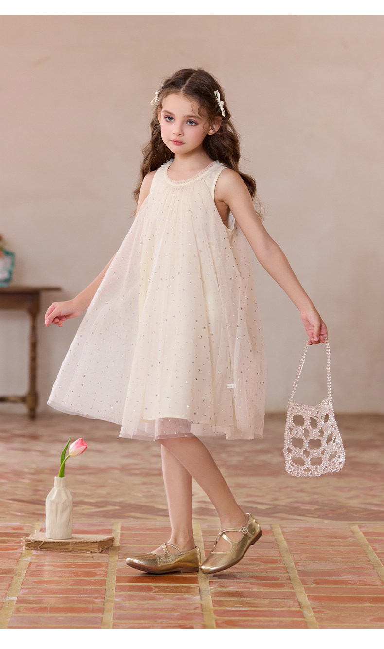 Little Naive兒童連衣裙夏季新款木耳邊蓬蓬背心裙女童公主網紗裙