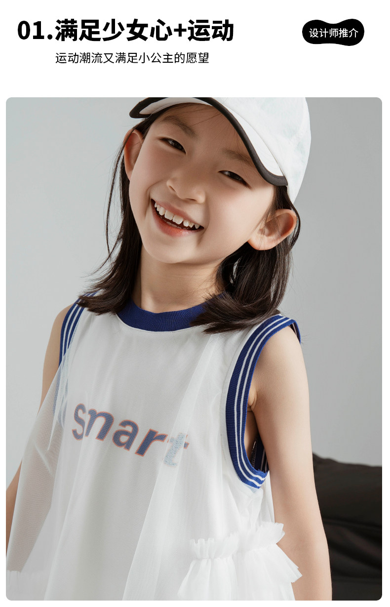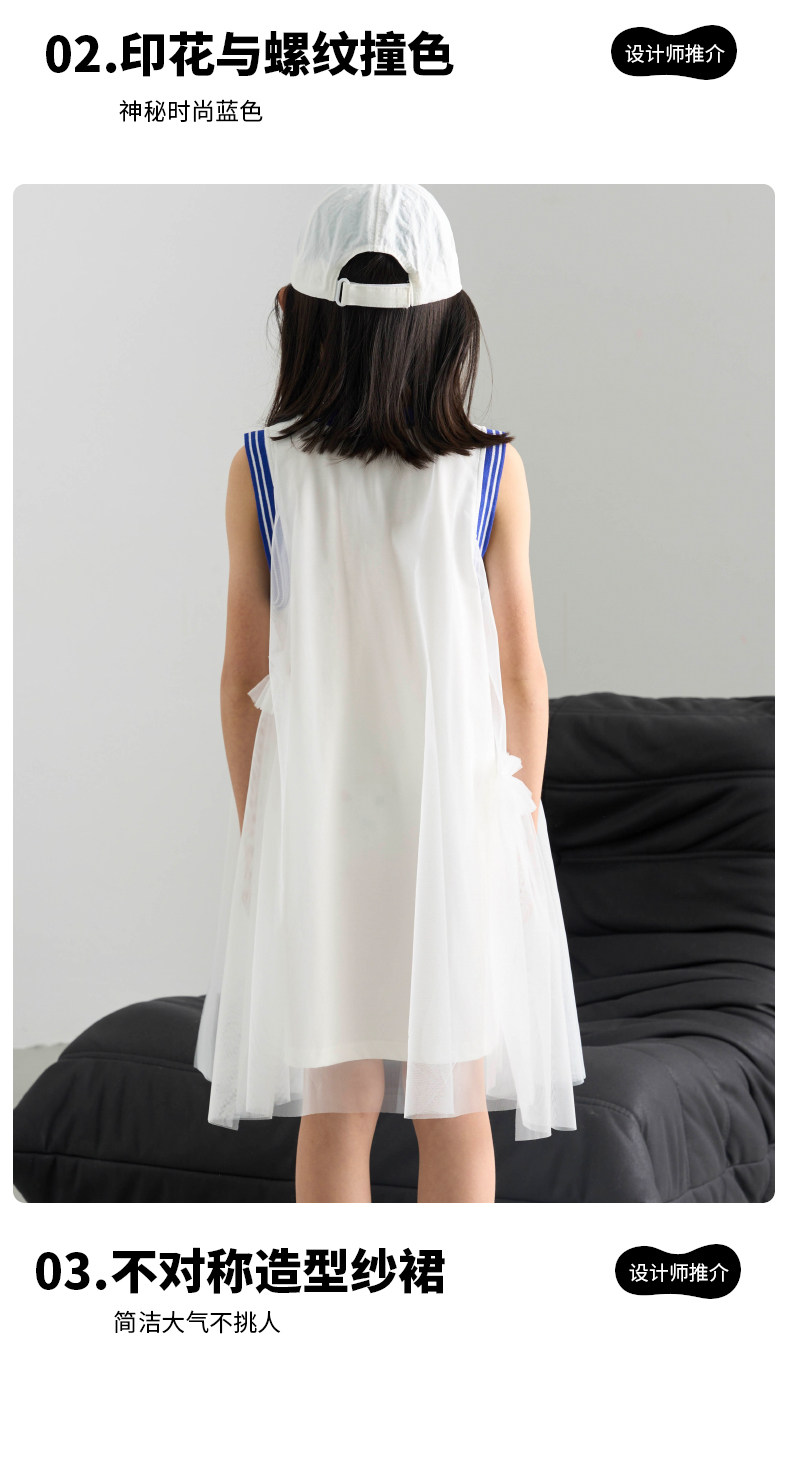 大童女童網紗連衣裙簡約夏裝兒童無袖裙子小女孩紗裙童裝背心裙新